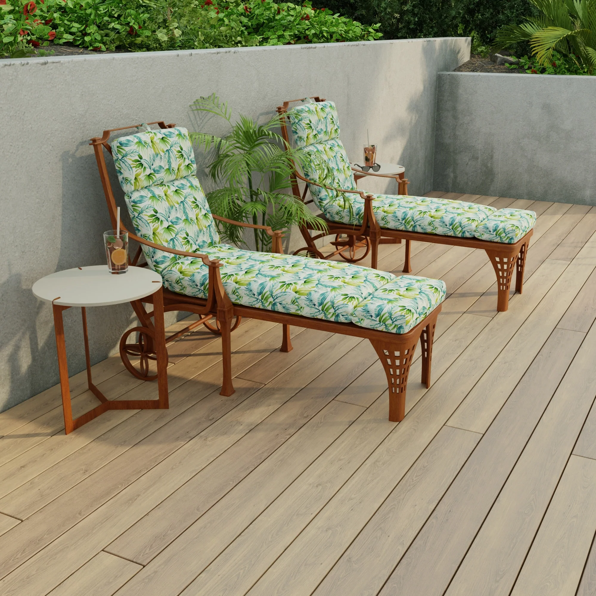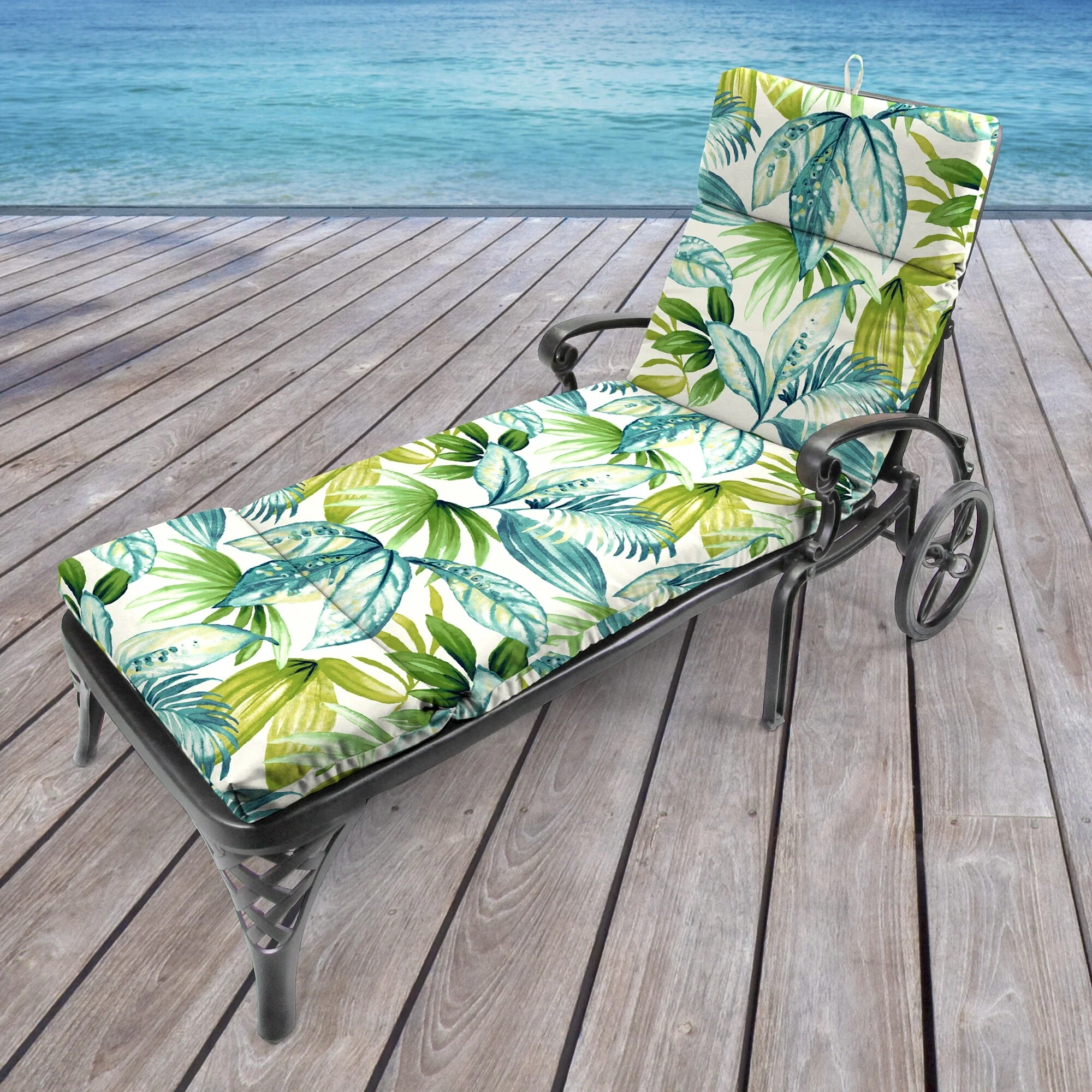 72" x 22" Turquoise Leaves Outdoor Chaise Lounge Cushion with Ties and Loop - 72'' L x 22'' W x 3.5'' H
