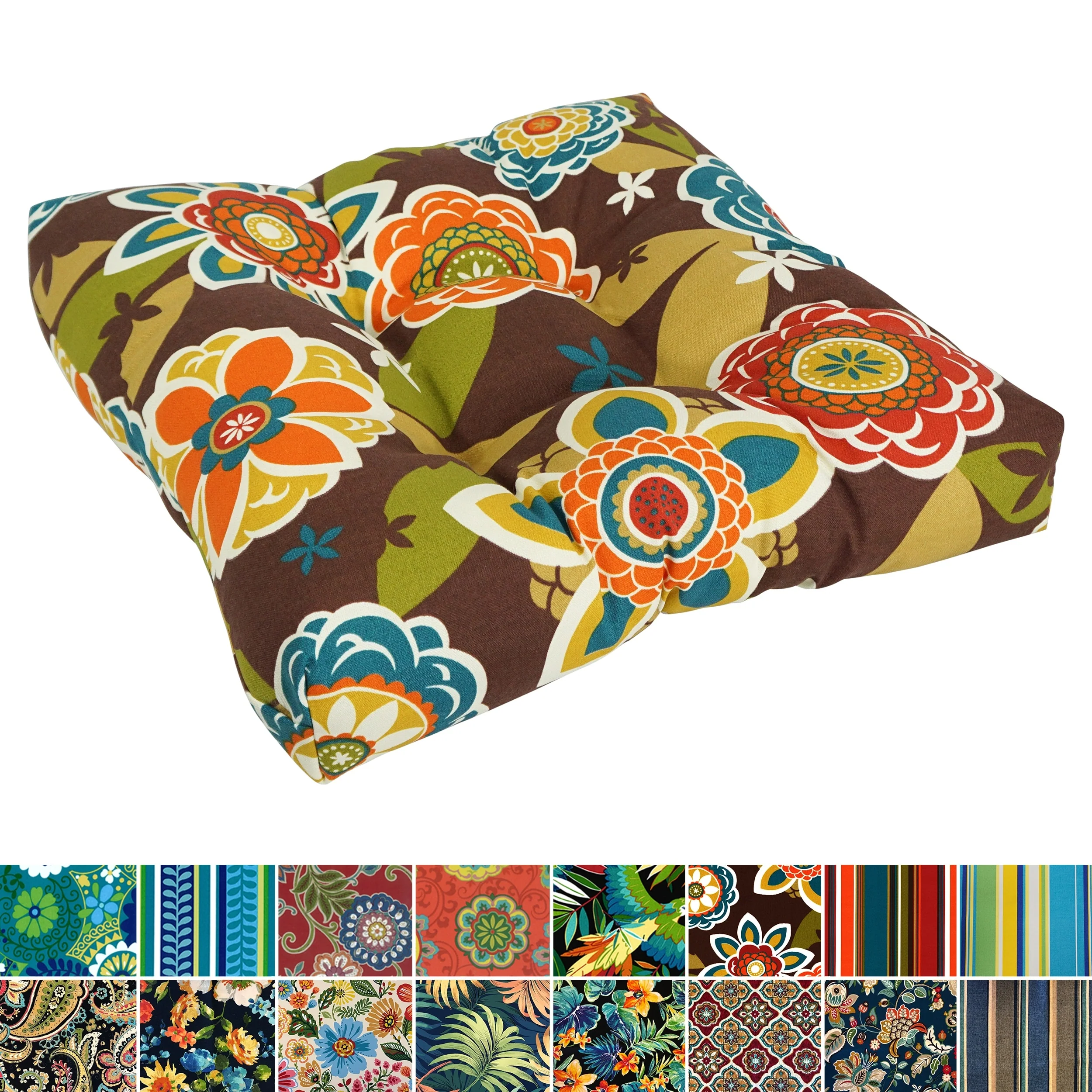 19-inch Square Tufted Indoor/Outdoor Chair Cushion - 19" x 19"