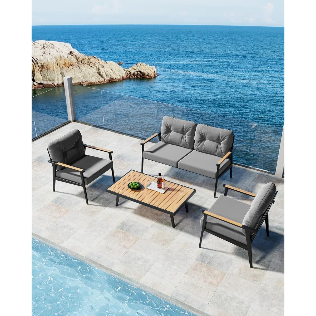 Aoodor 4Pcs Outdoor High Back Dining Chair Cushion Set 44''x21''x3.2''