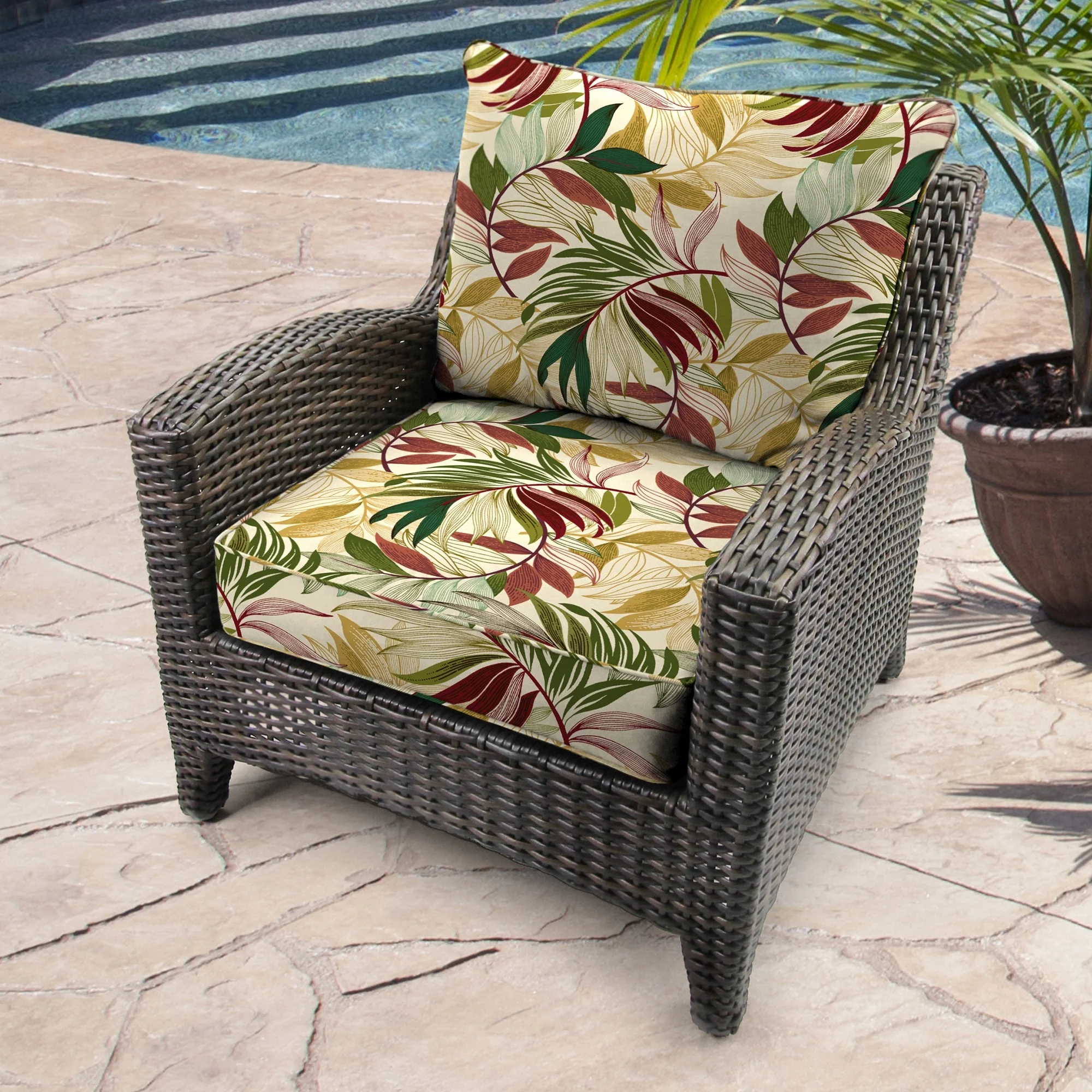 24" x 47" Beige Leaves Outdoor Deep Seat Cushion Set with Welt - 46.5'' L x 24'' W x 6'' H