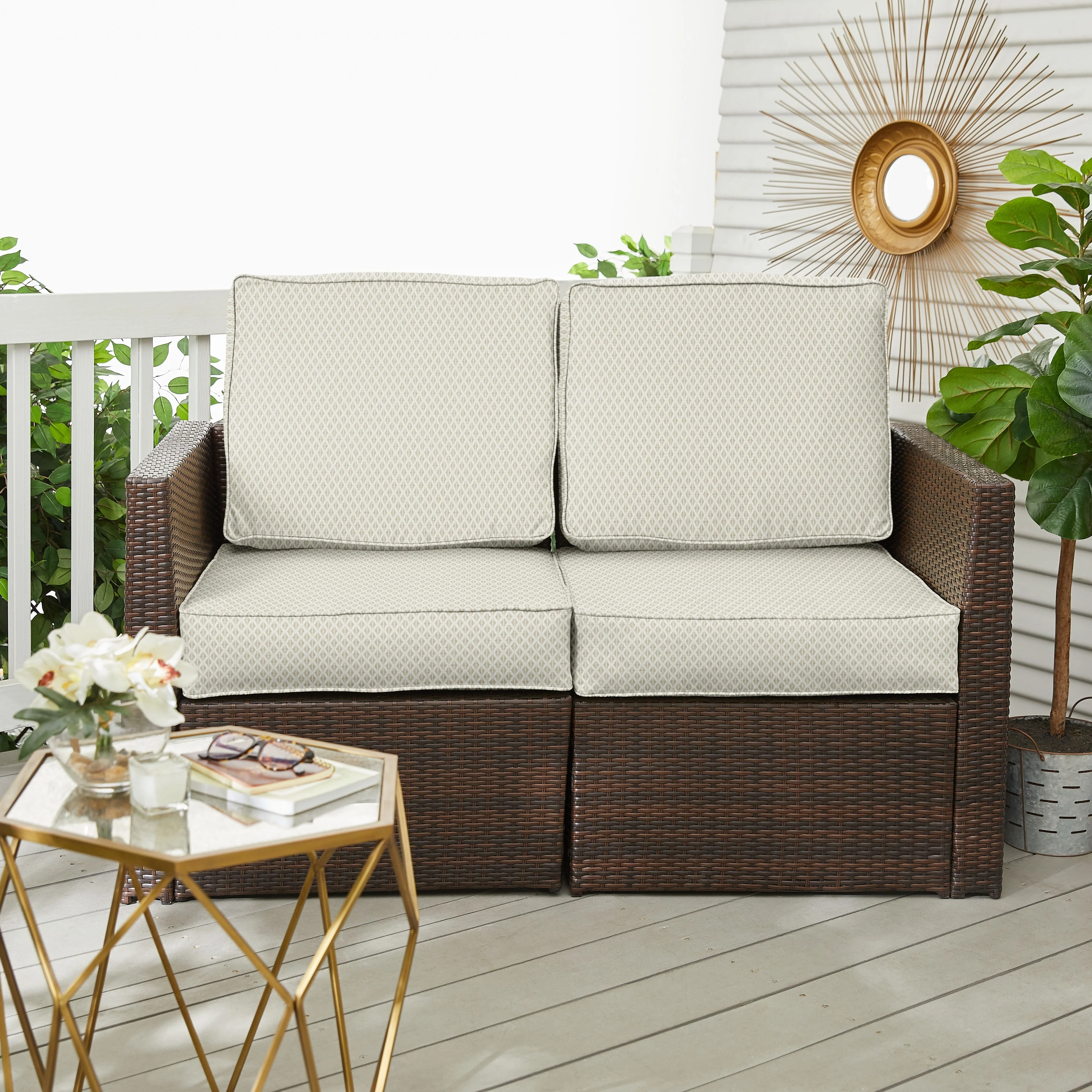 Pillow Perfect Outdoor Brown/ Green Tropical Wicker Loveseat Cushion