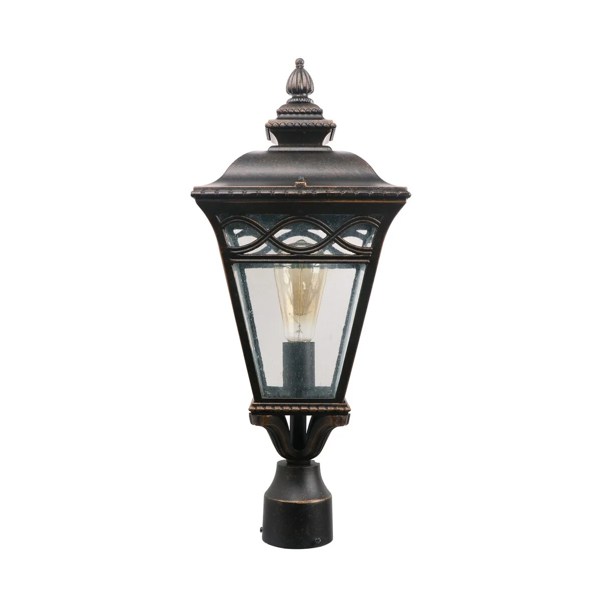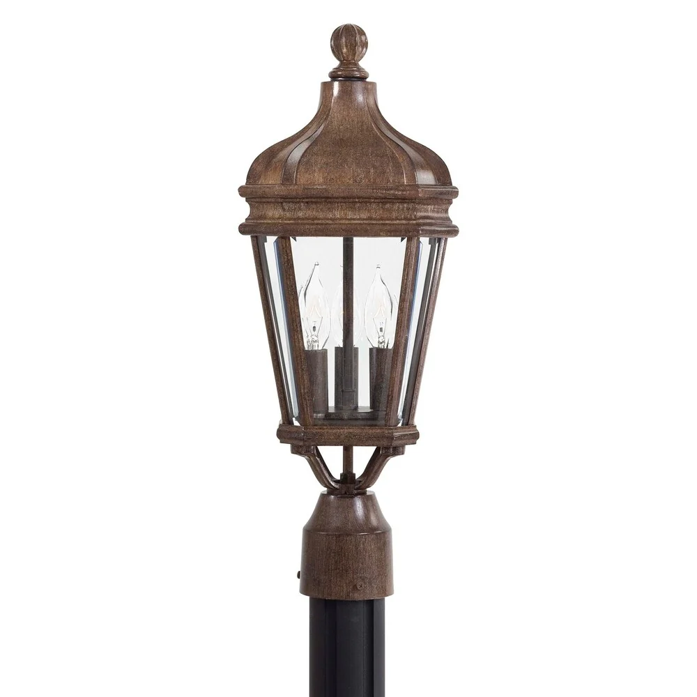Lavery Harrison Vintage Rust & Beveled Glass 3 Light Post Mount