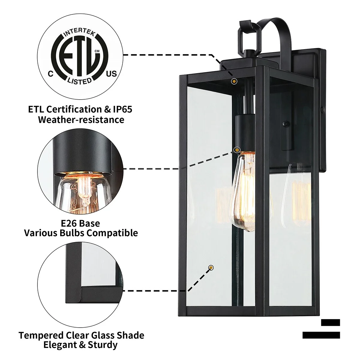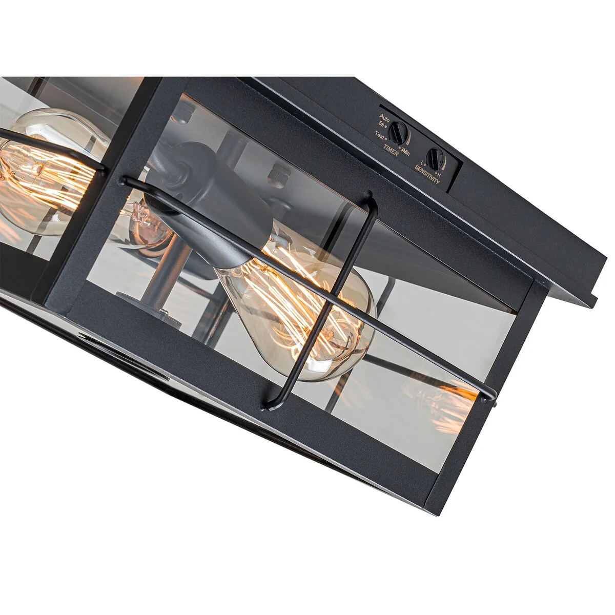 Glenn Black Motion Sensor Dusk to Dawn Outdoor Wall Light Coastal Clear Glass - 8.75-in. W x 13.25-in. H x 10-in. D