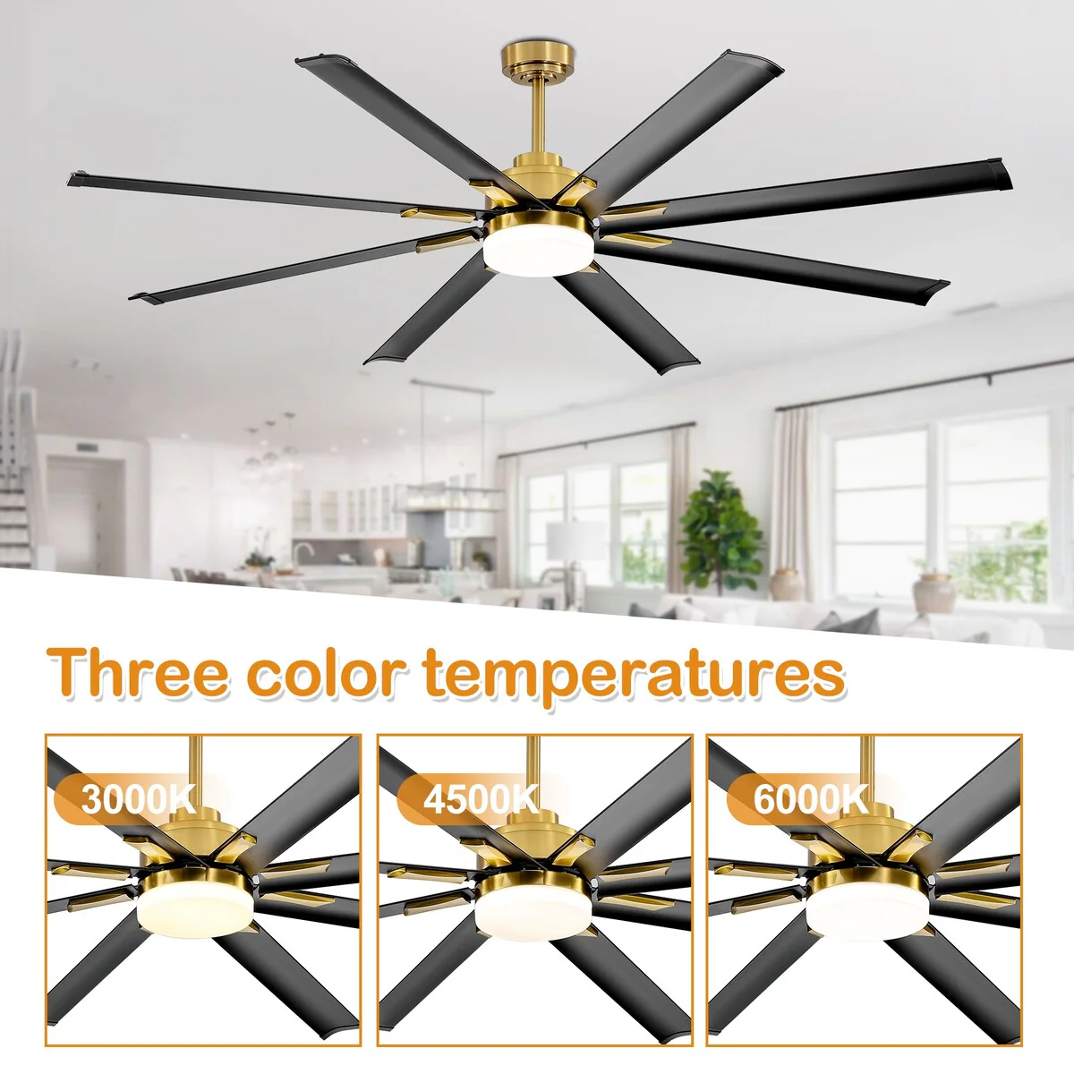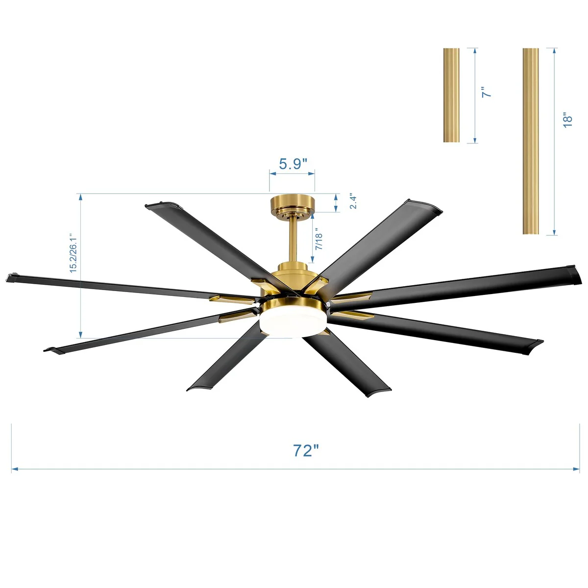 72 in. Integrated LED Aluminum-Blades Indoor Gold Ceiling Fan with Light and Remote Control Included
