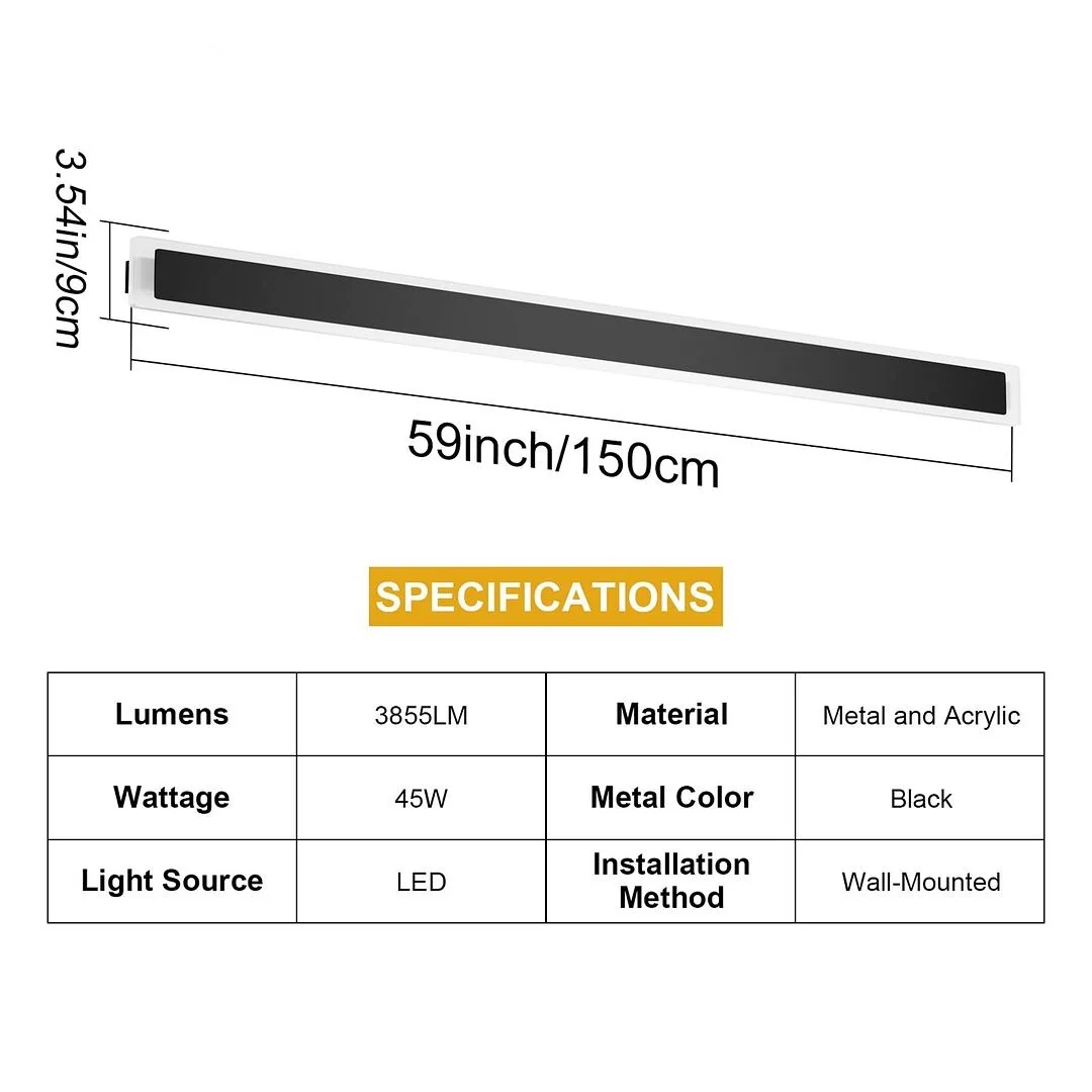 59" Outdoor Long LED Wall Light Fixture - Black