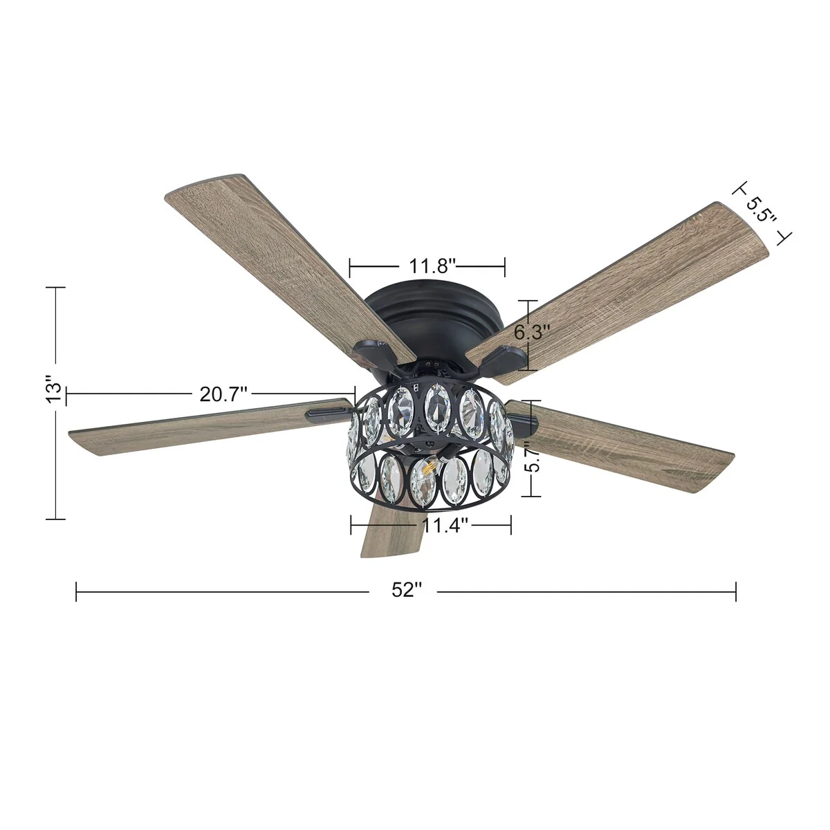52-in Indoor Black Ceiling Fan with Remote and Light(5-blade)
