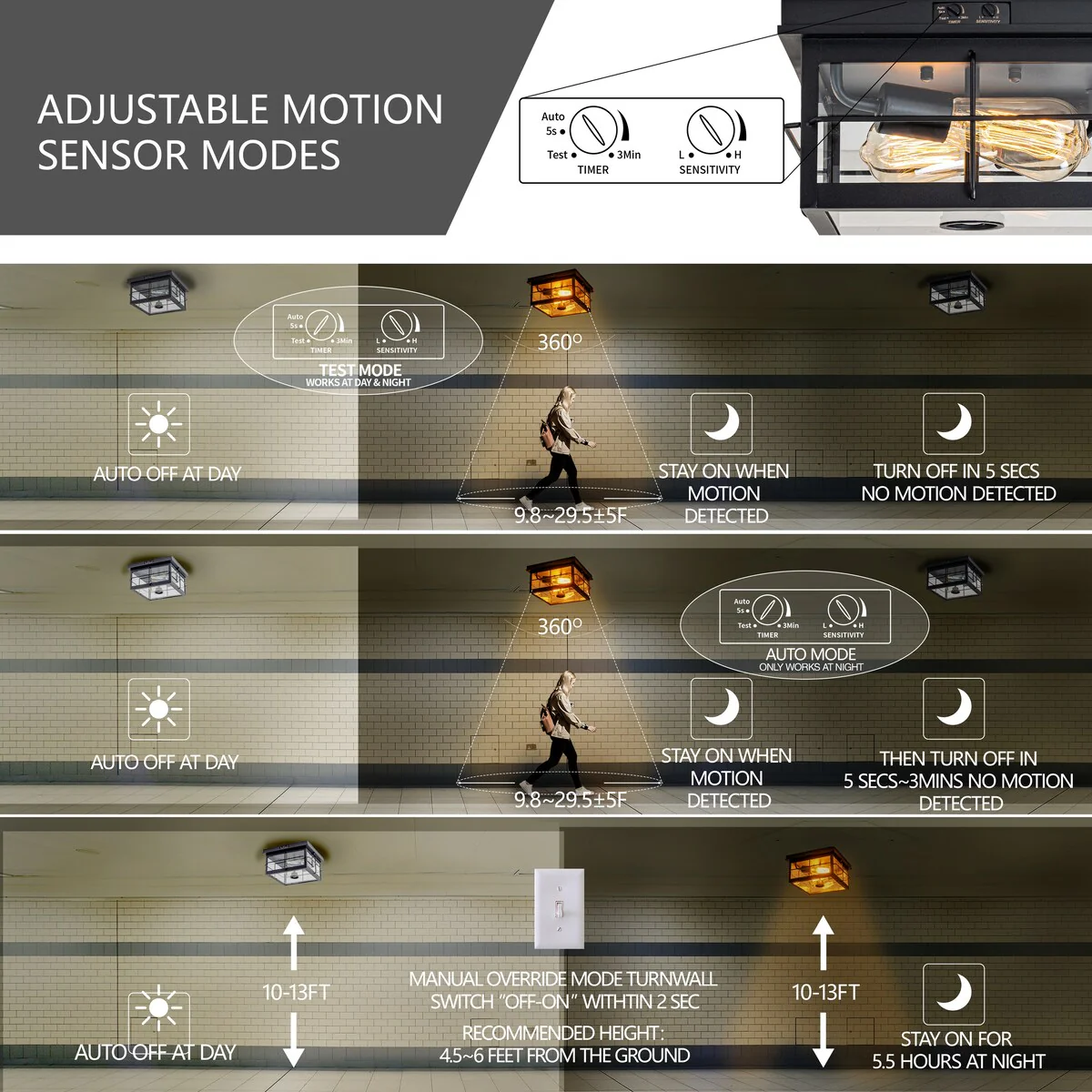 Flush Mount Outdoor Ceiling Light with Motion Sensor - 1 pack