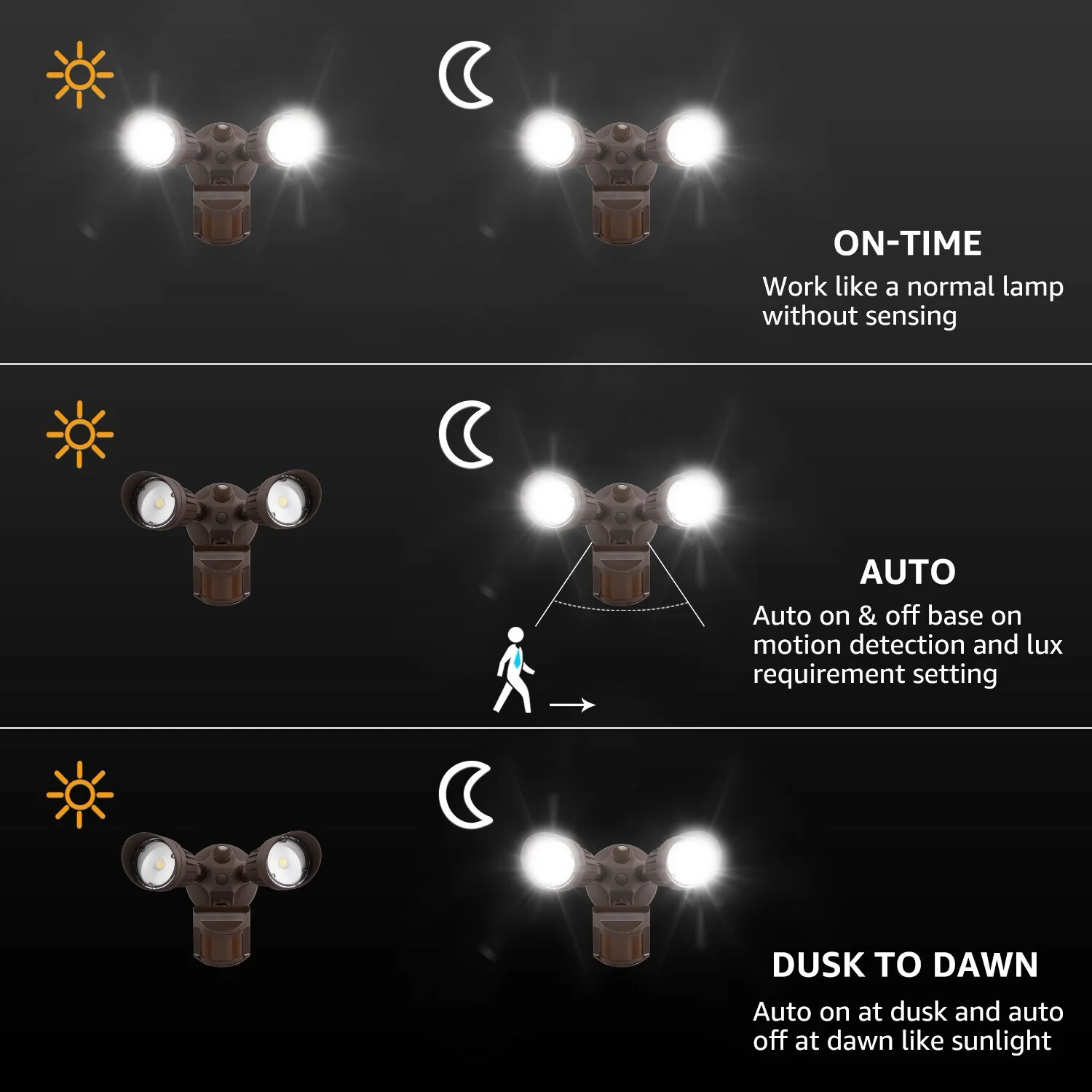 2-Head COB LED Security Light, Motion Sensor, Dusk to Dawn