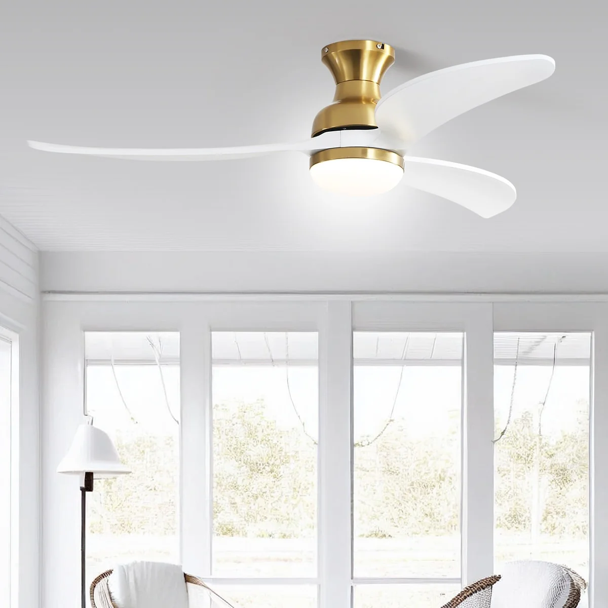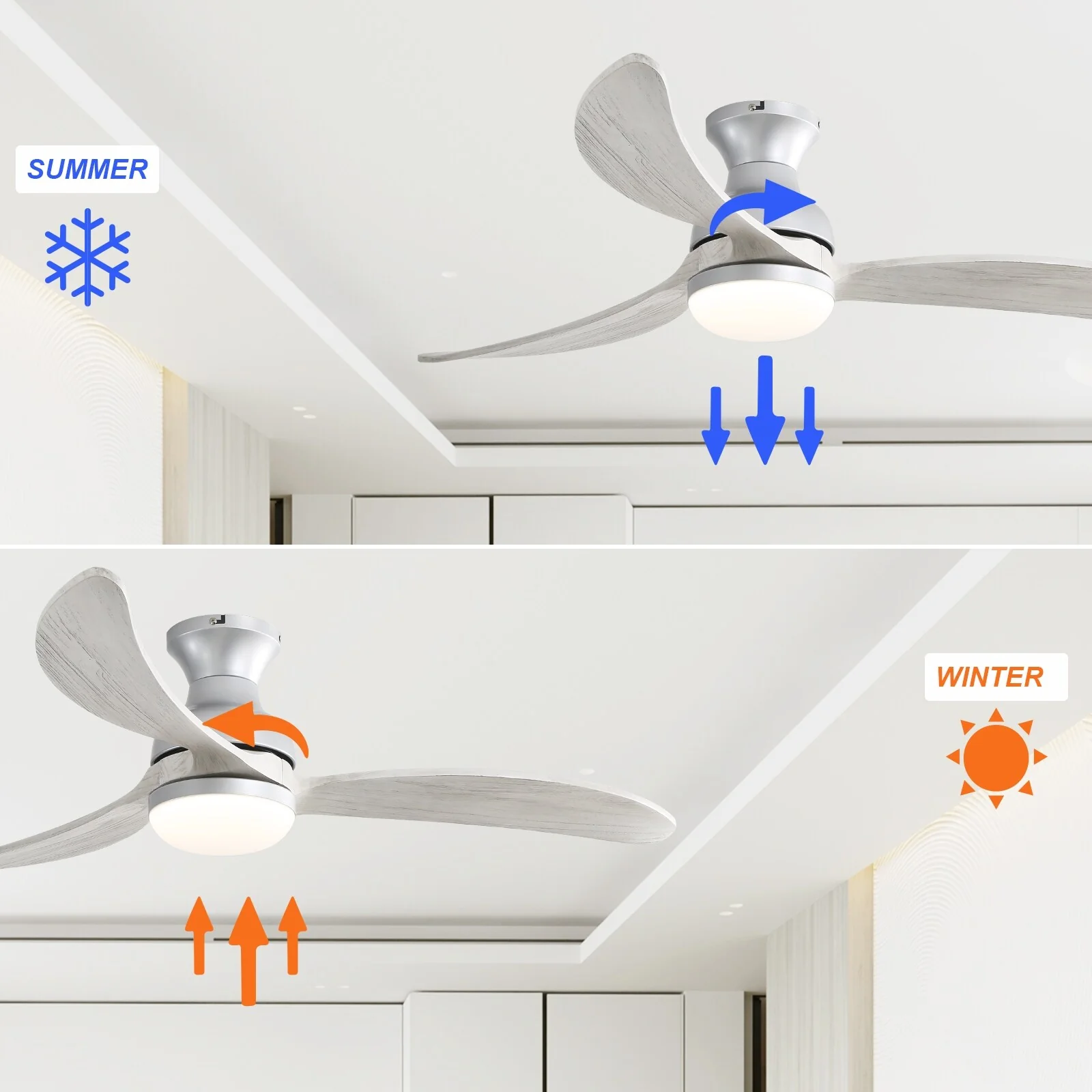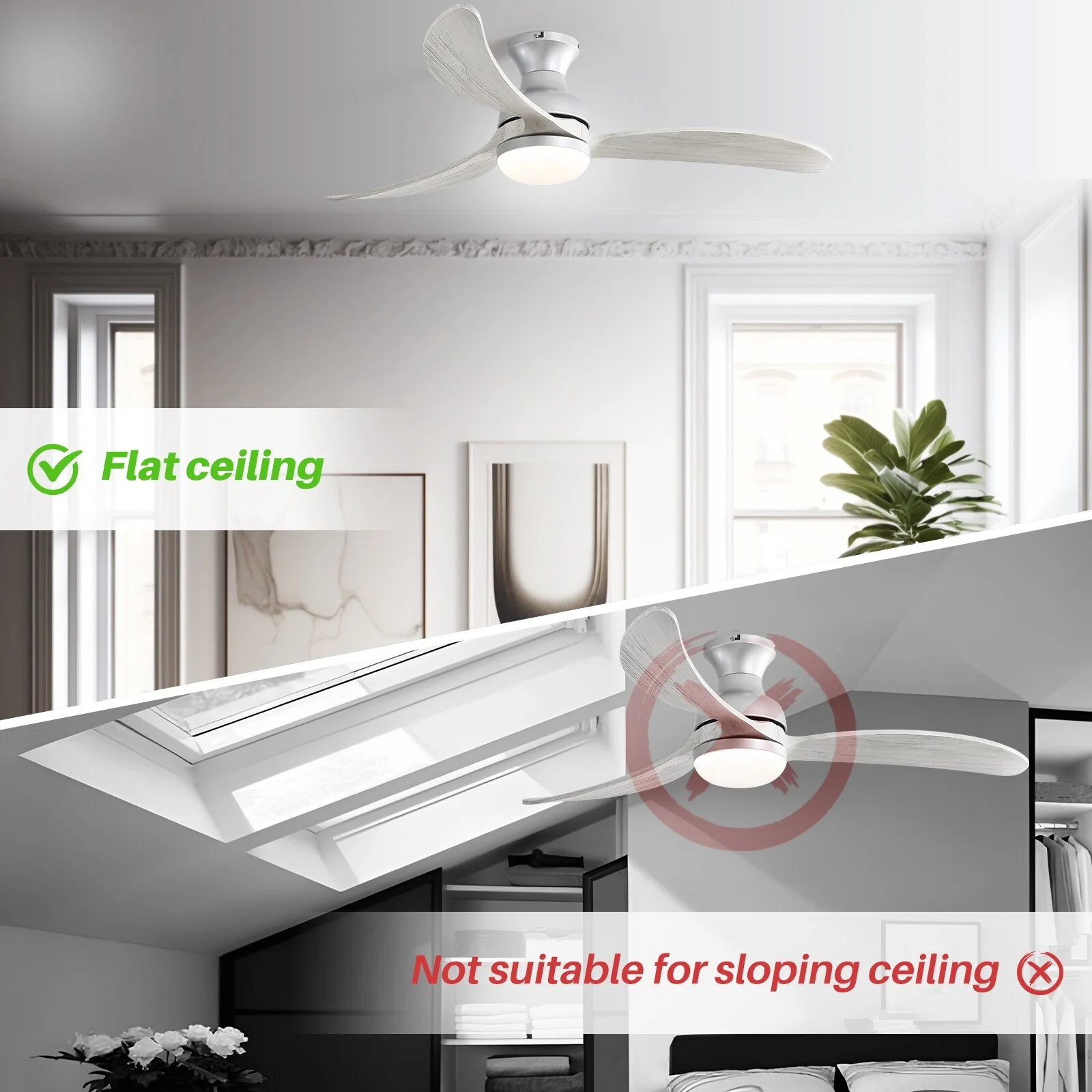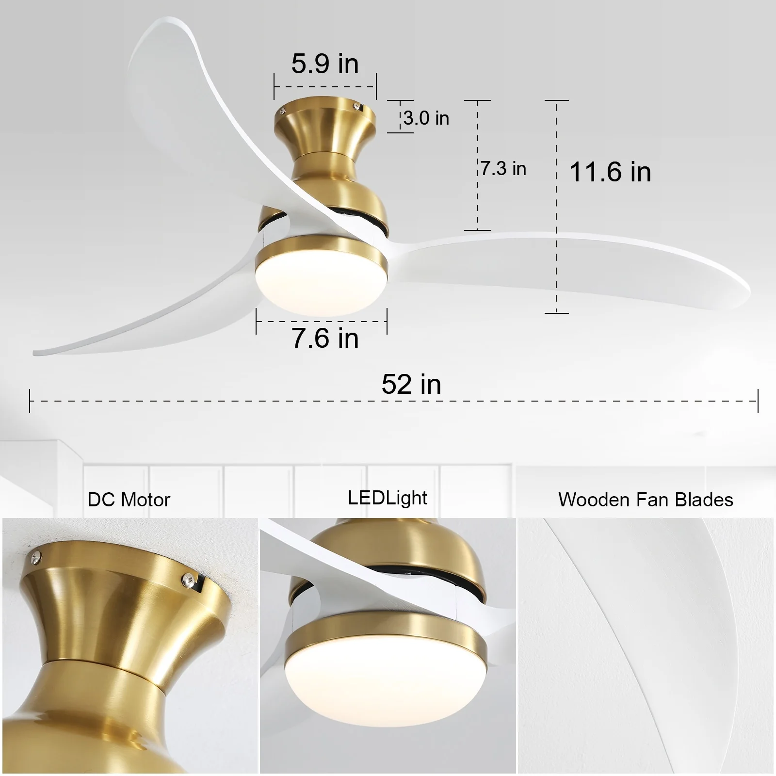52 inch Smart Ceiling Fan Light with Remote Control with 3 Wood Blades,Flush Mount,Dimmable LED - 52 inch