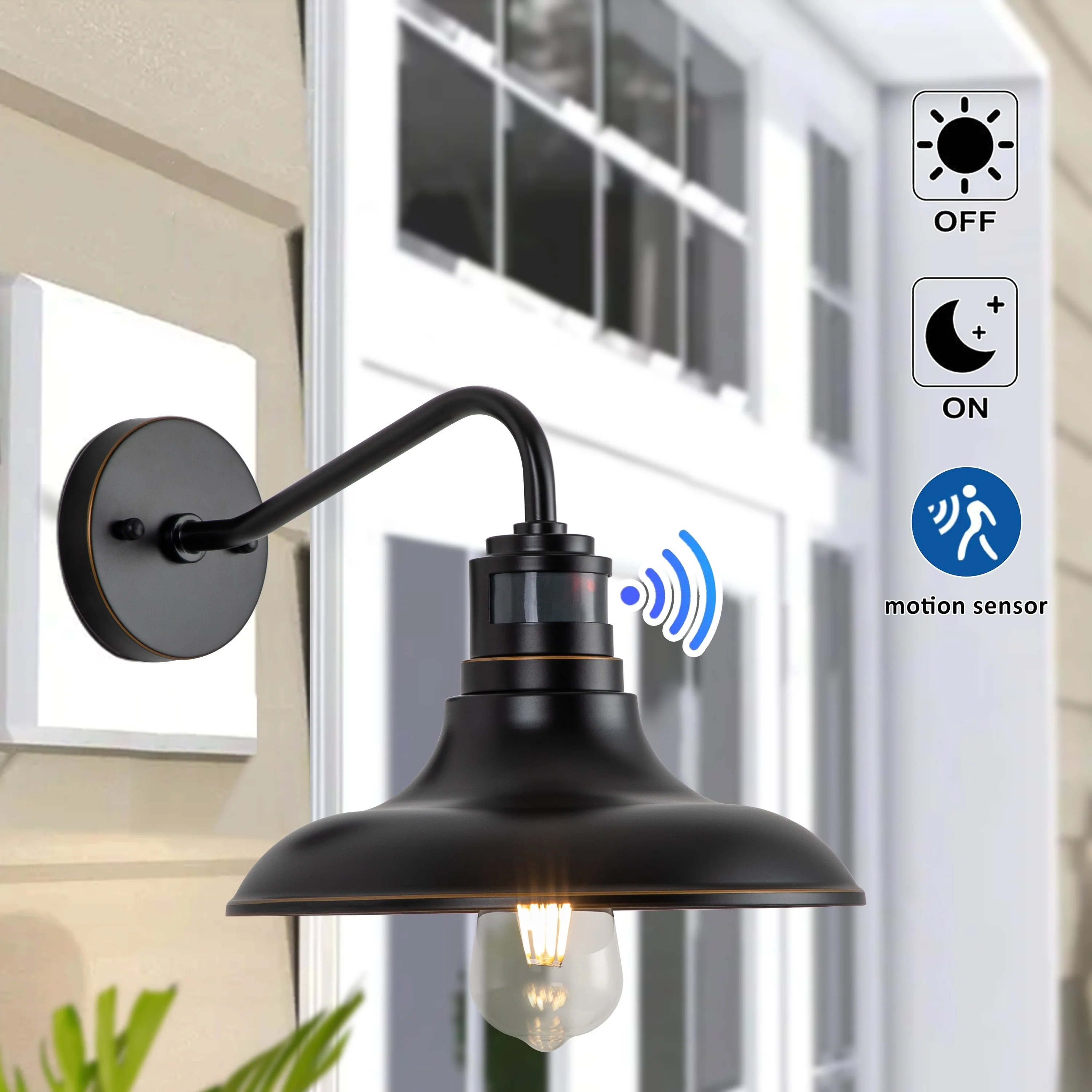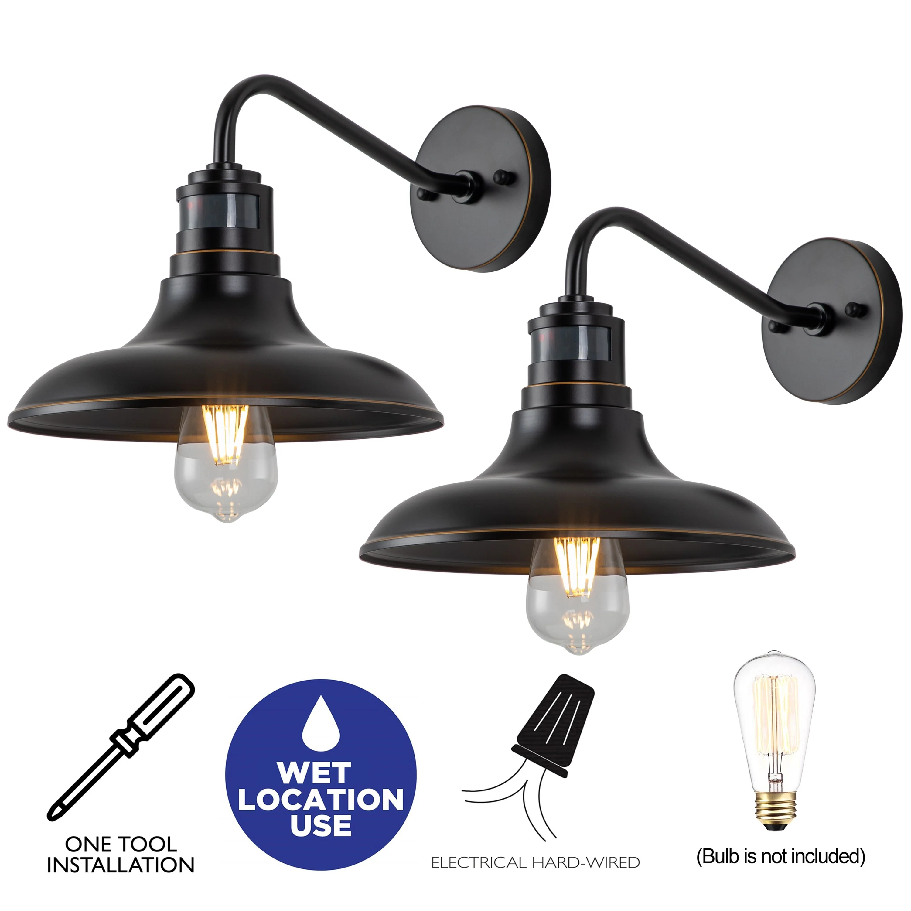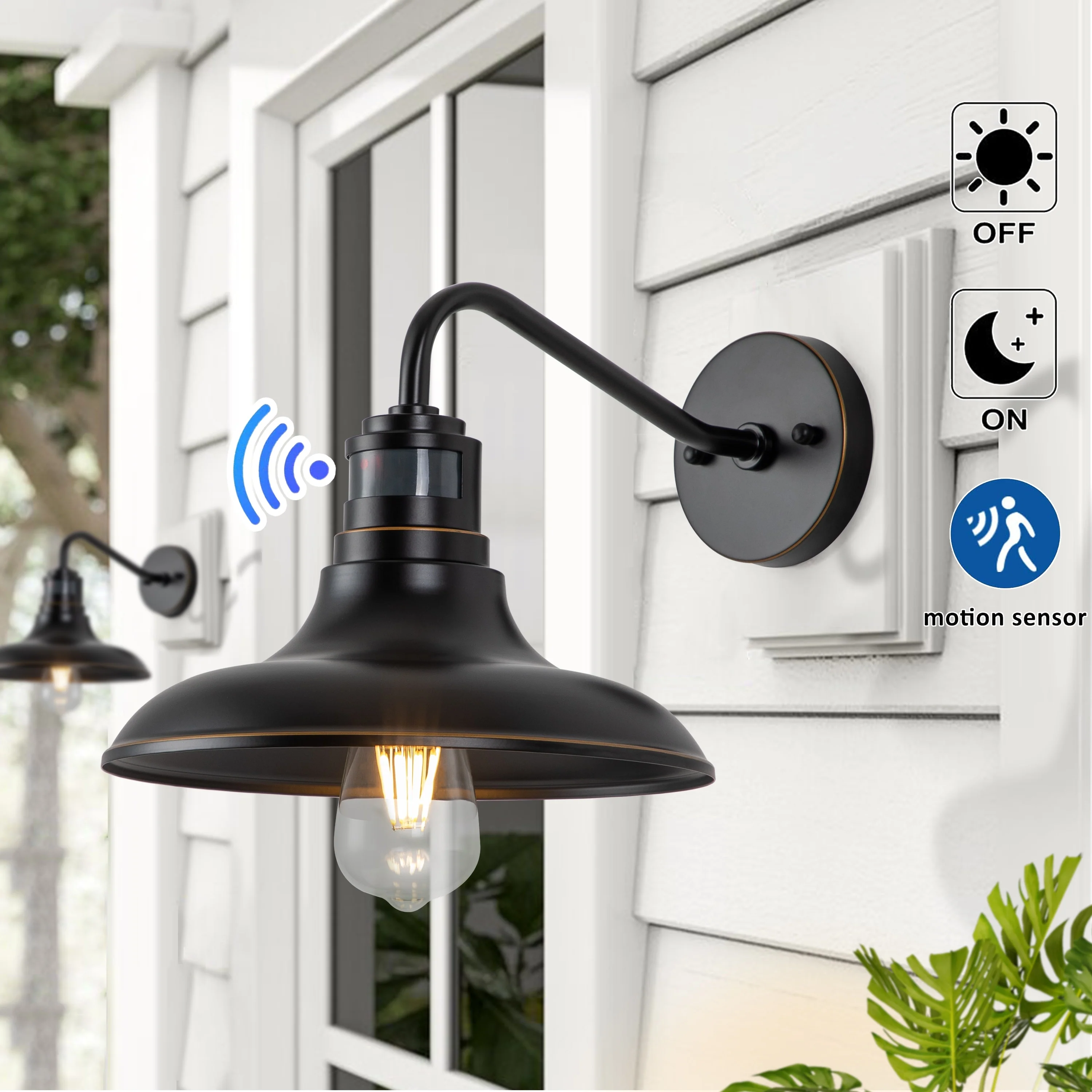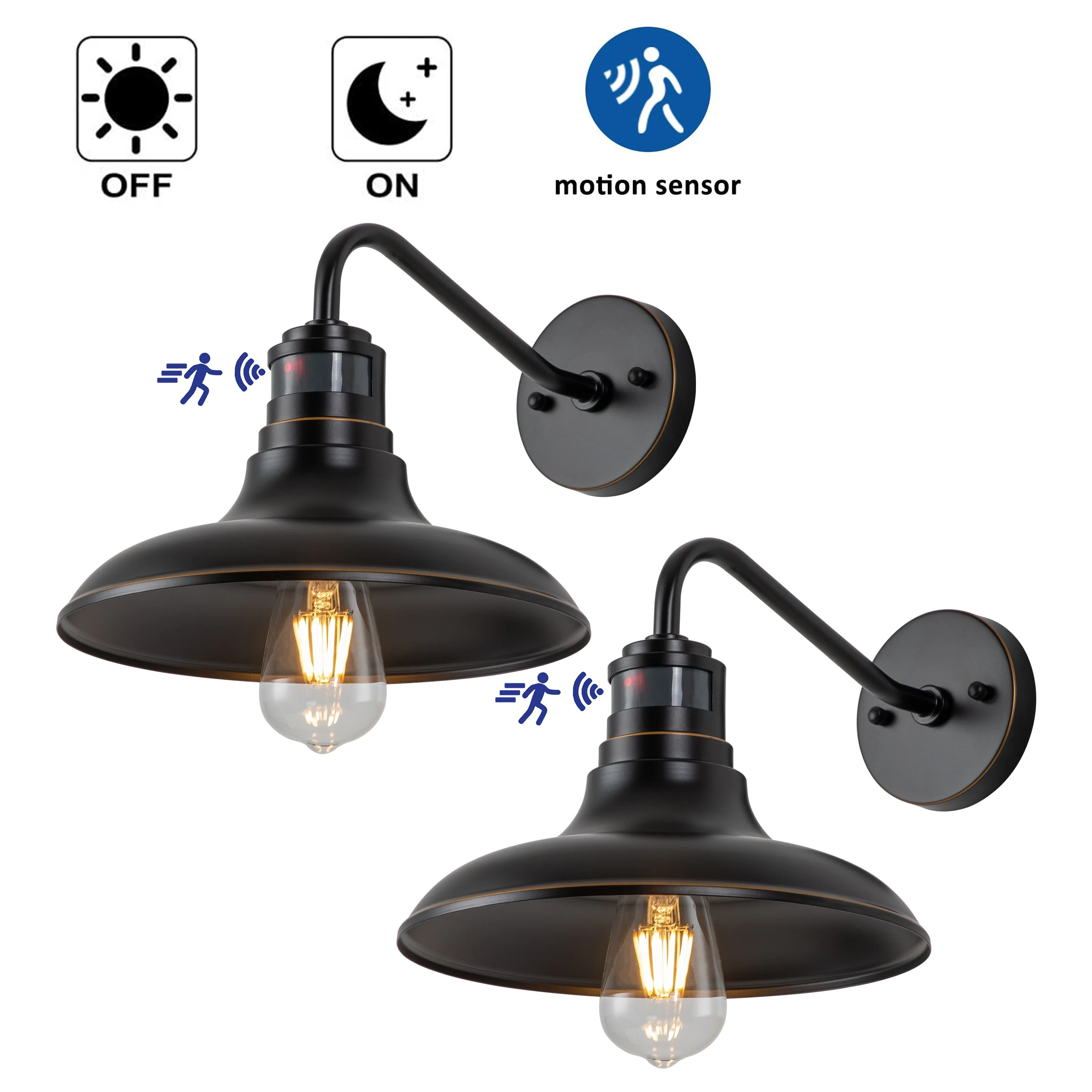 1-Light 2-Pack Black Motion Sensor Dusk to Dawn Outdoor Barn Light