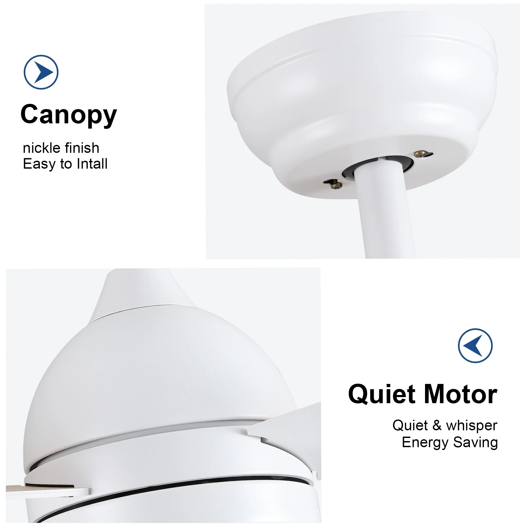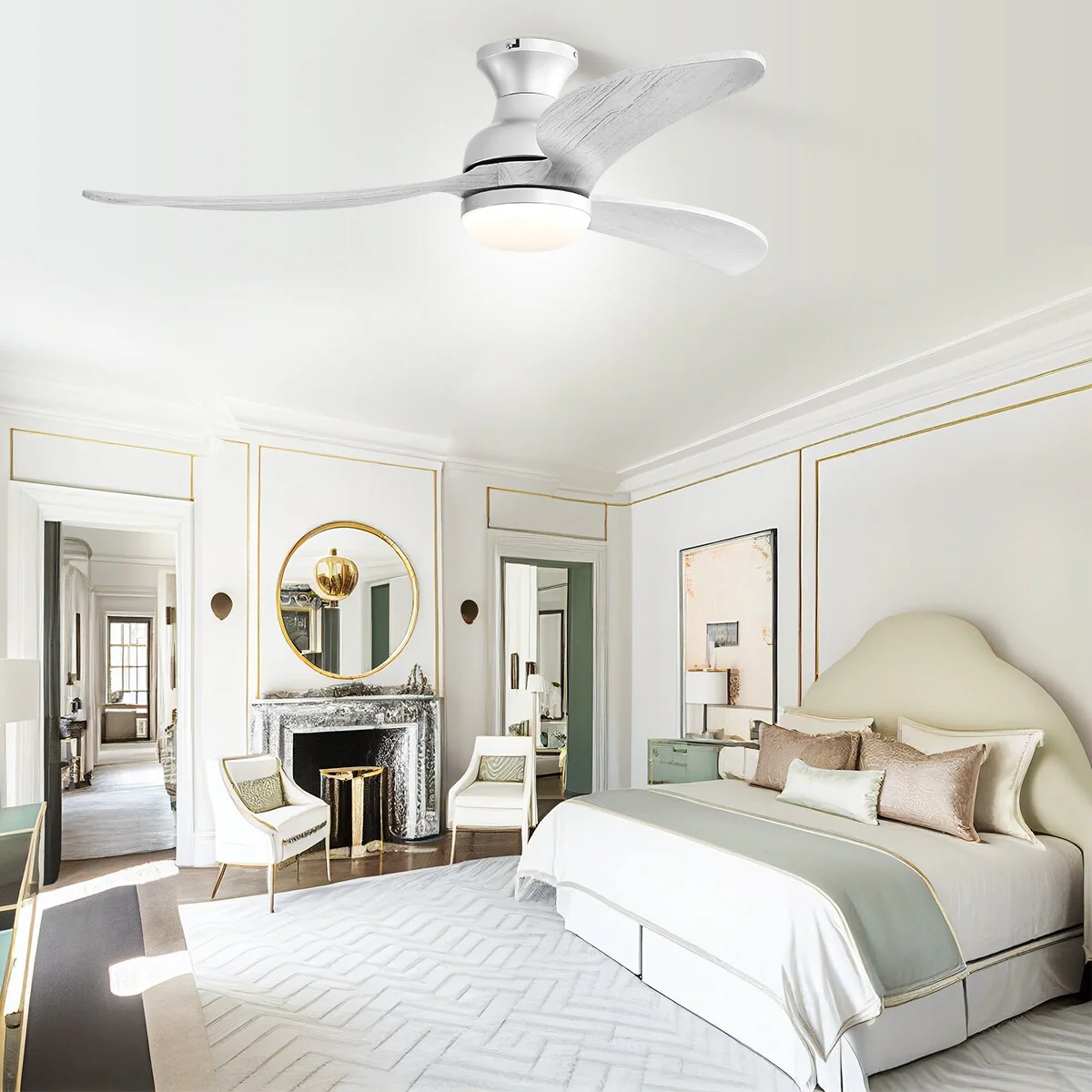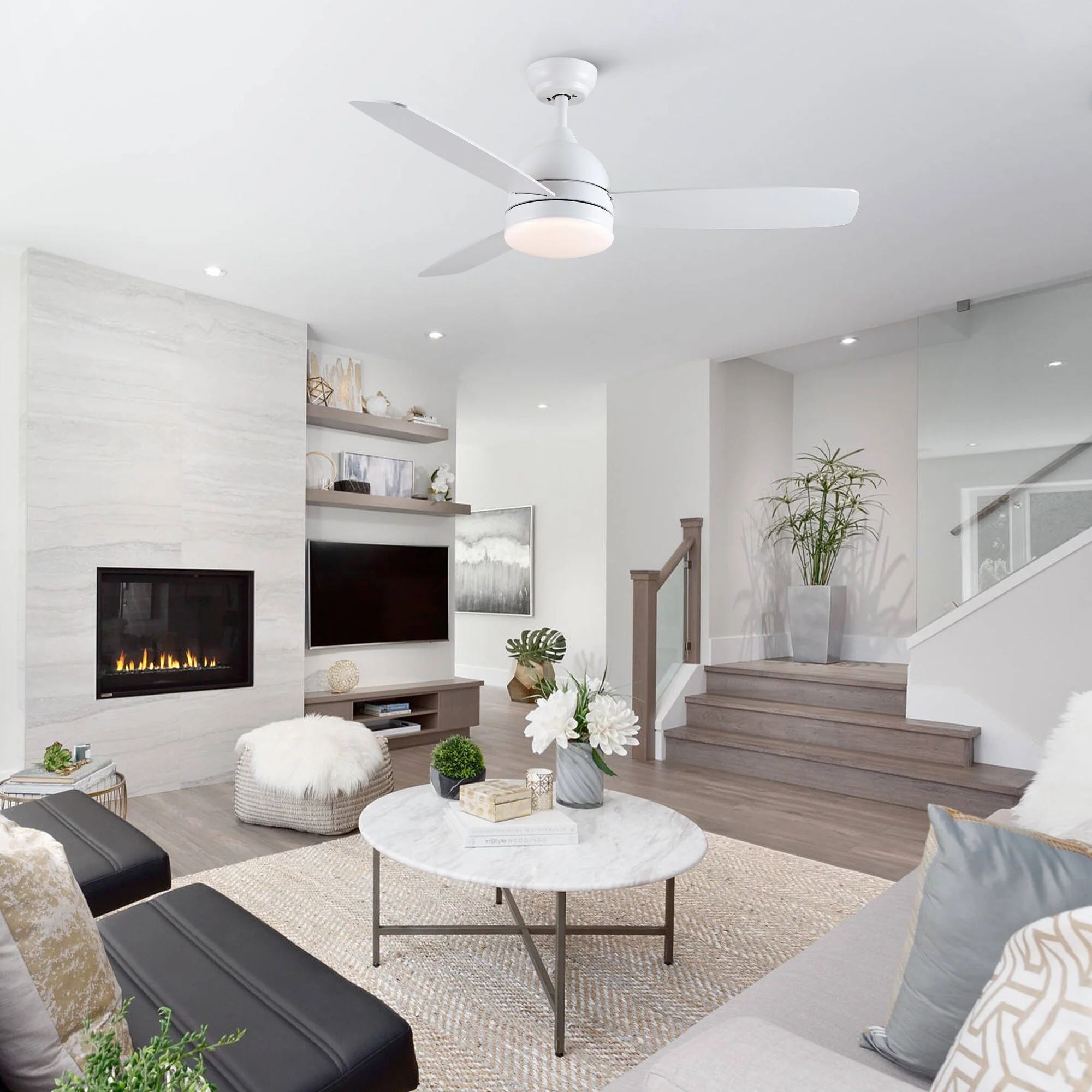 52 Inch White Reversible Ceiling Fan with Light & 6 Speed Remote Control