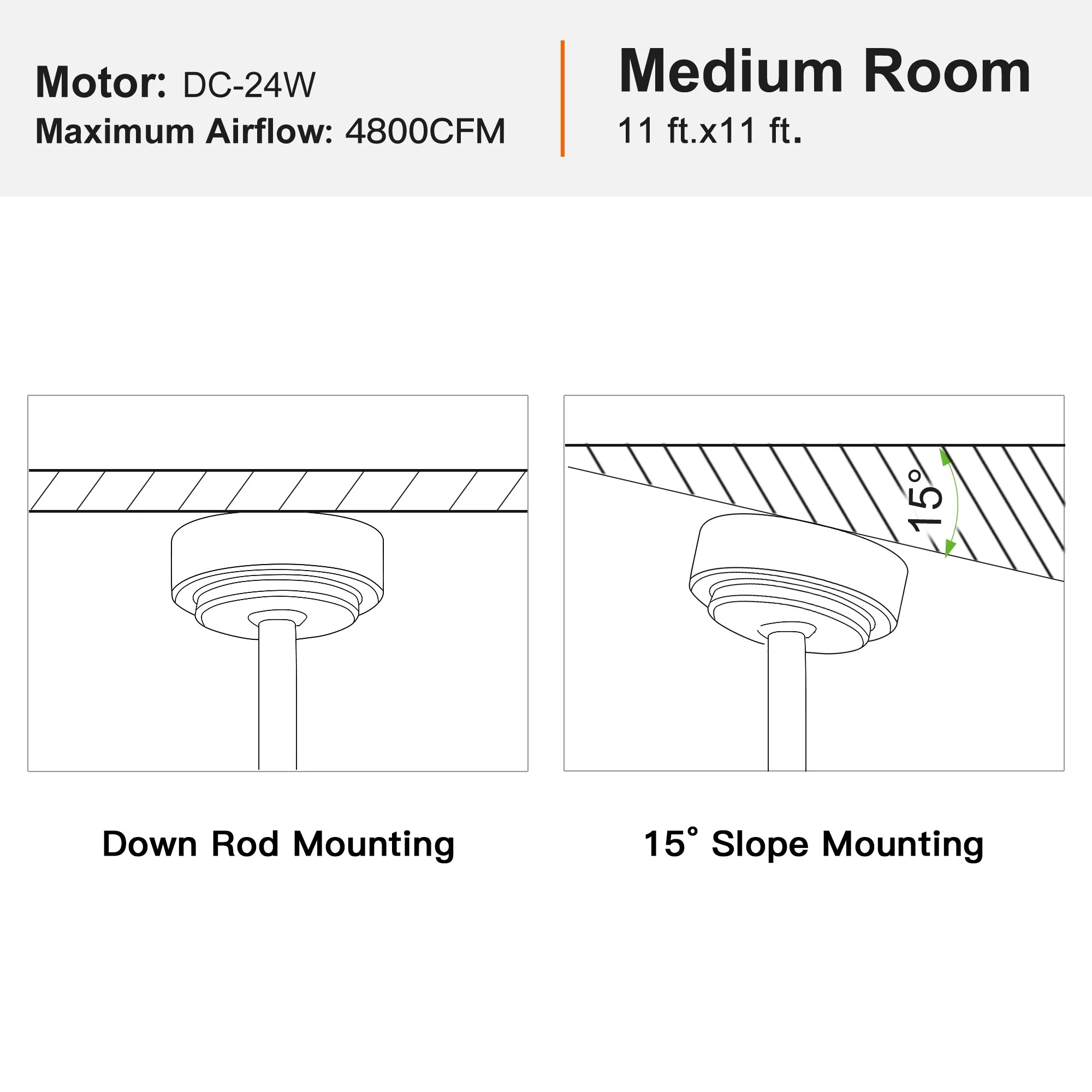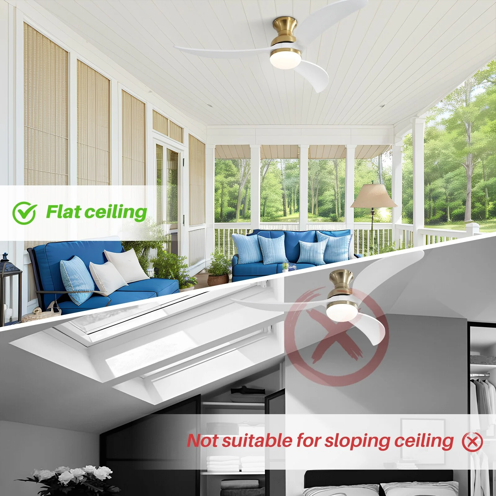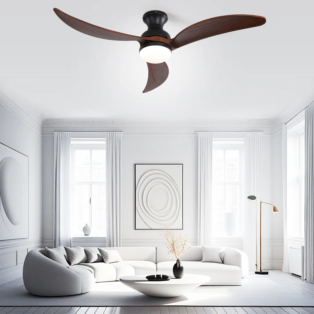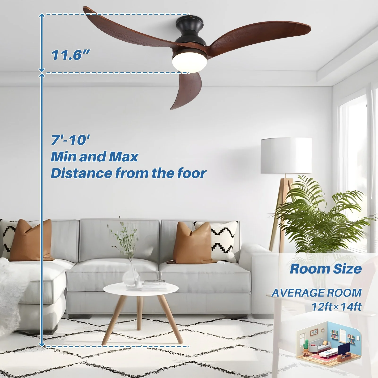52" Flush Mount Ceiling Fan without Light,Reversible DC Motor,Wood Blades,Black and Walnut - 52 inch diameter