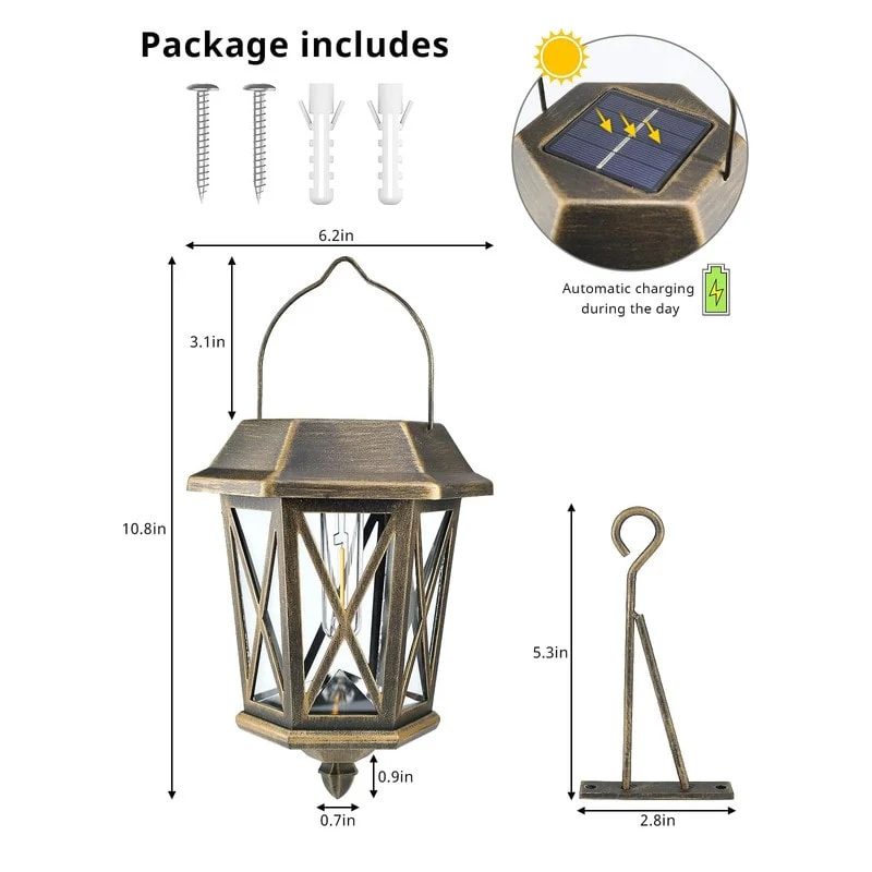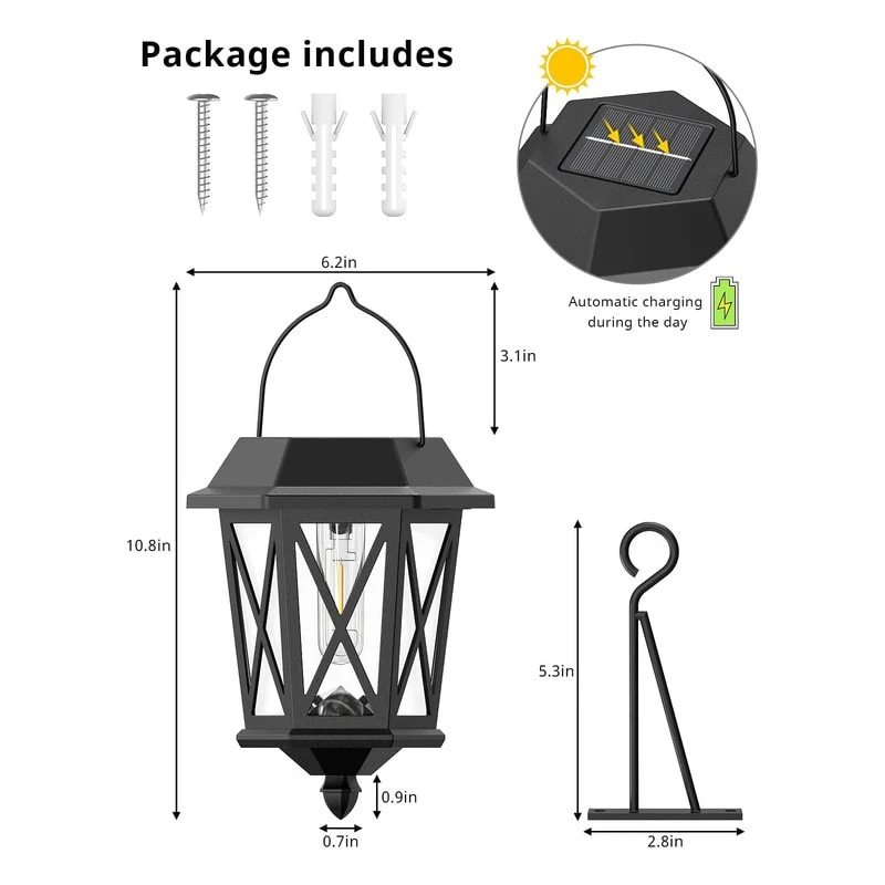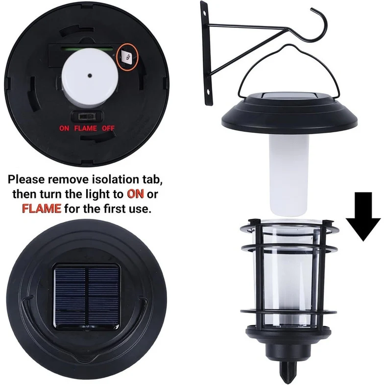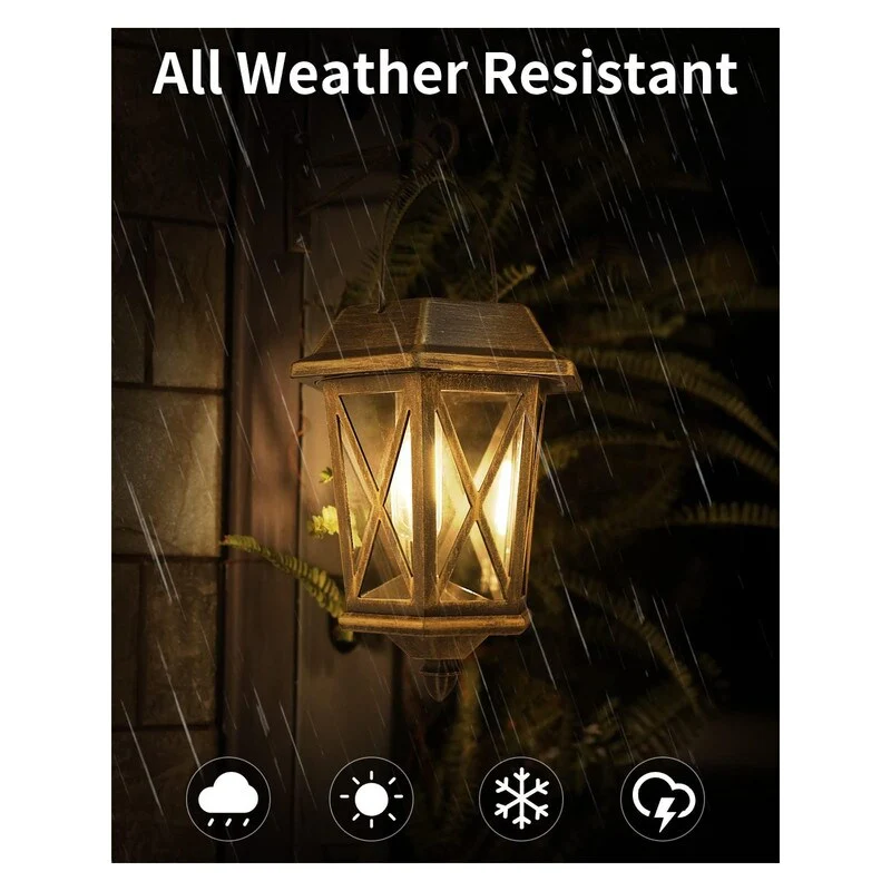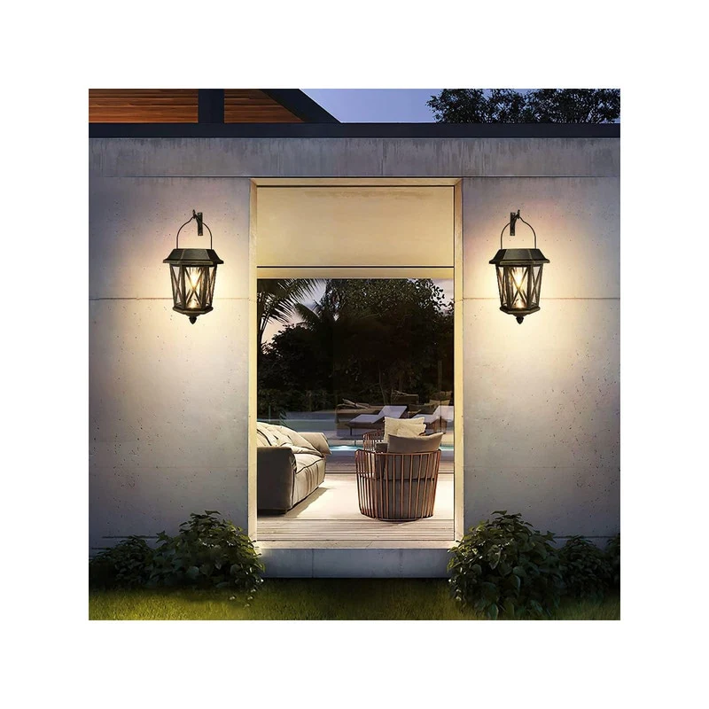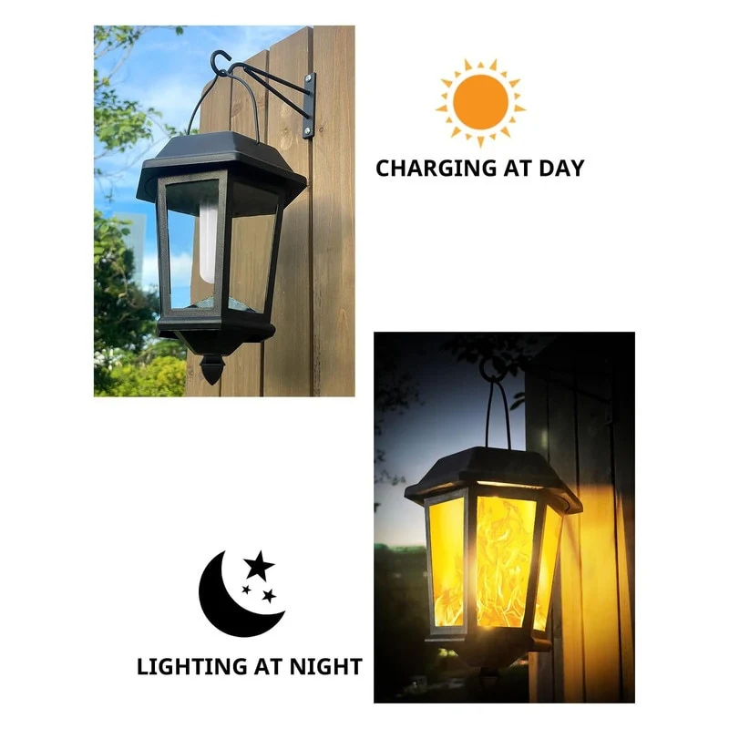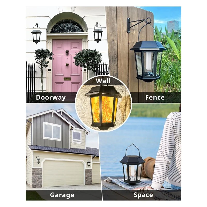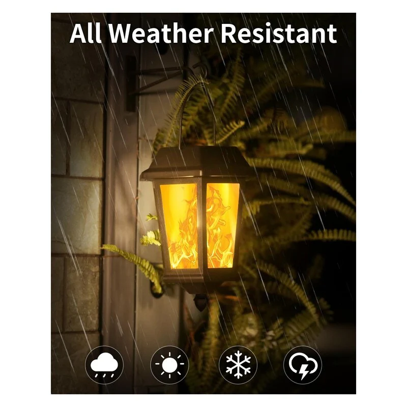 4 Pack Solar Flame Wall Lanterns Outdoor, Solar Powered - Warm White