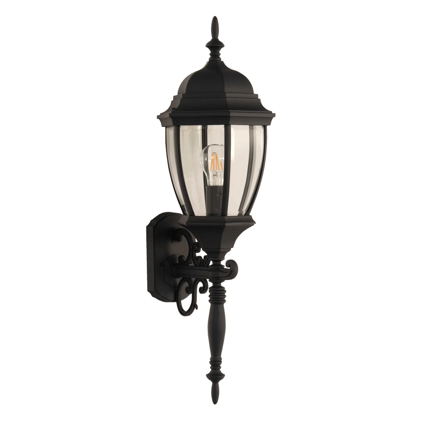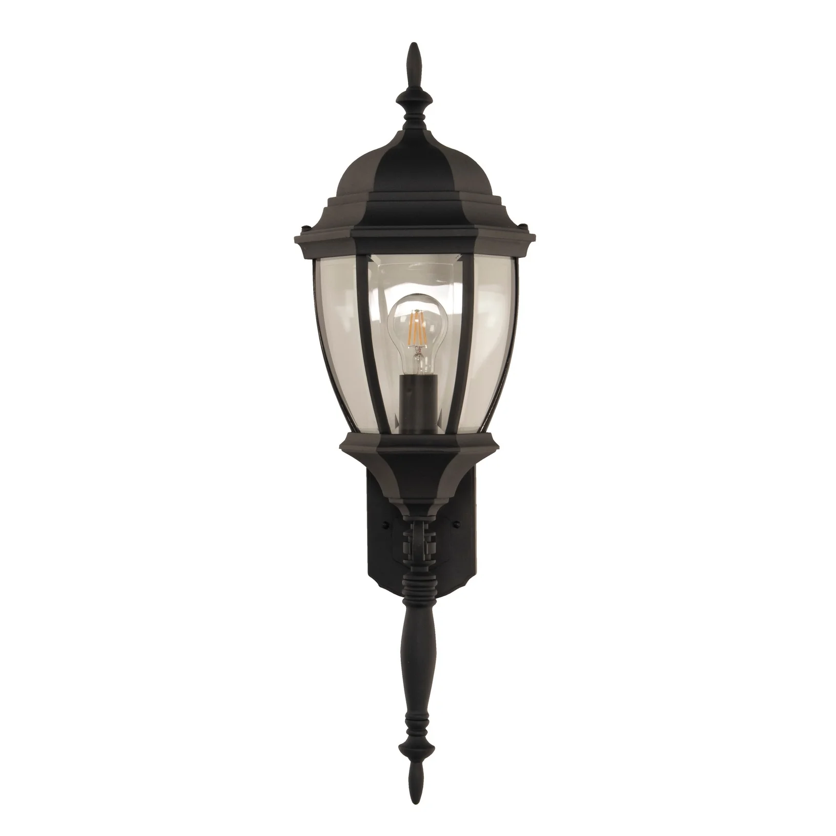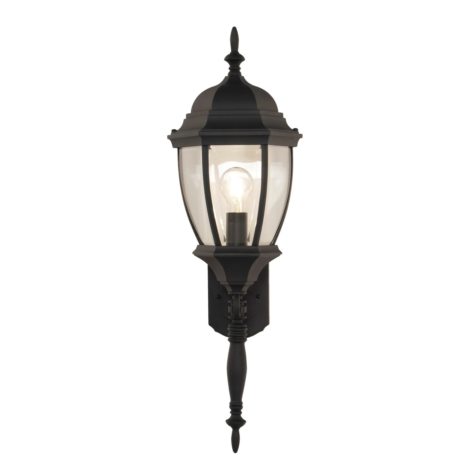 Bent Glass Outdoor Wall Mount Sconce, 1-Light 100 Watt - Textured Black - Small