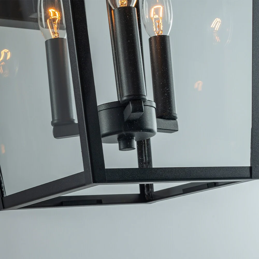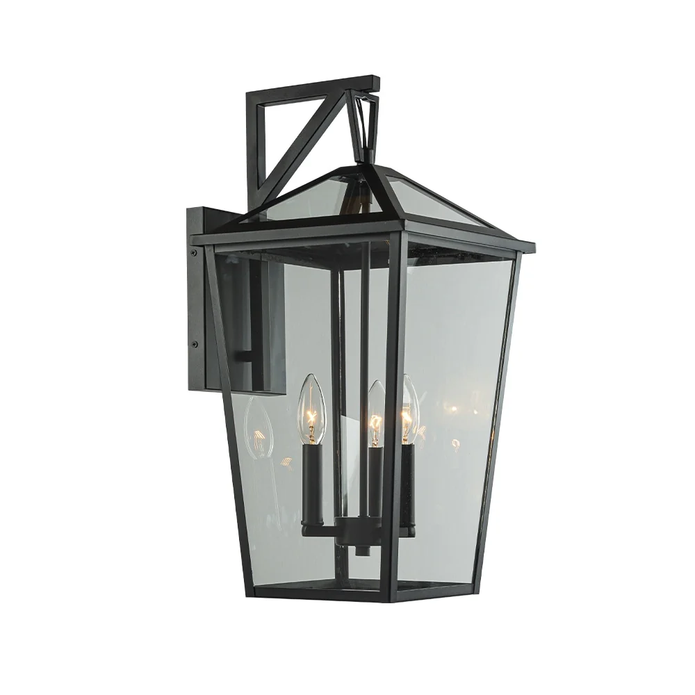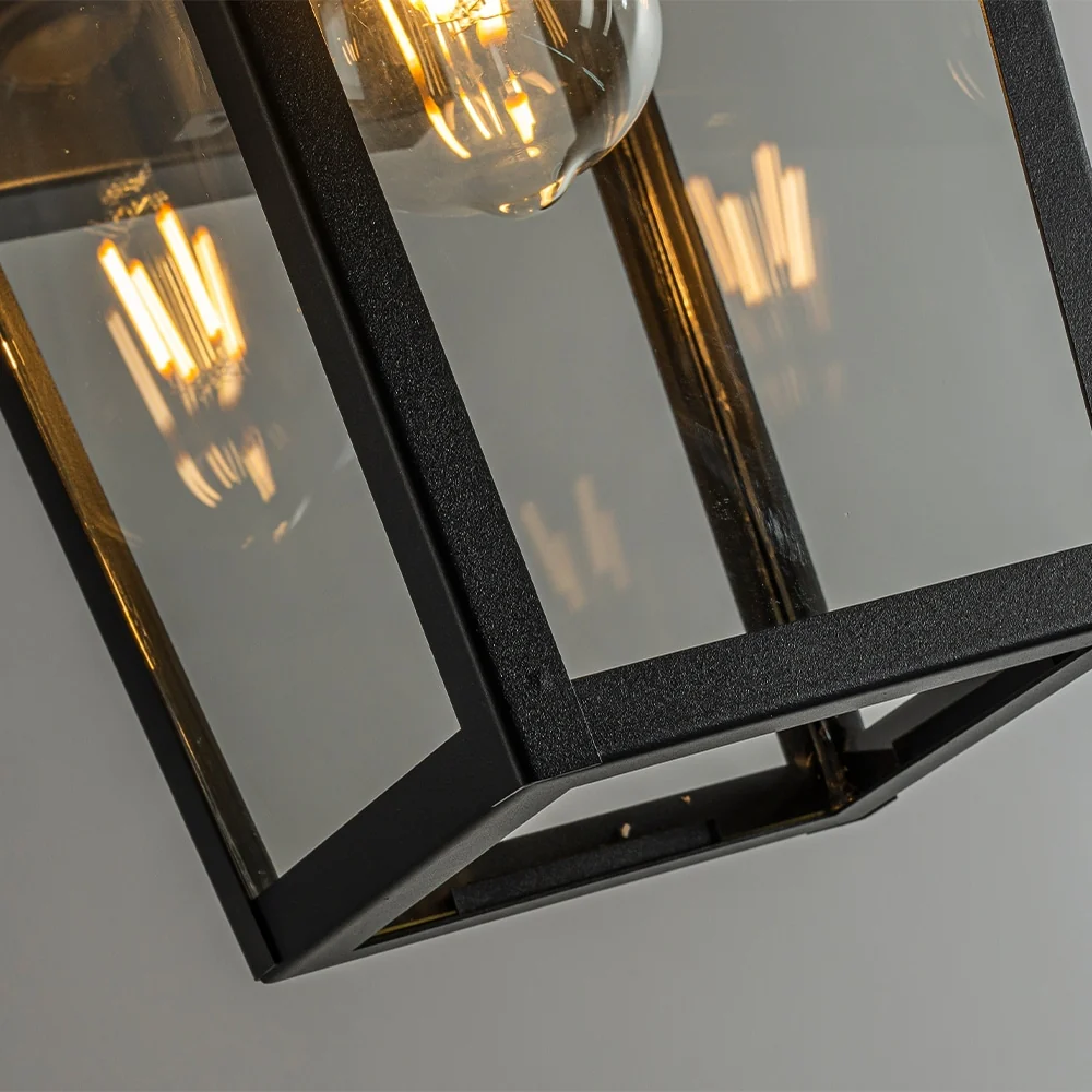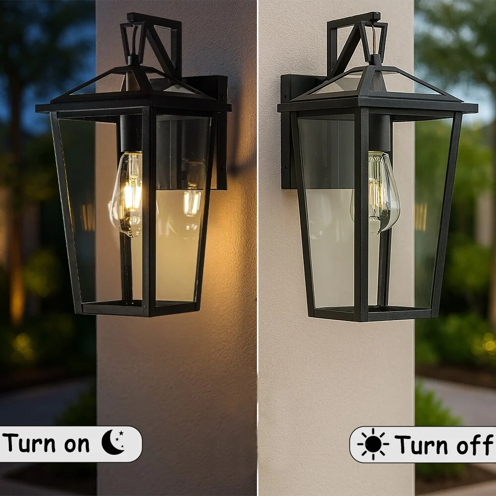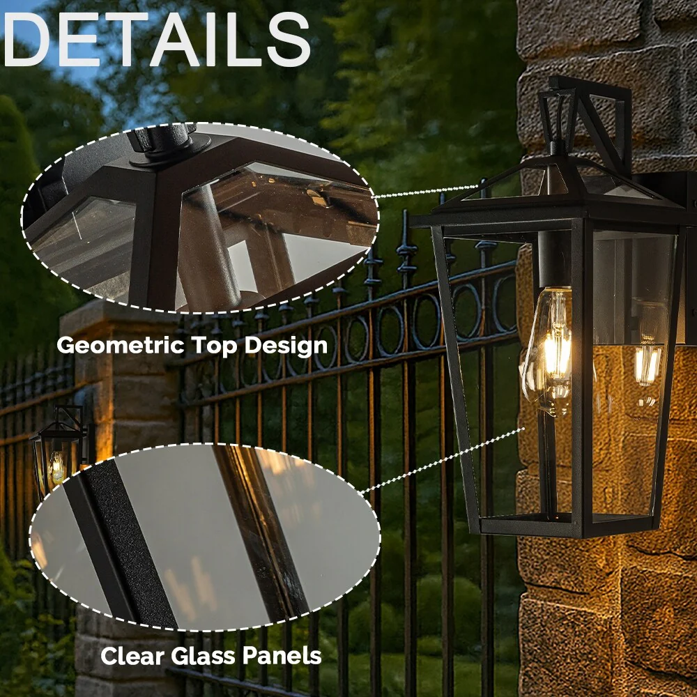 Modern Matte Black Outdoor Wall Lantern with Clear Tempered Glass Open Bottom Design Exterior Light Fixture for Entryway