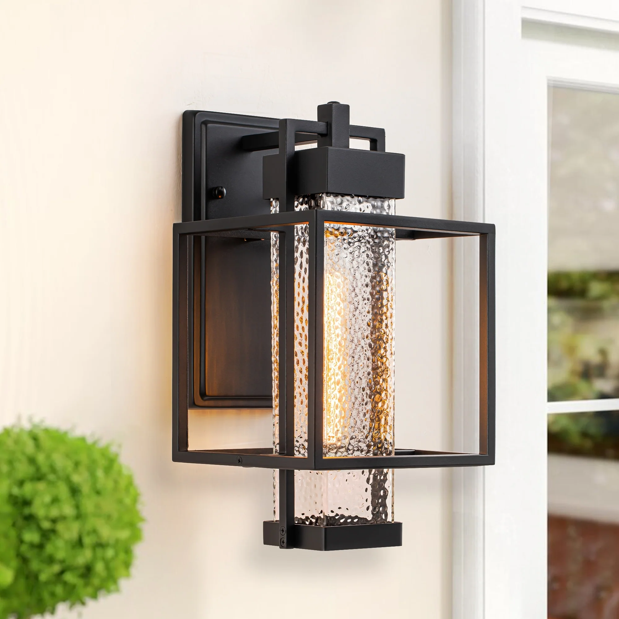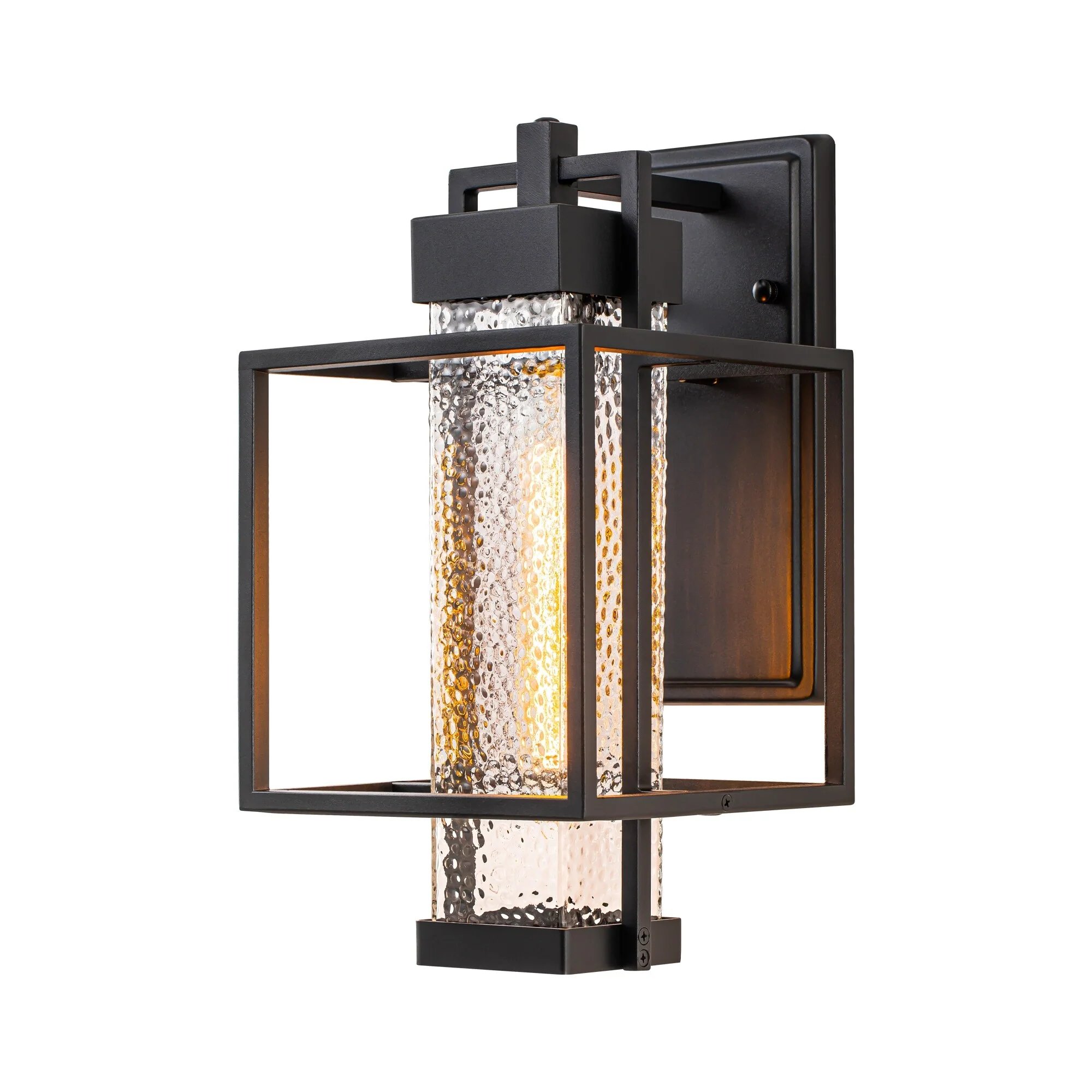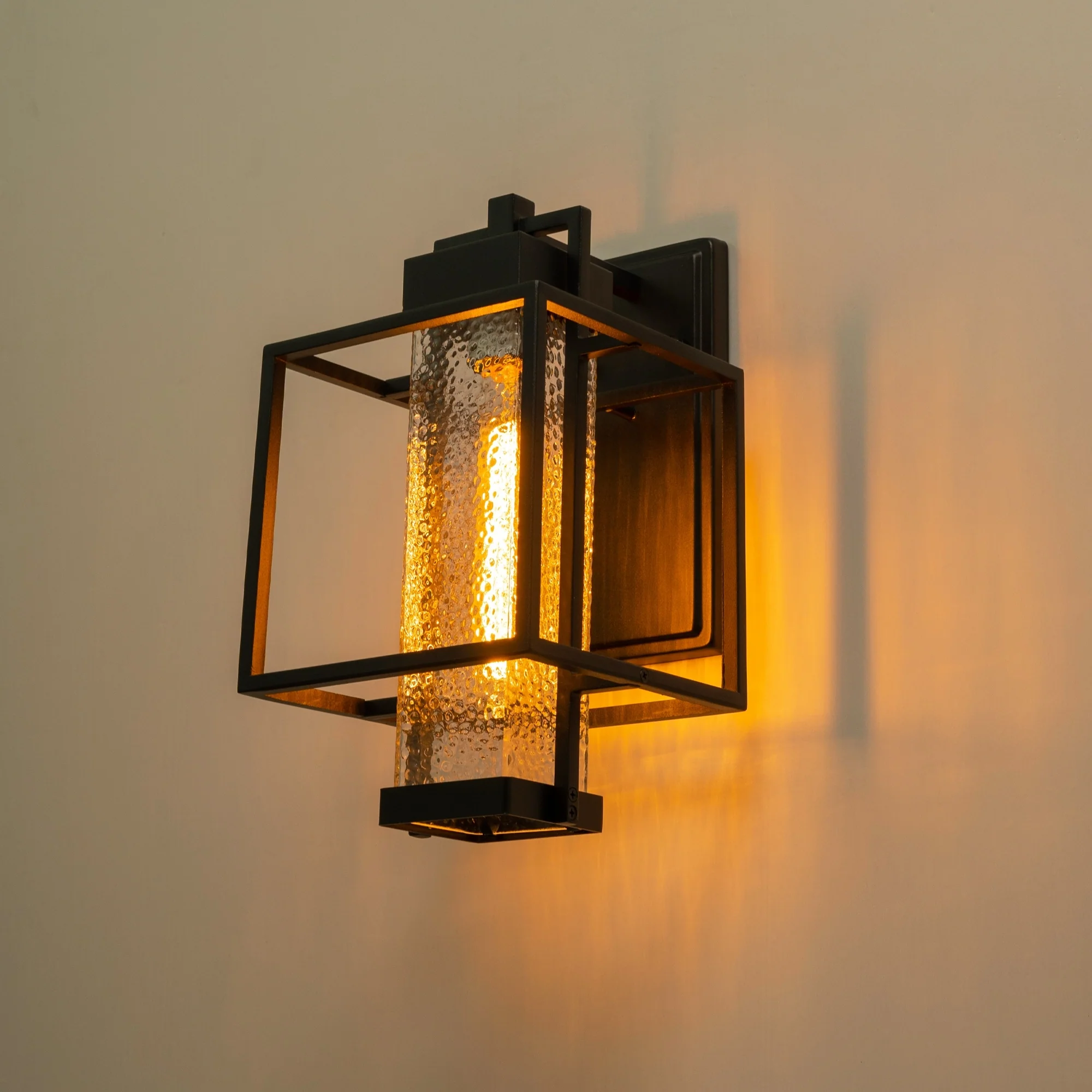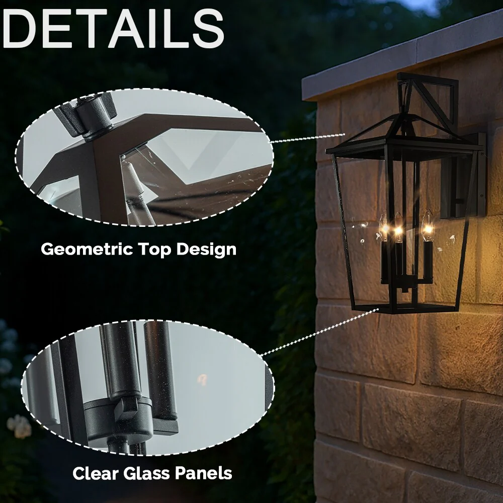 Modern Matte Black Outdoor Wall Lantern with Clear Tempered Glass Open Bottom Design Exterior Light Fixture for Entryway