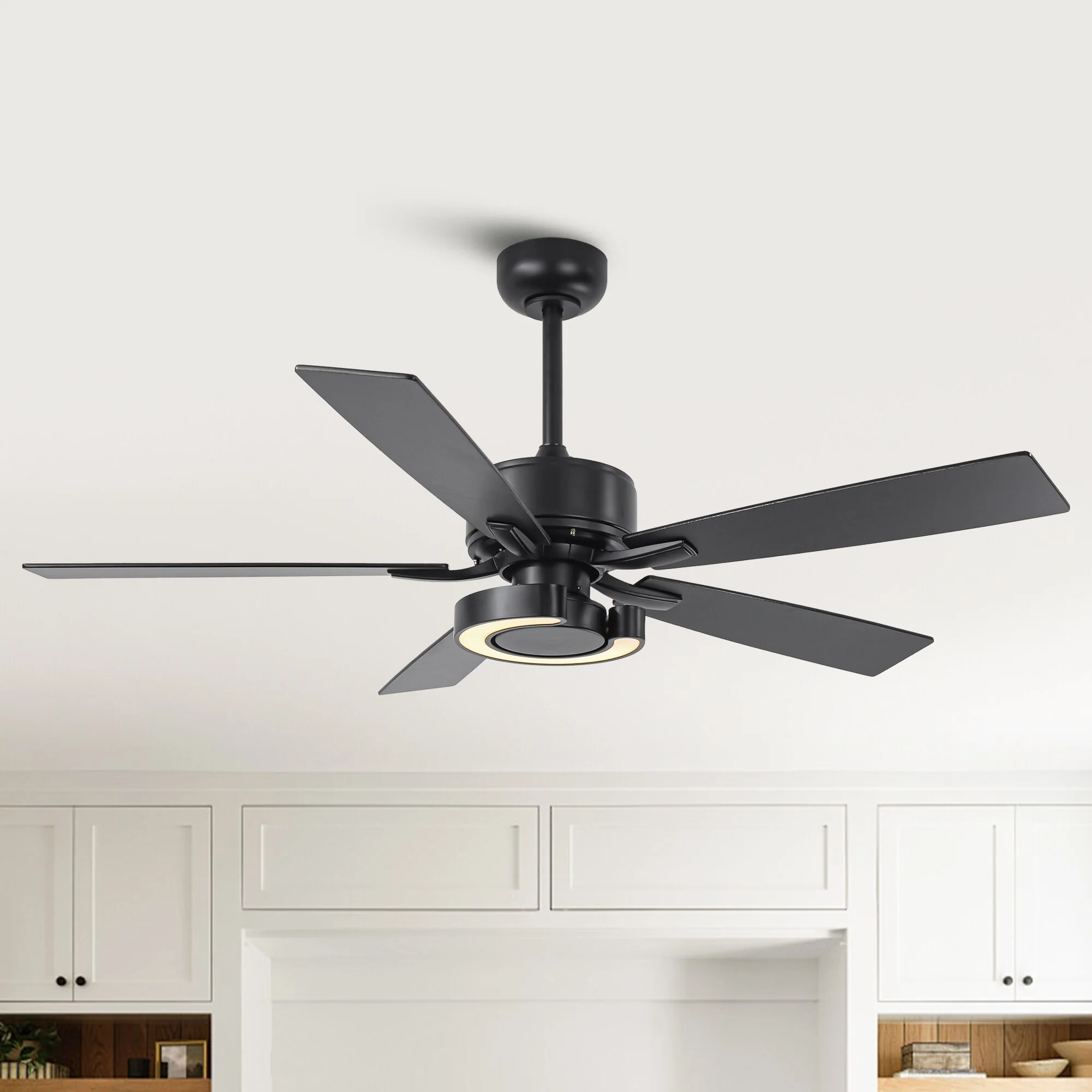 52-Inch Modern Intergatred LED Reversible Black Ceiling Fan with Light and Remote