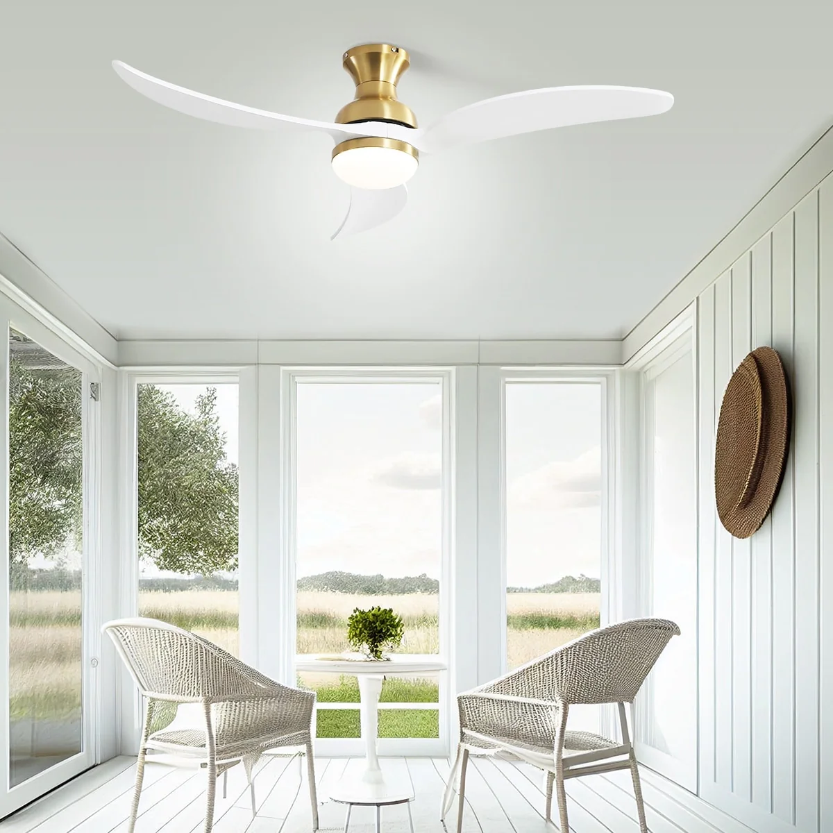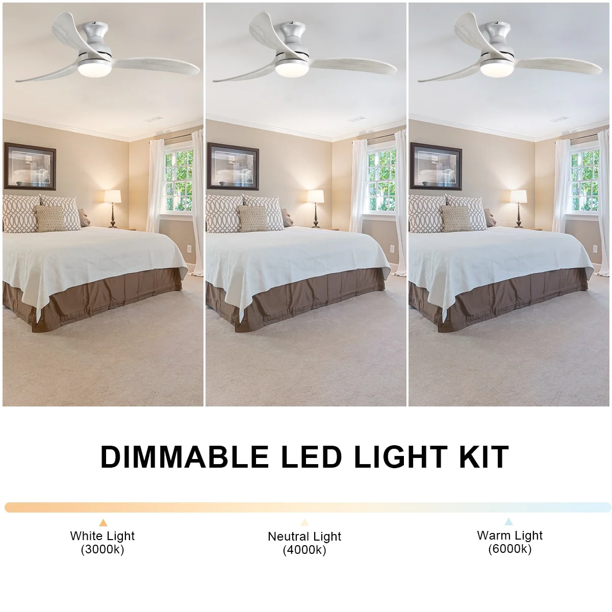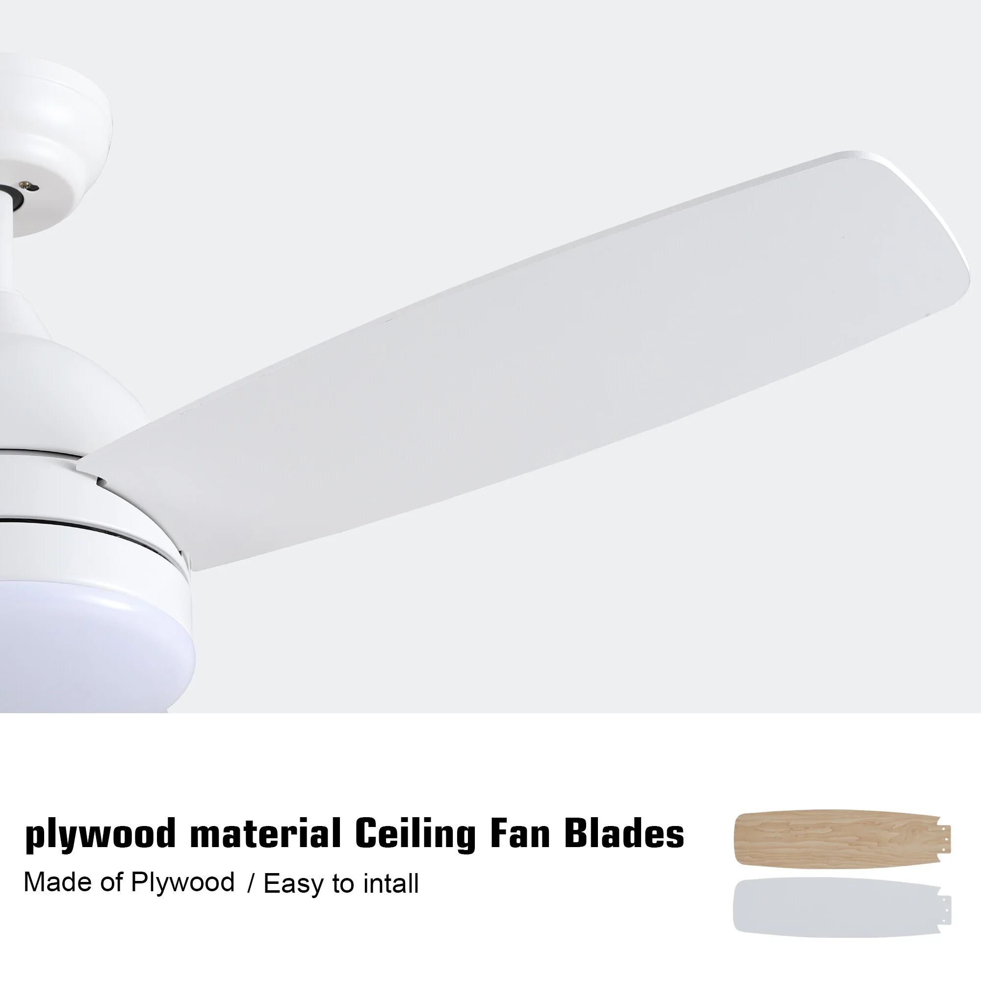 52 Inch White Ceiling Fan with Remote Control, 3 Color LED Change Light Ceiling Fan for Bredoom Patio