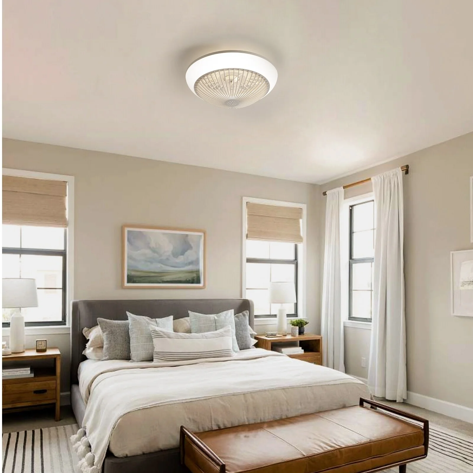 Indoor Smart Voice Control Ceiling Fan with Light, 48" Integrated LED Ceiling Fan for Bedrooms Kitchens Patios