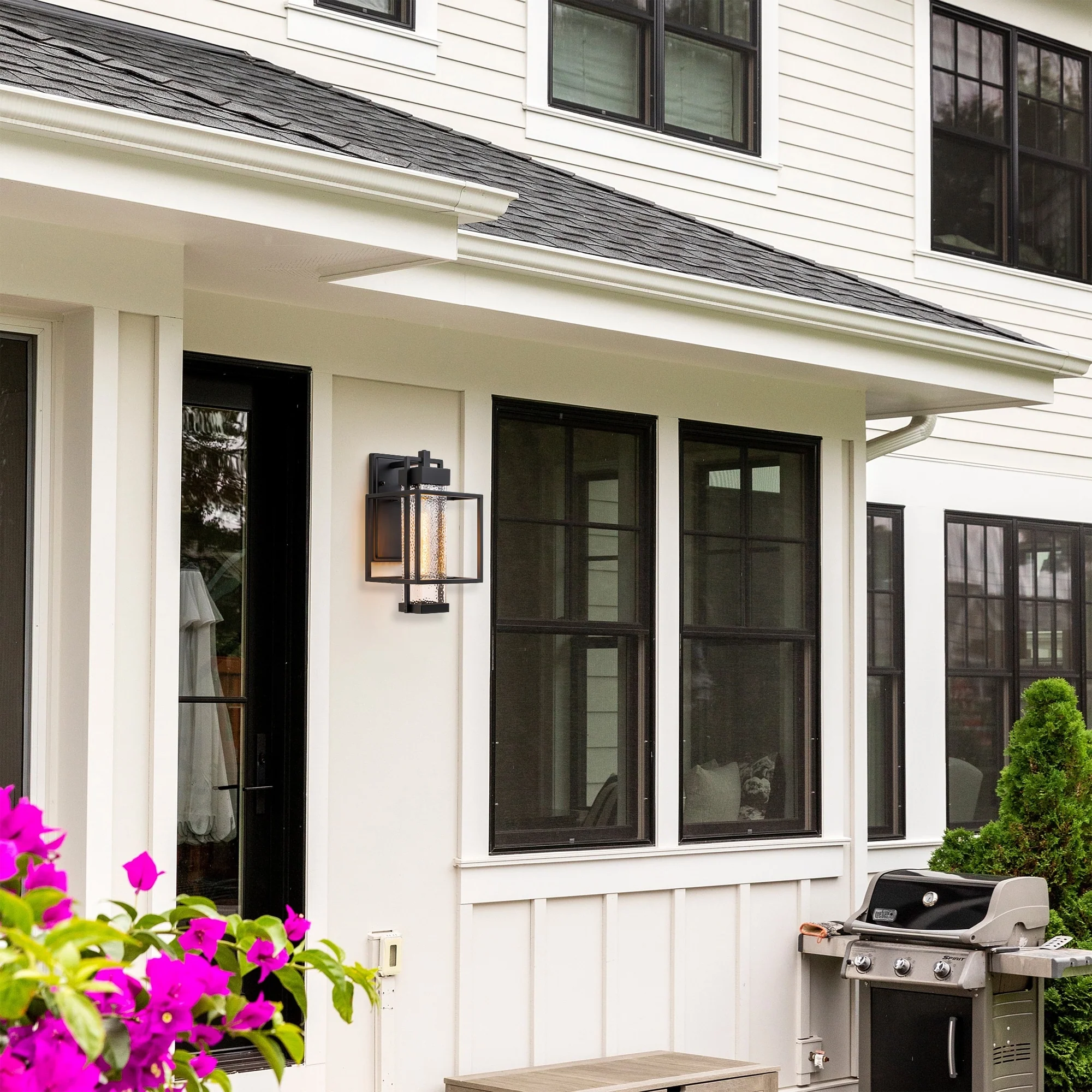 14.6"H 1-Light Black Aluminum Exterior Wall Lantern Sconce Waterproof Outdoor Wall Light with Bubble Glass