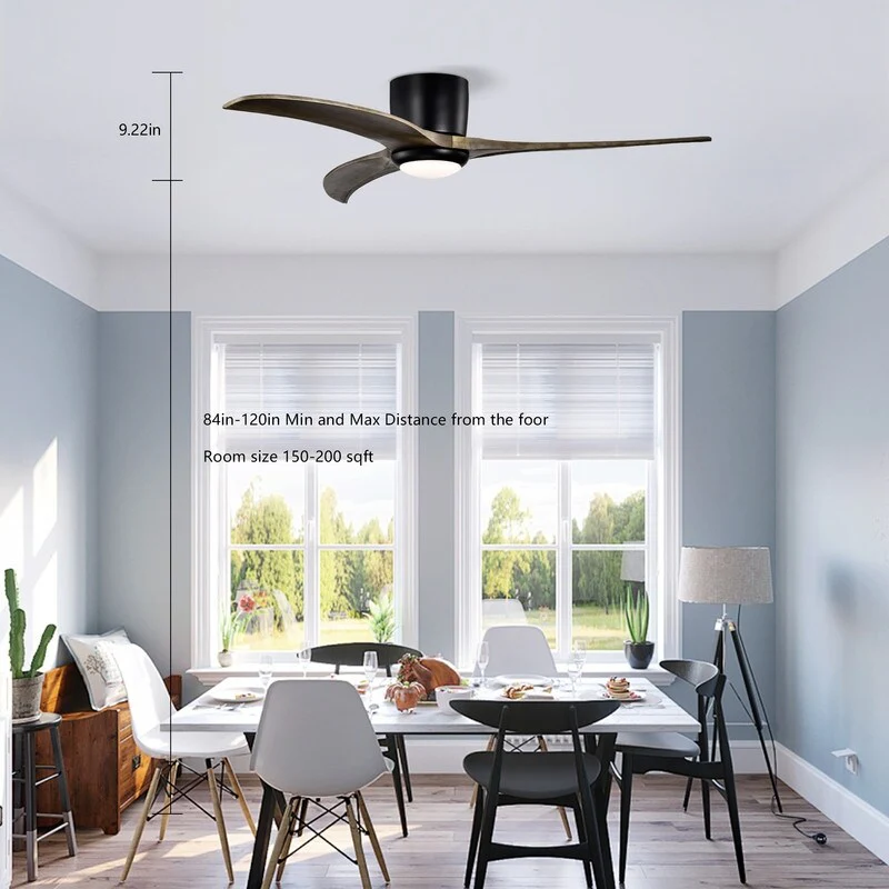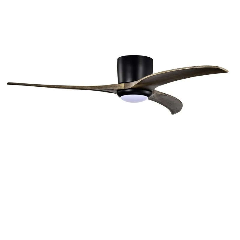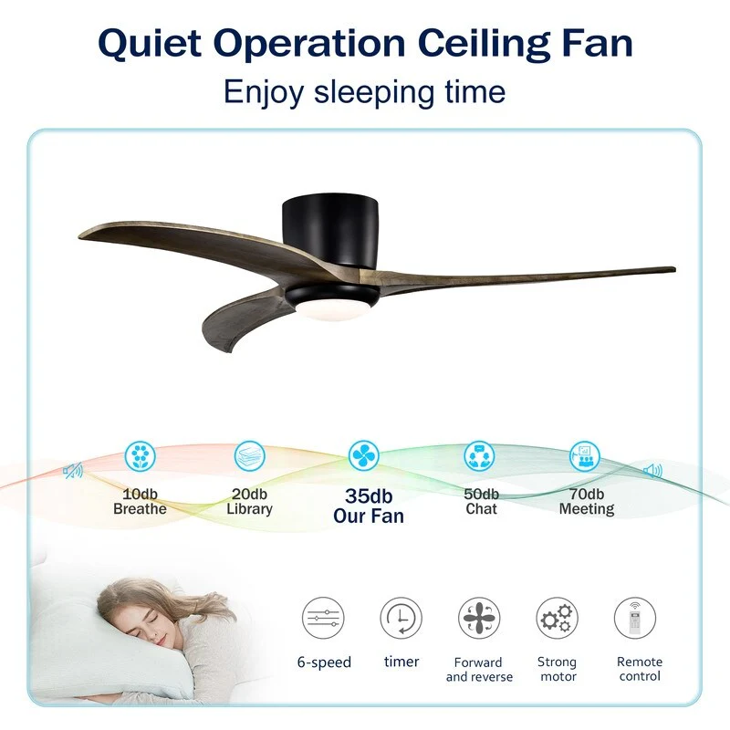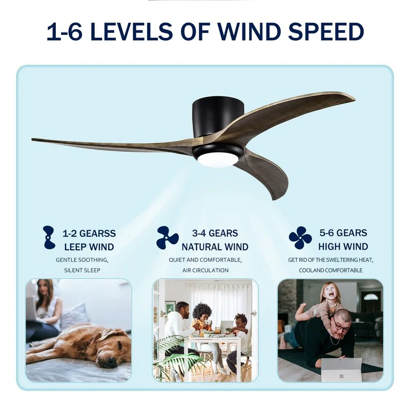 52" Flush Mount Ceiling Fan Solid Wood Blades Ceiling Fan With Light with Remote Control, Noiseless Reversible Motor, 6 Speed