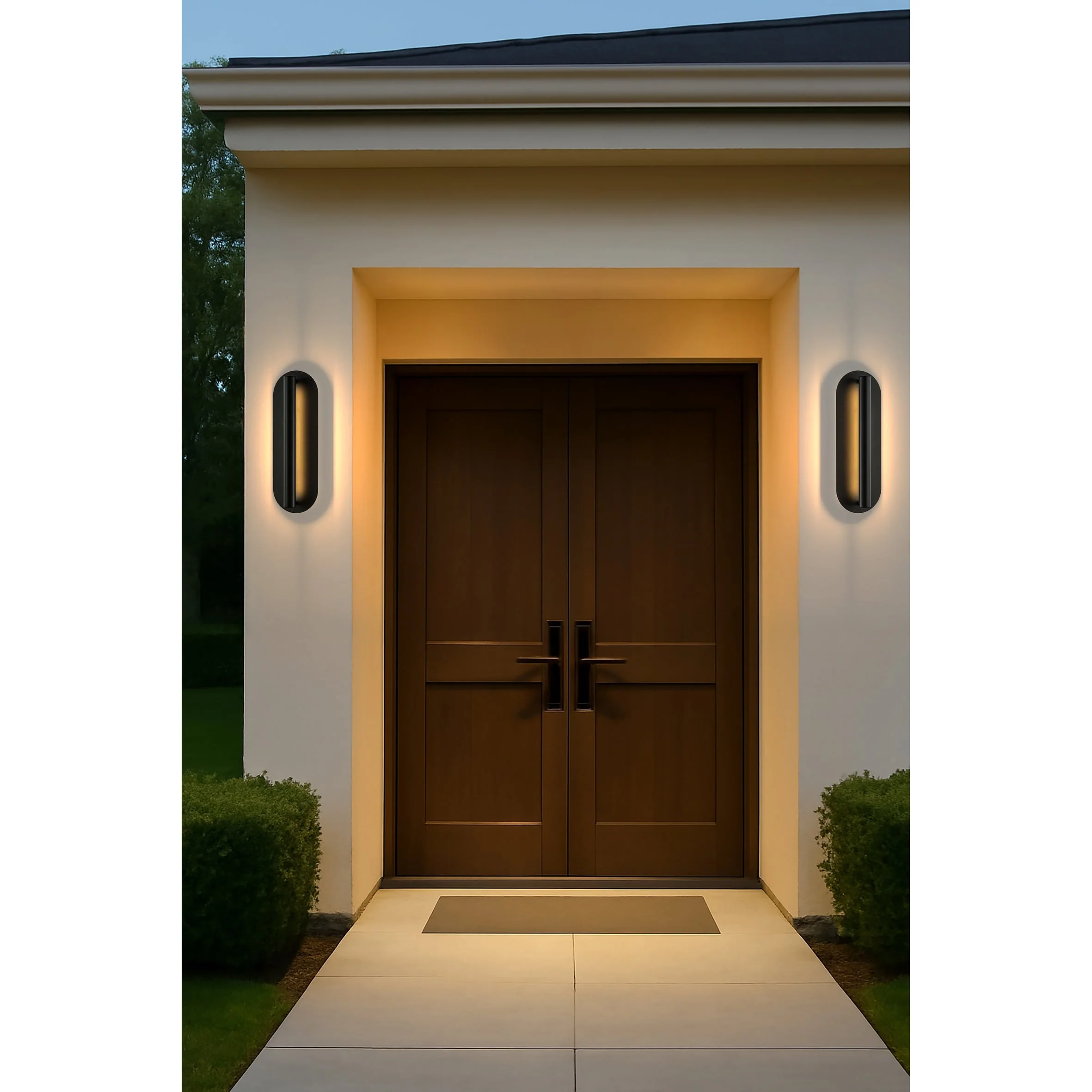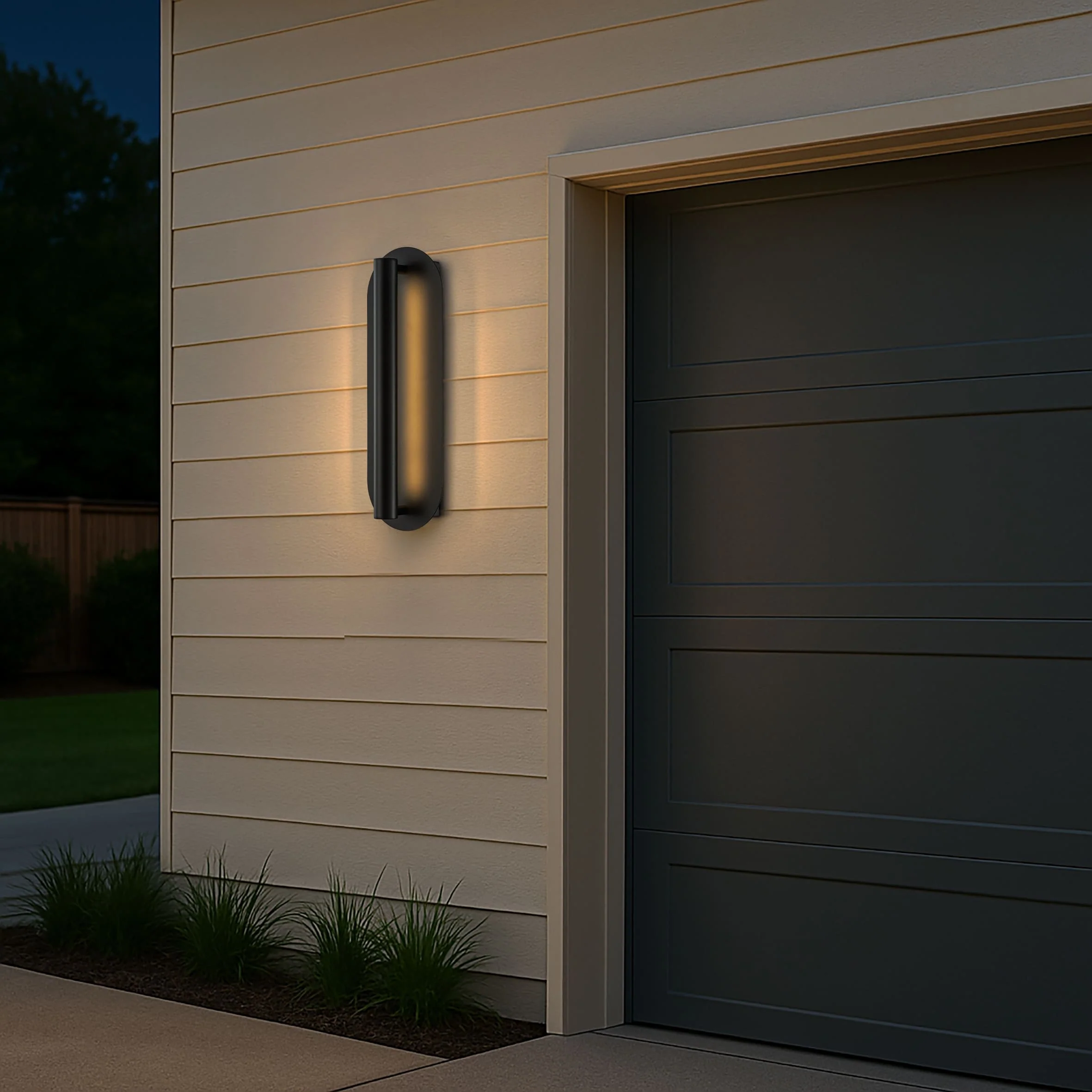 Oval Matte Black 23W Integrated LED Wall Sconce with Acrylic Shade Modern Dusk to Dawn Outdoor Waterproof Exterior Light Fixture