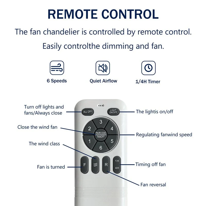 52 Inch Brushed Nickel Ceiling Fan Light, 6 Speeds Reversible Ceiling Fan for Bedroom Living Room Patio