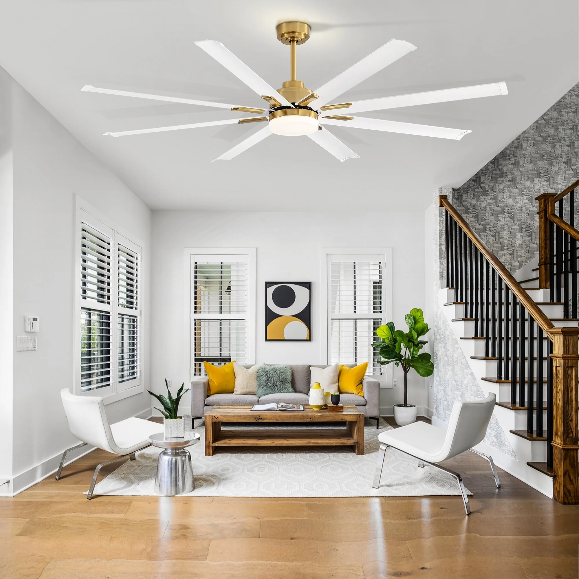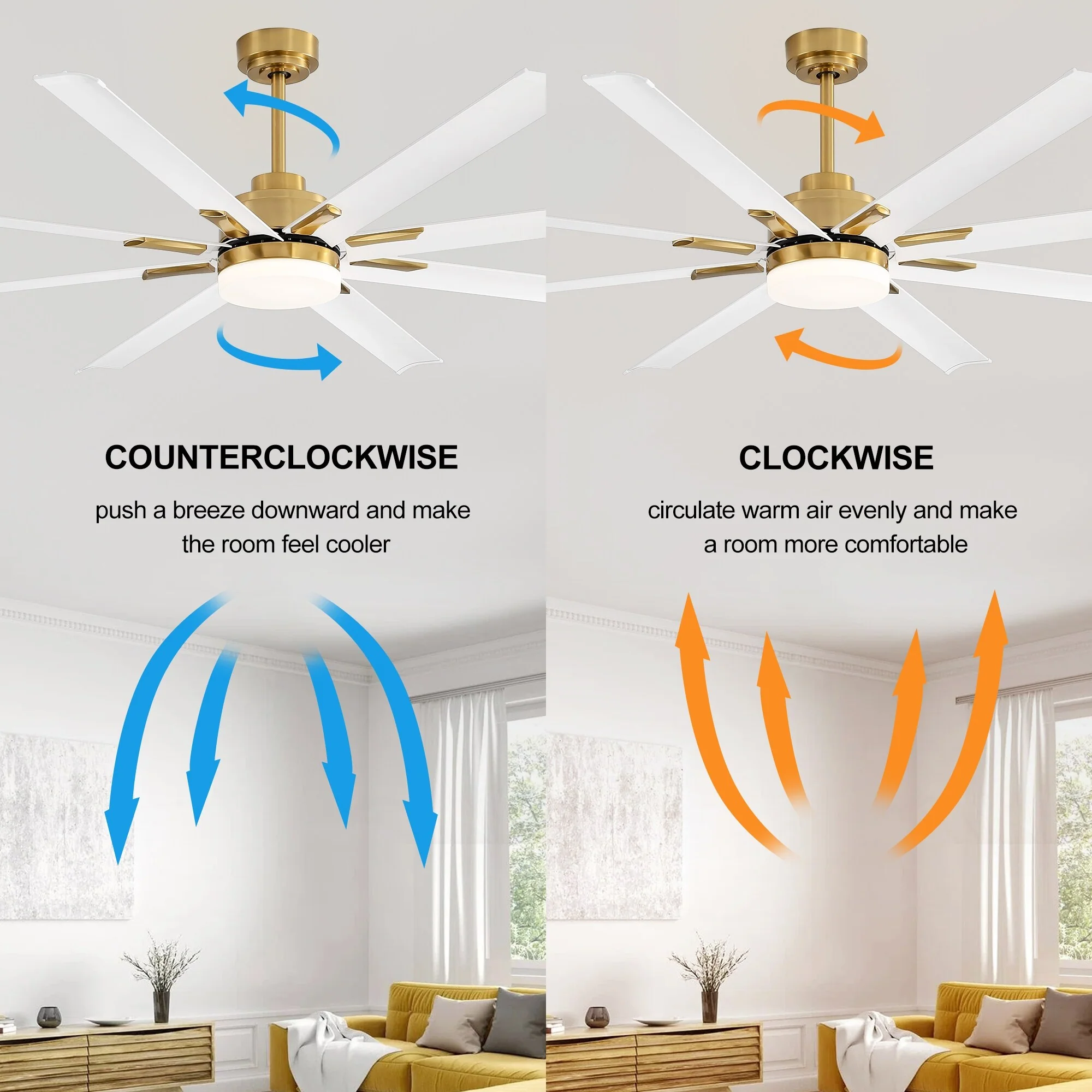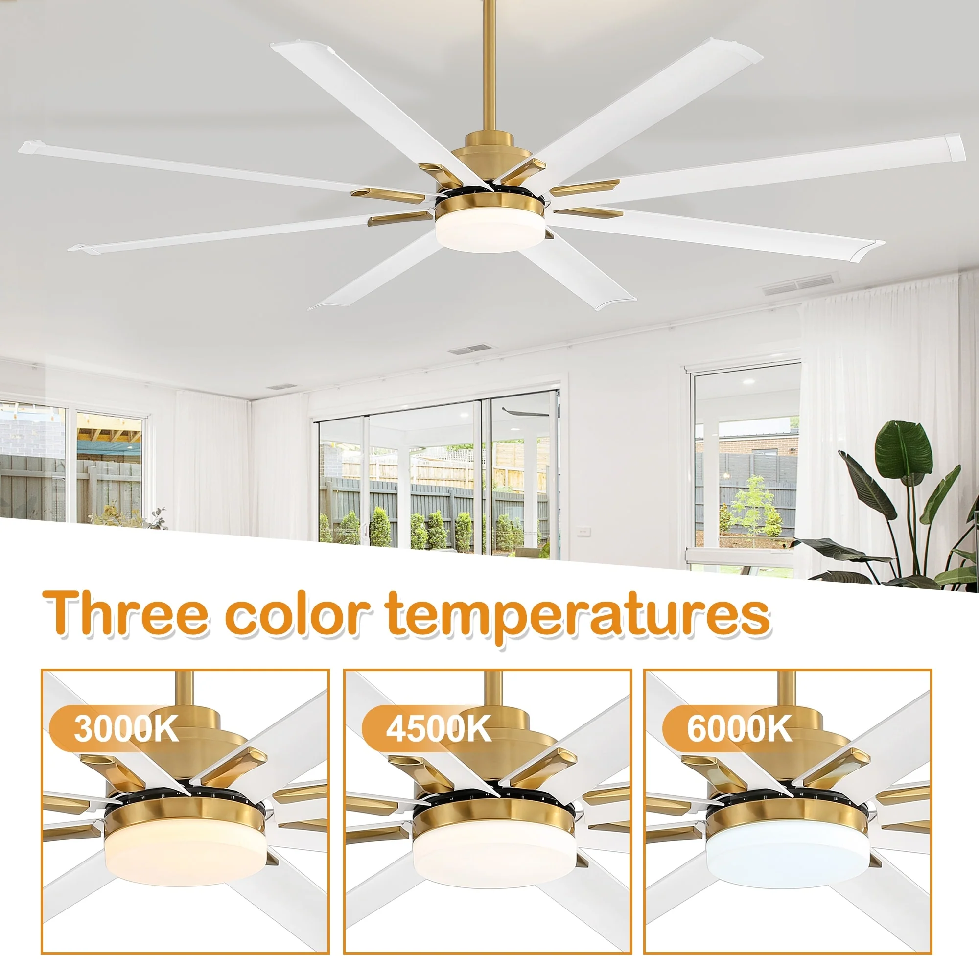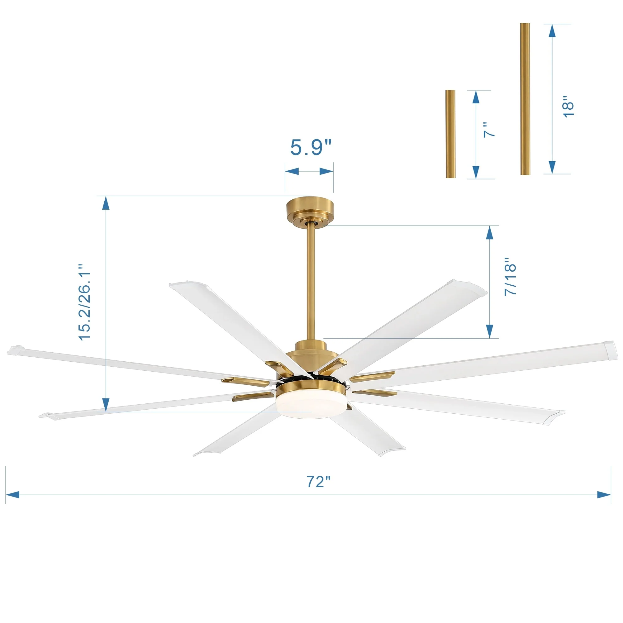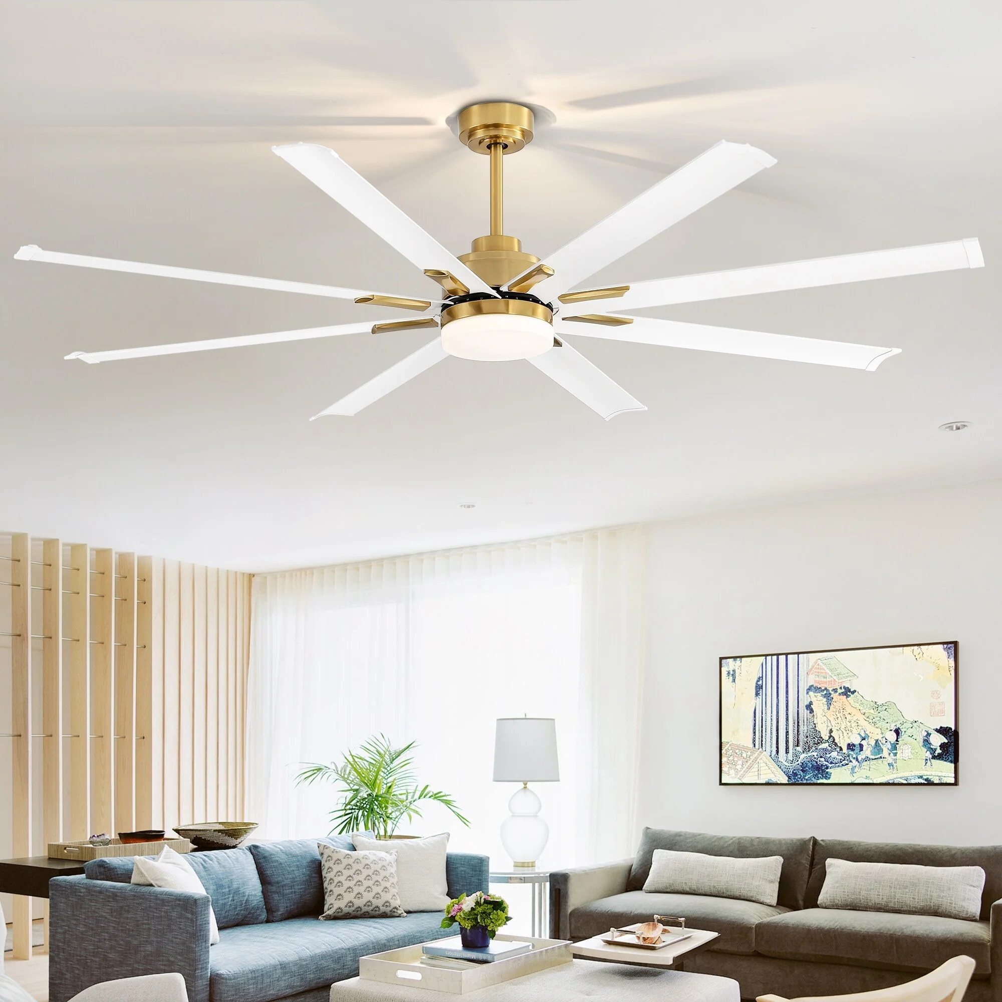 72-in 8 Aluminum Blade Gold Ceiling Fan with LED Light Remote Control