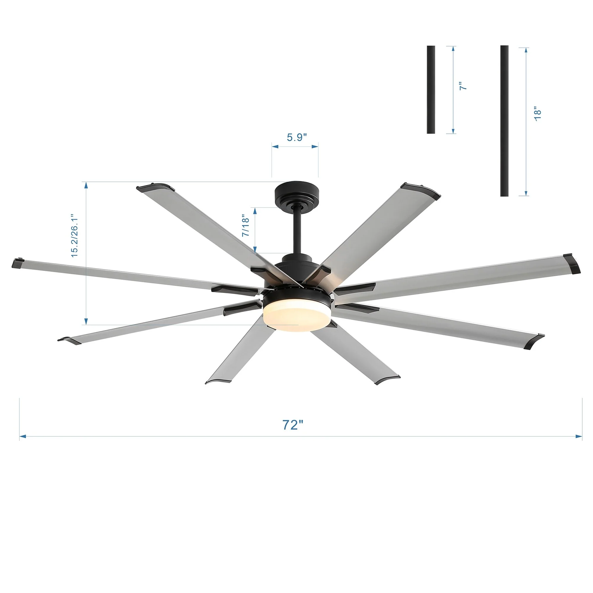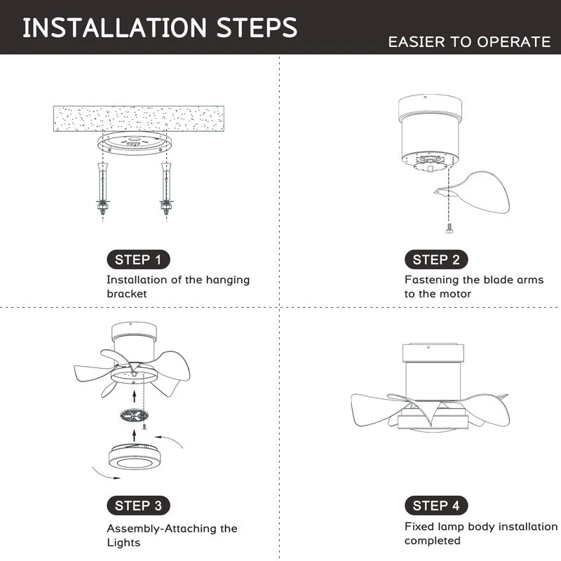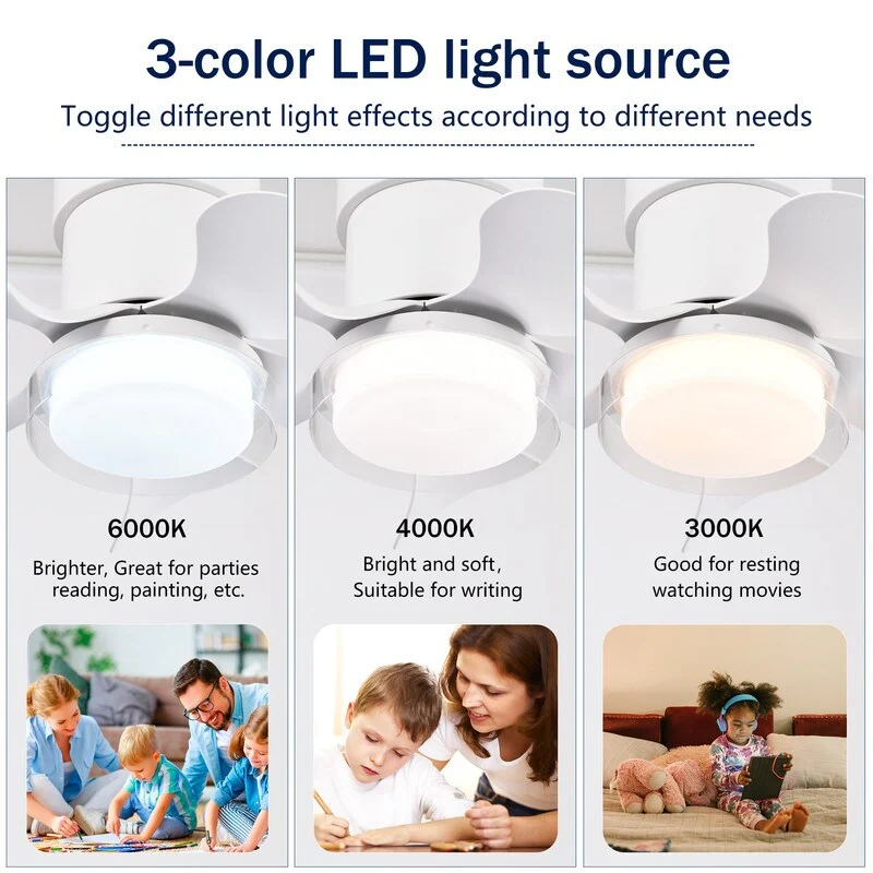 21 inch Ceiling Fan with 3 Color Temperatures Light and Remote Control DC Motor Powerful and low noise Small Space ceiling fan