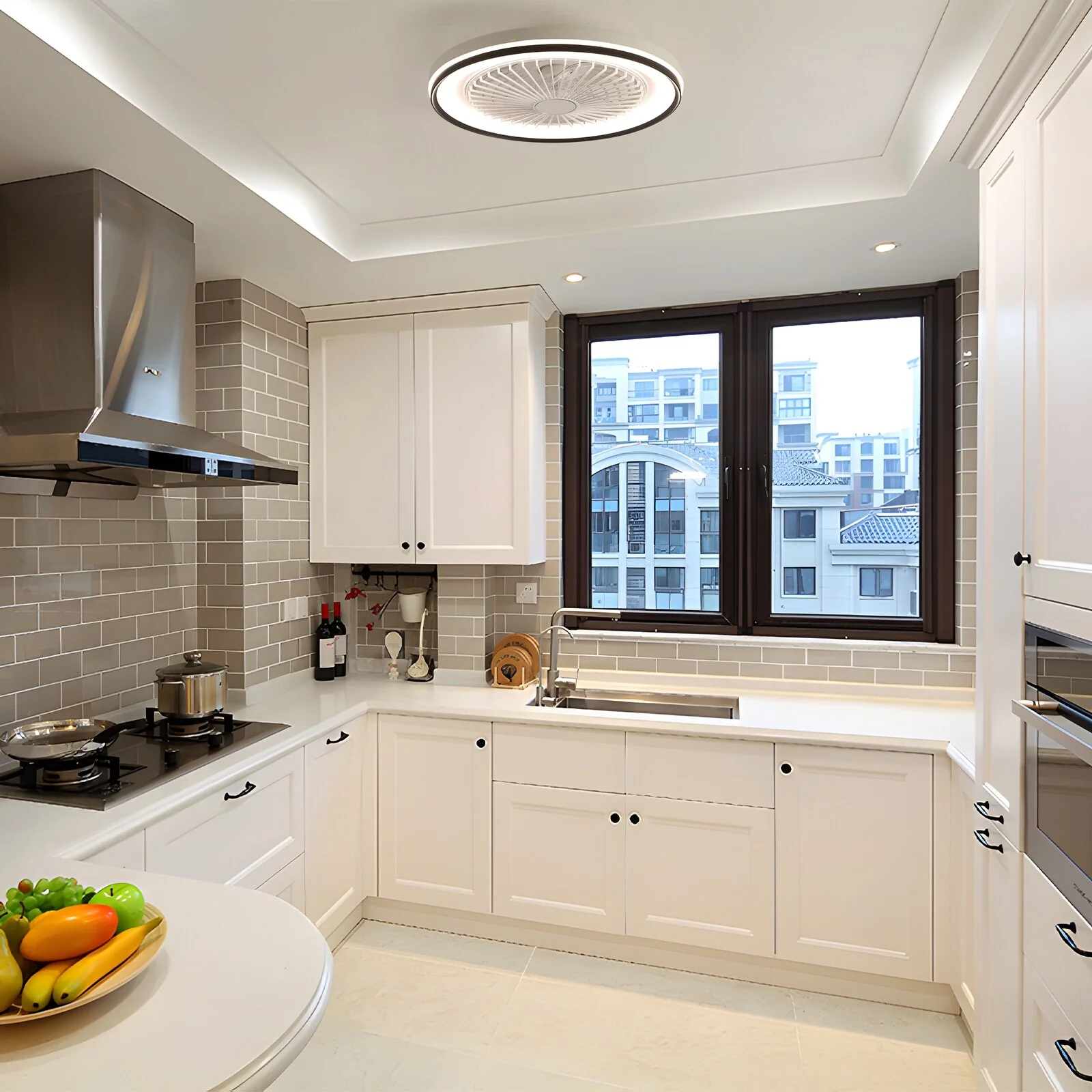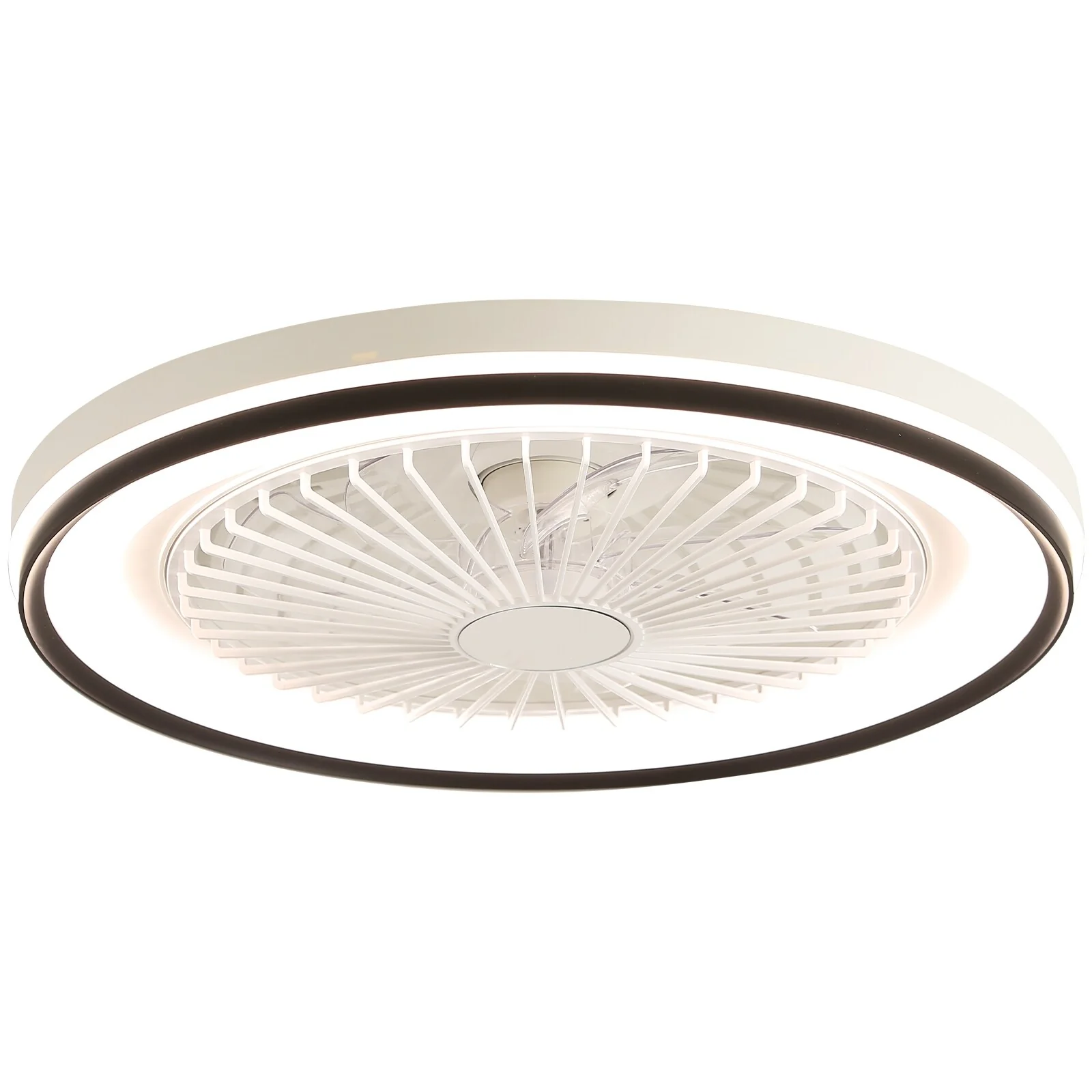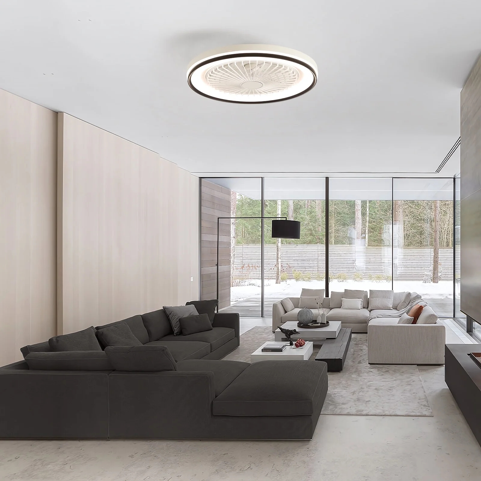 19 Inch RGB Dimmable LED Enclosed Ceiling Fan, Smart Bladeless Flush Mount Ceiling Fan for Bedroom Kids Room, White