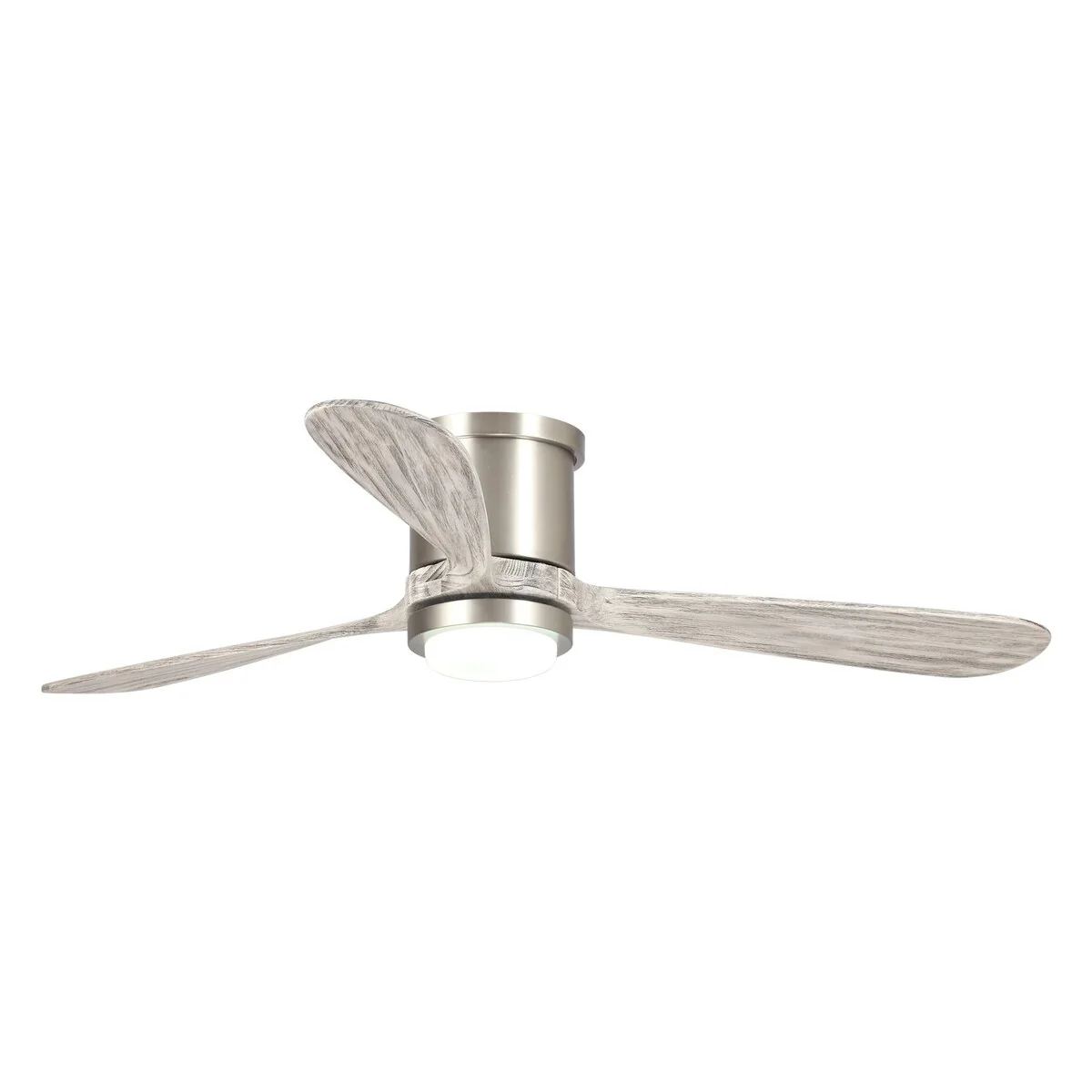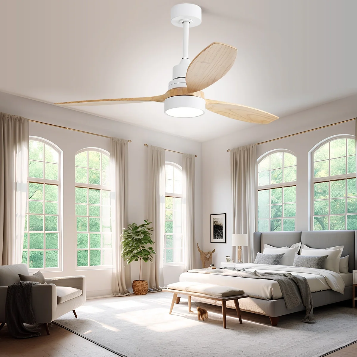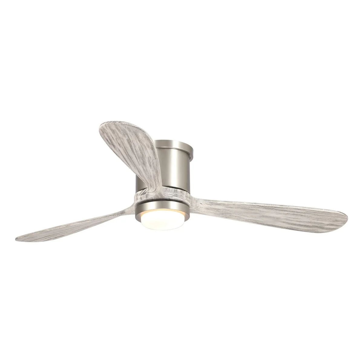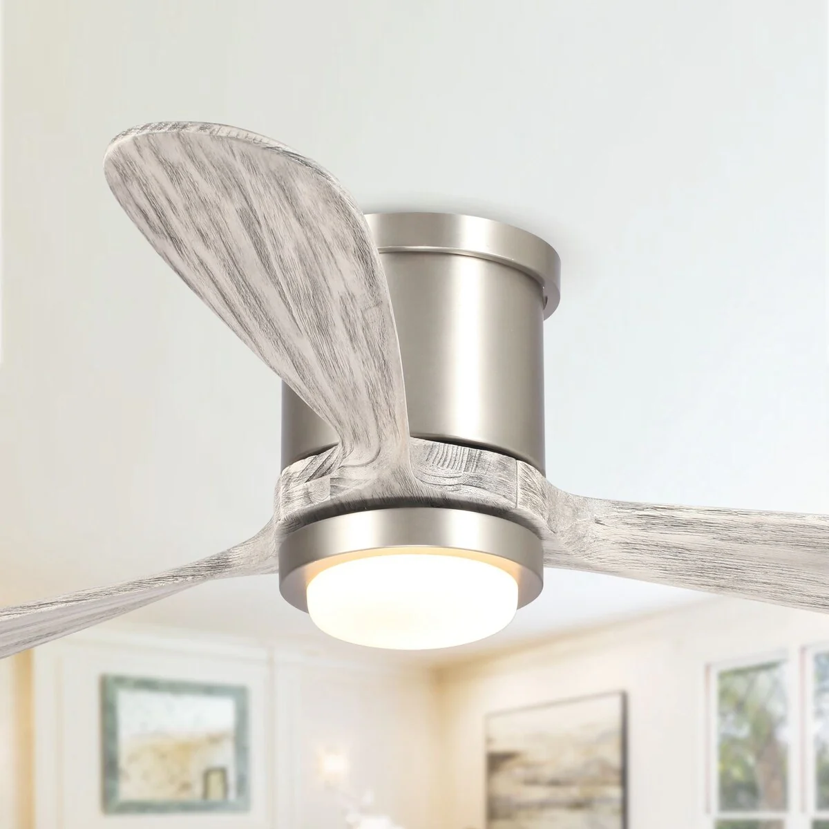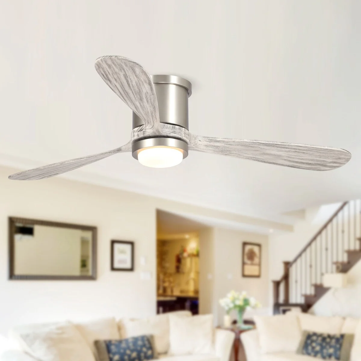 52" Solid Wood 3-Blade Flush Mount LED Ceiling Fan with Light and Remote
