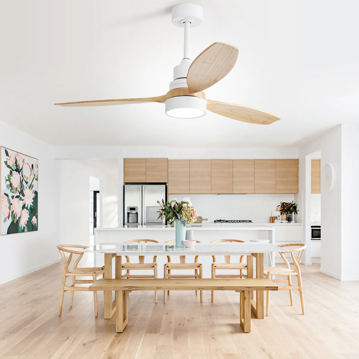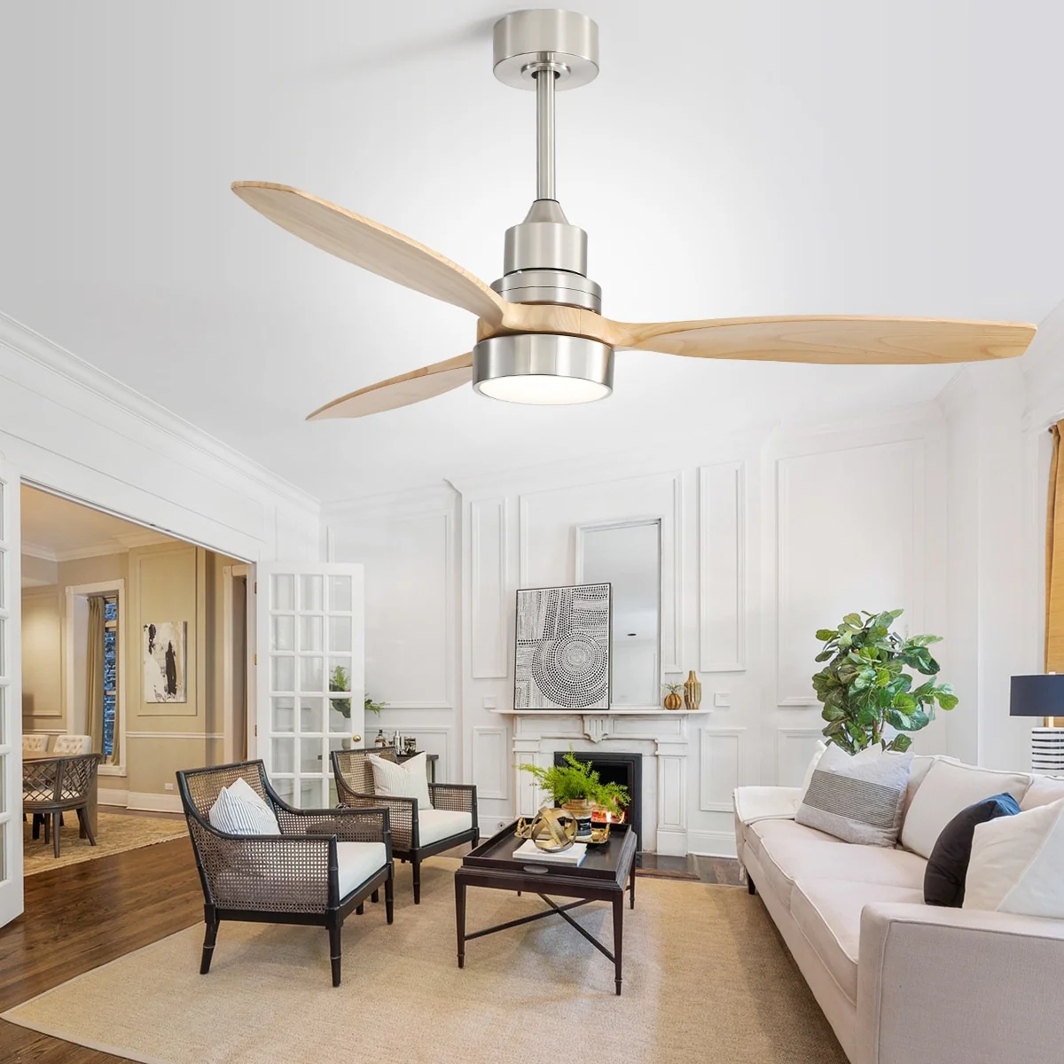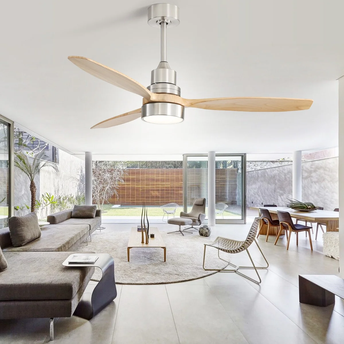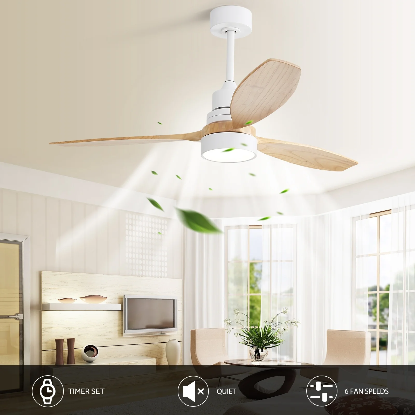 52" Solid Wood 3-Blade Flush Mount LED Ceiling Fan with Light and Remote