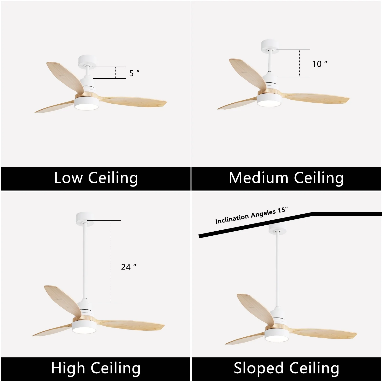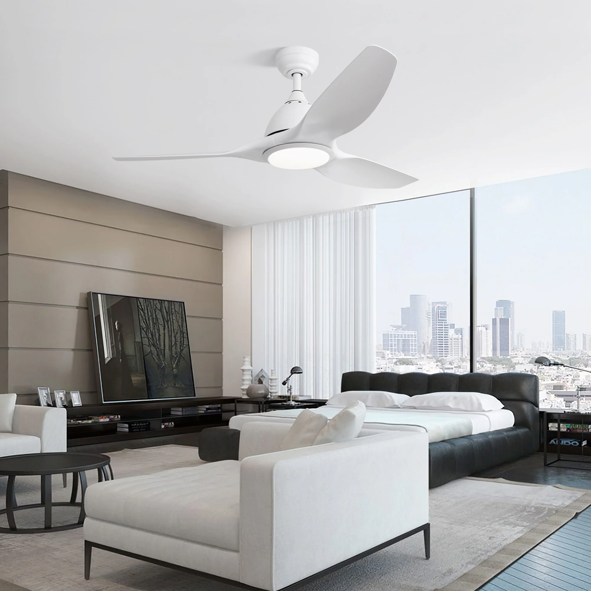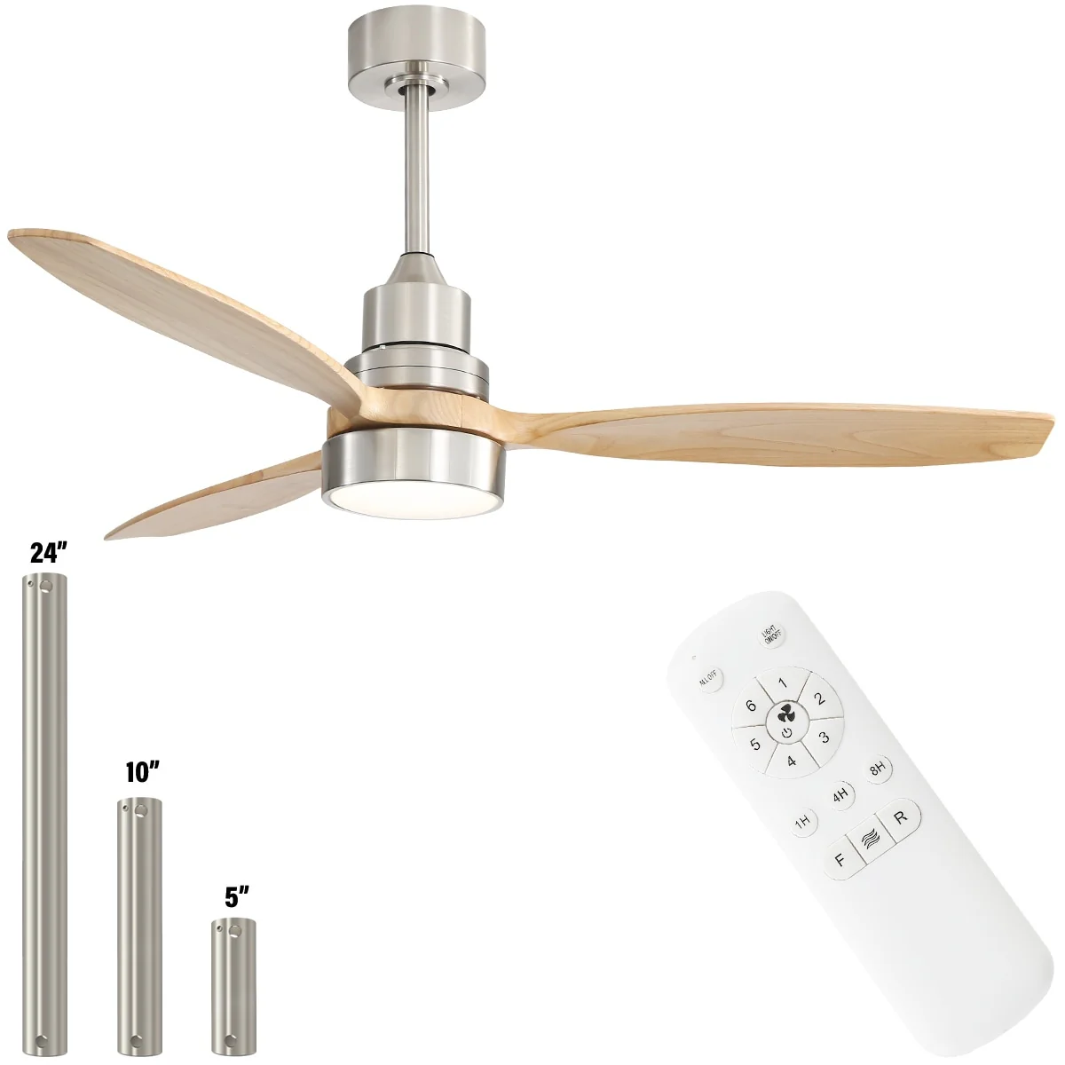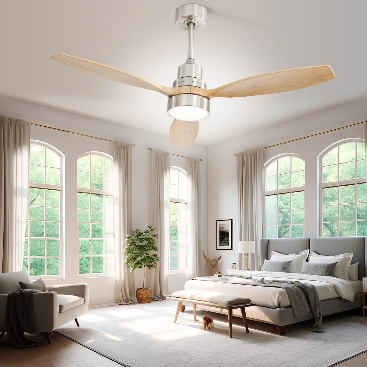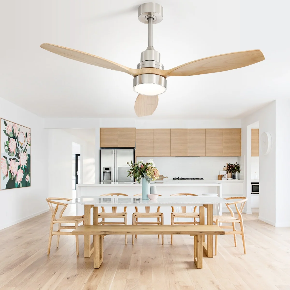 52" Solid Wood 3-Blade Flush Mount LED Ceiling Fan with Light and Remote