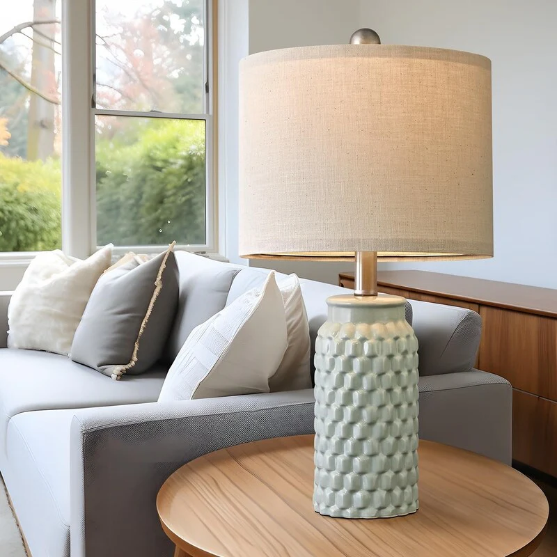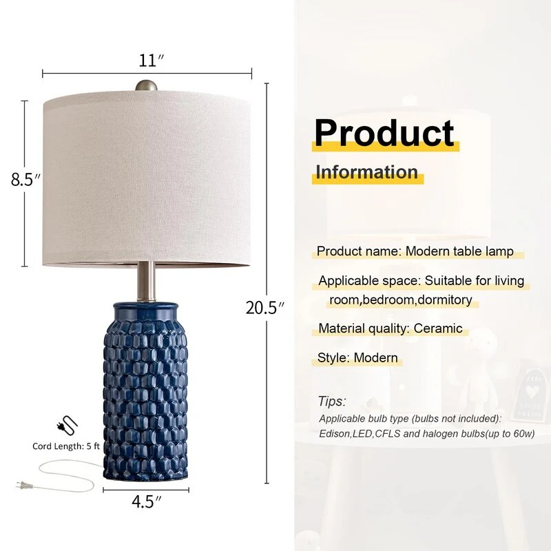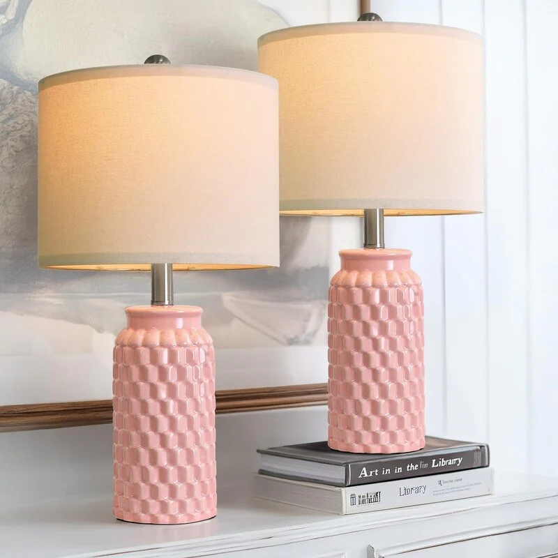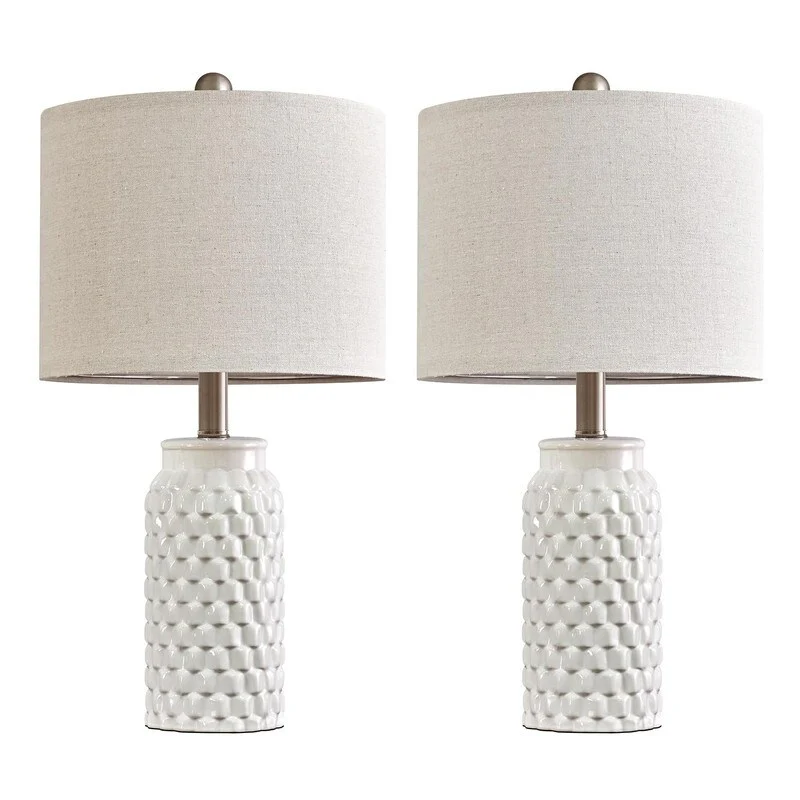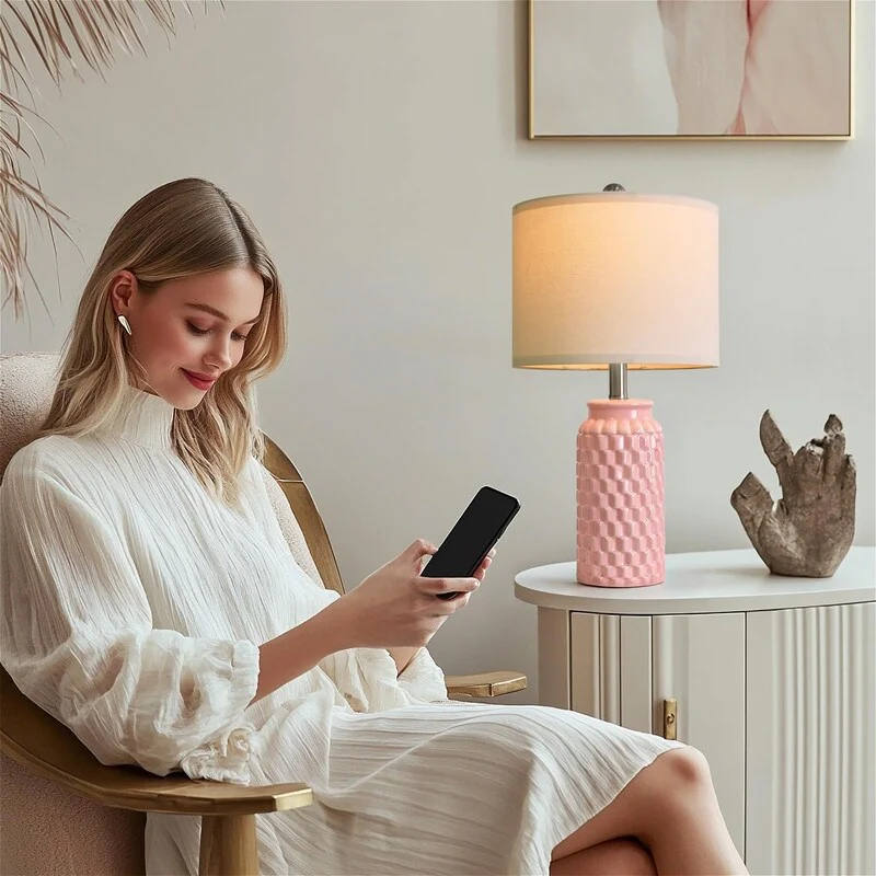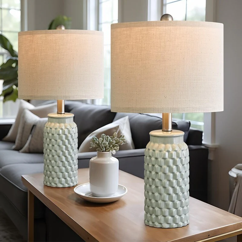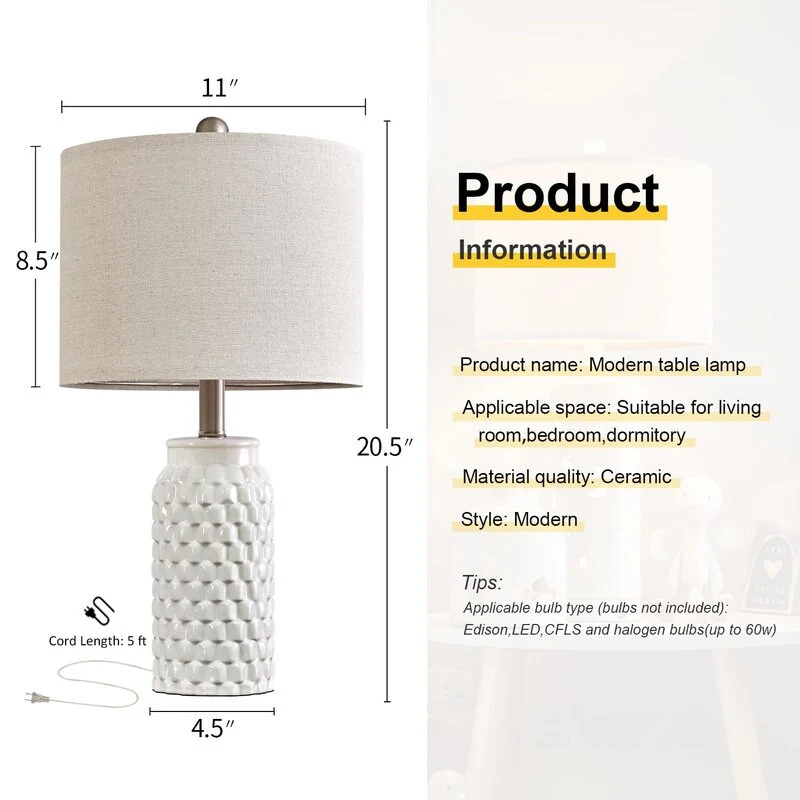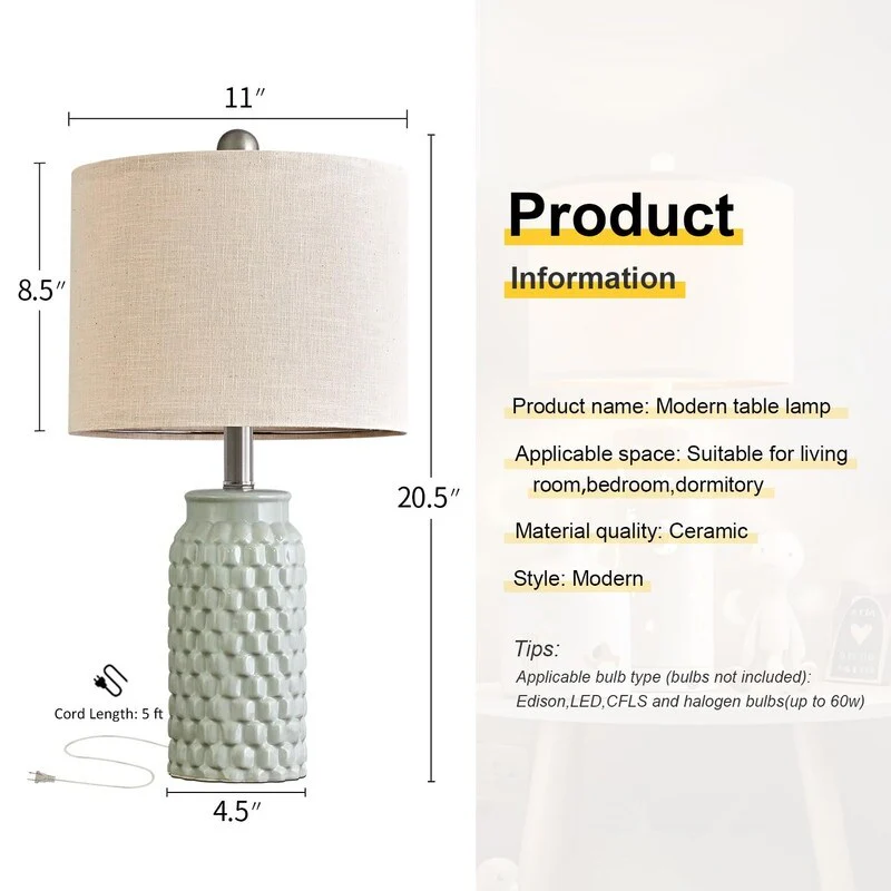 Modern Ceramic Bedside Lamp Set of 2 for Bedroom Decor Farmhouse