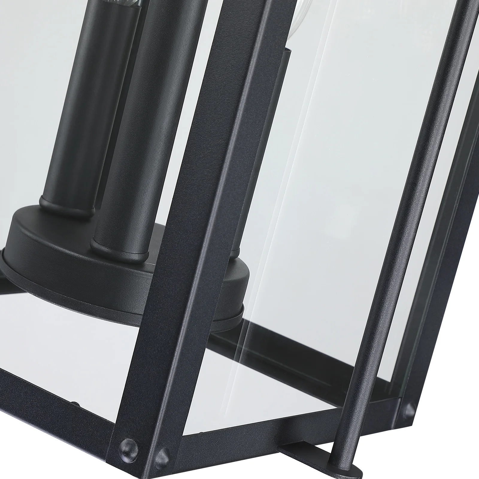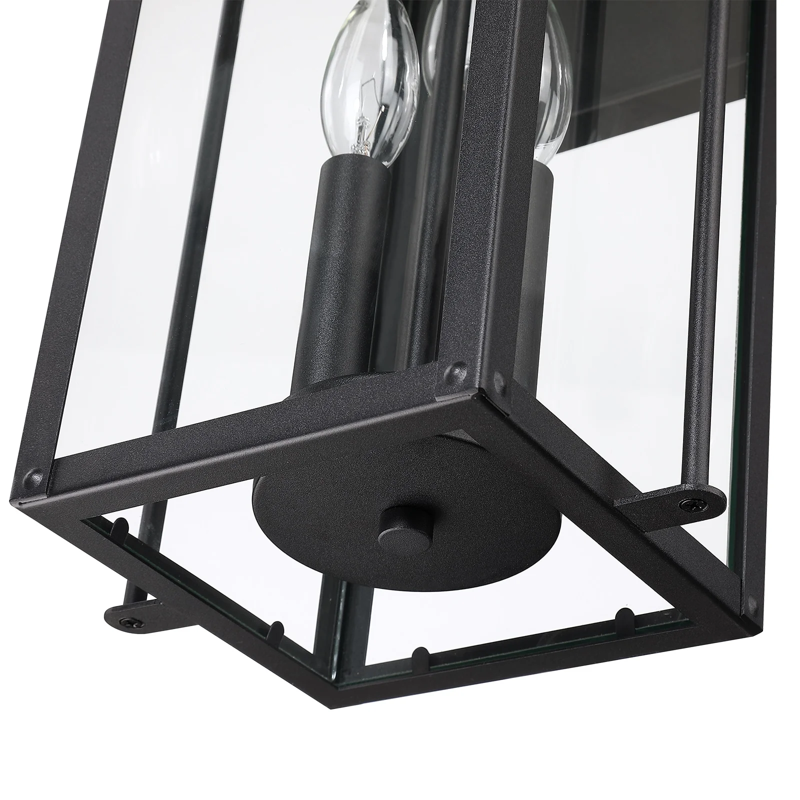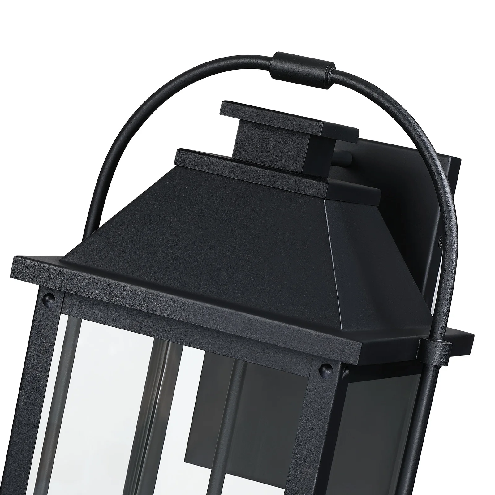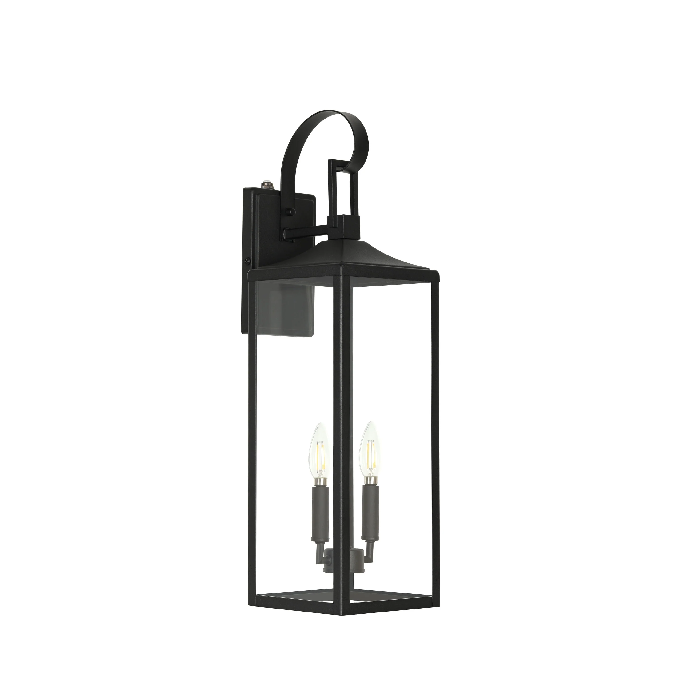 Castle 2-Light 25 in. Matte Black Outdoor Wall Lantern Sconce with Dusk to Dawn Sensor