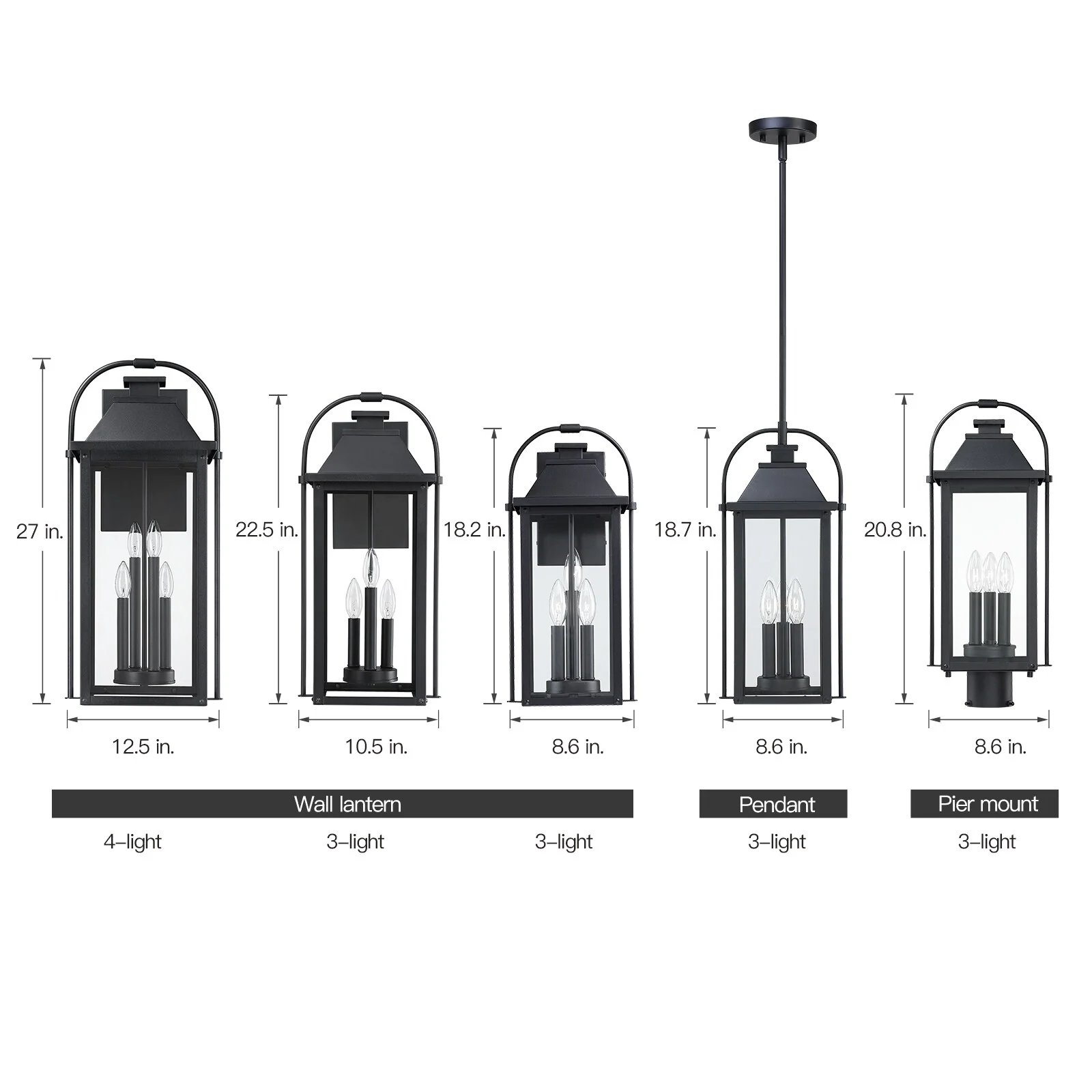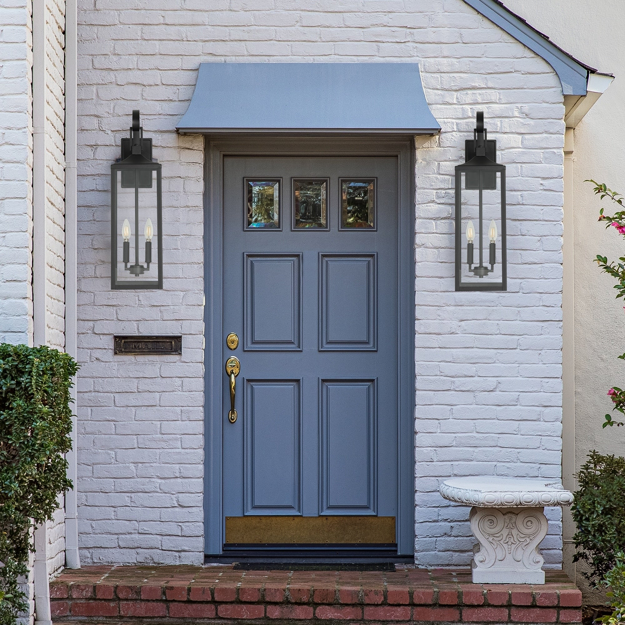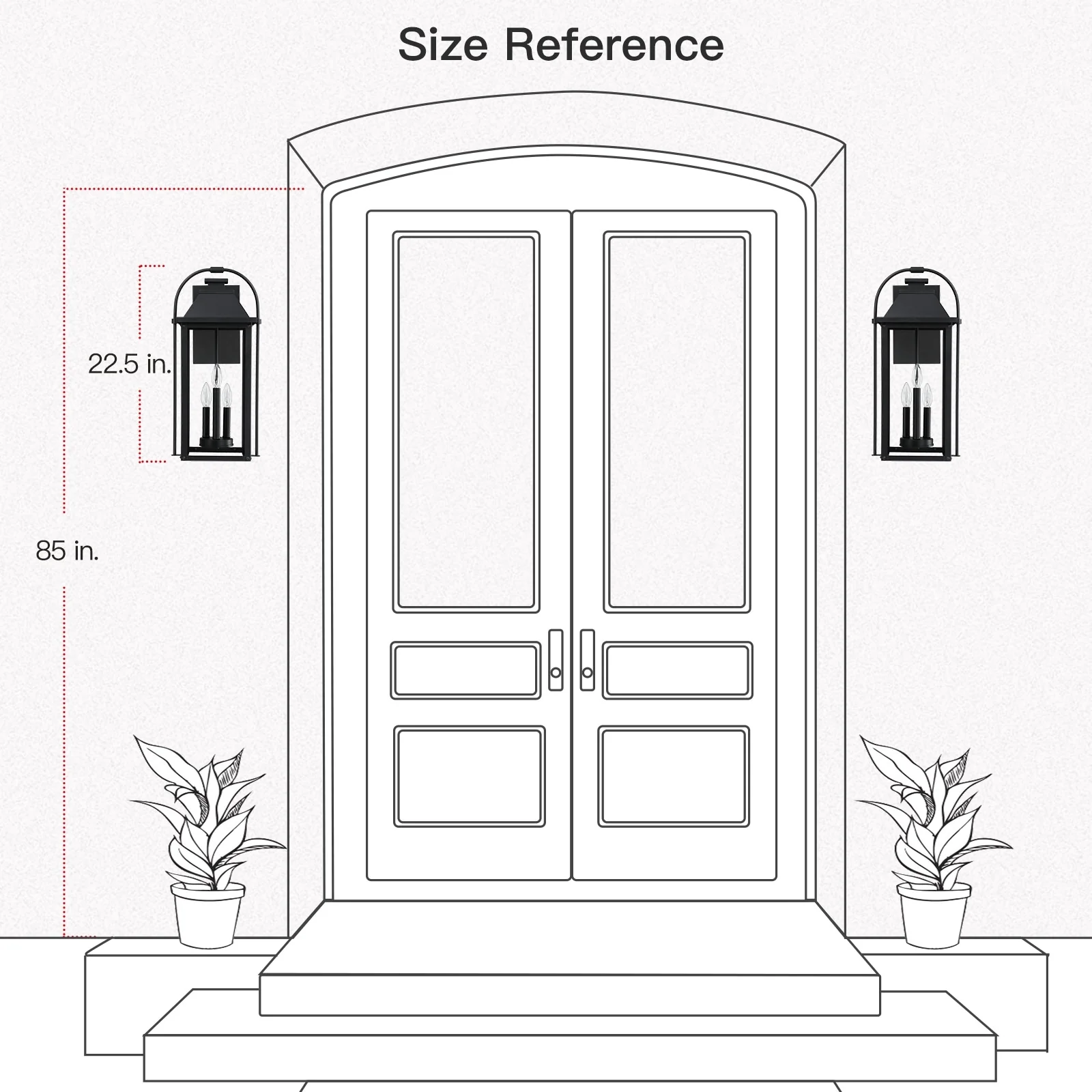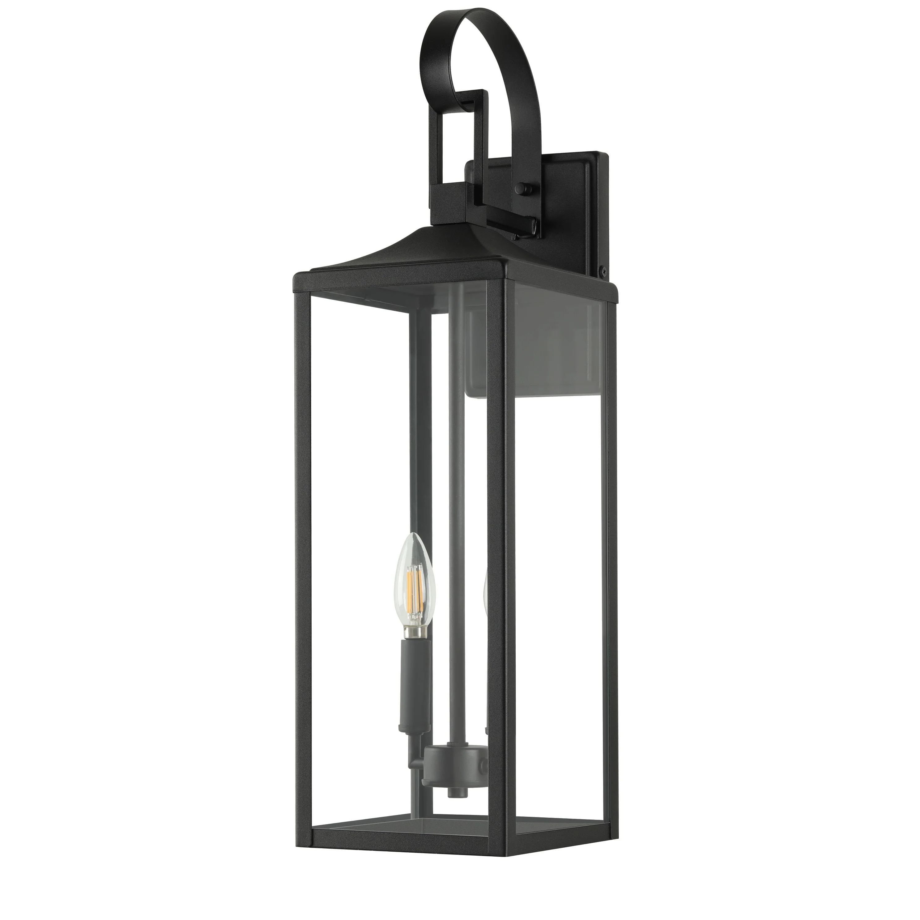 Castle 2-Light 25 in. Matte Black Outdoor Wall Lantern Sconce with Dusk to Dawn Sensor