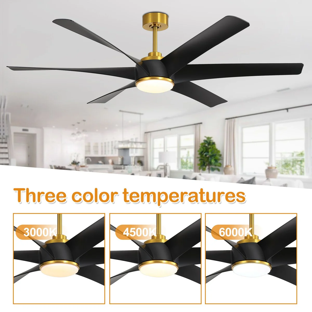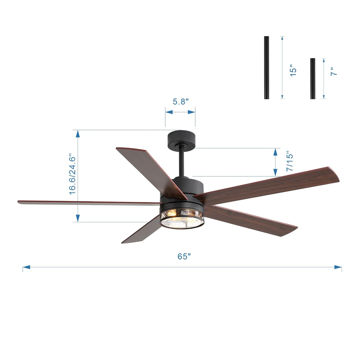 65 in. Indoor Black Large Ceiling Fan with Light Kit and Remote Control Included