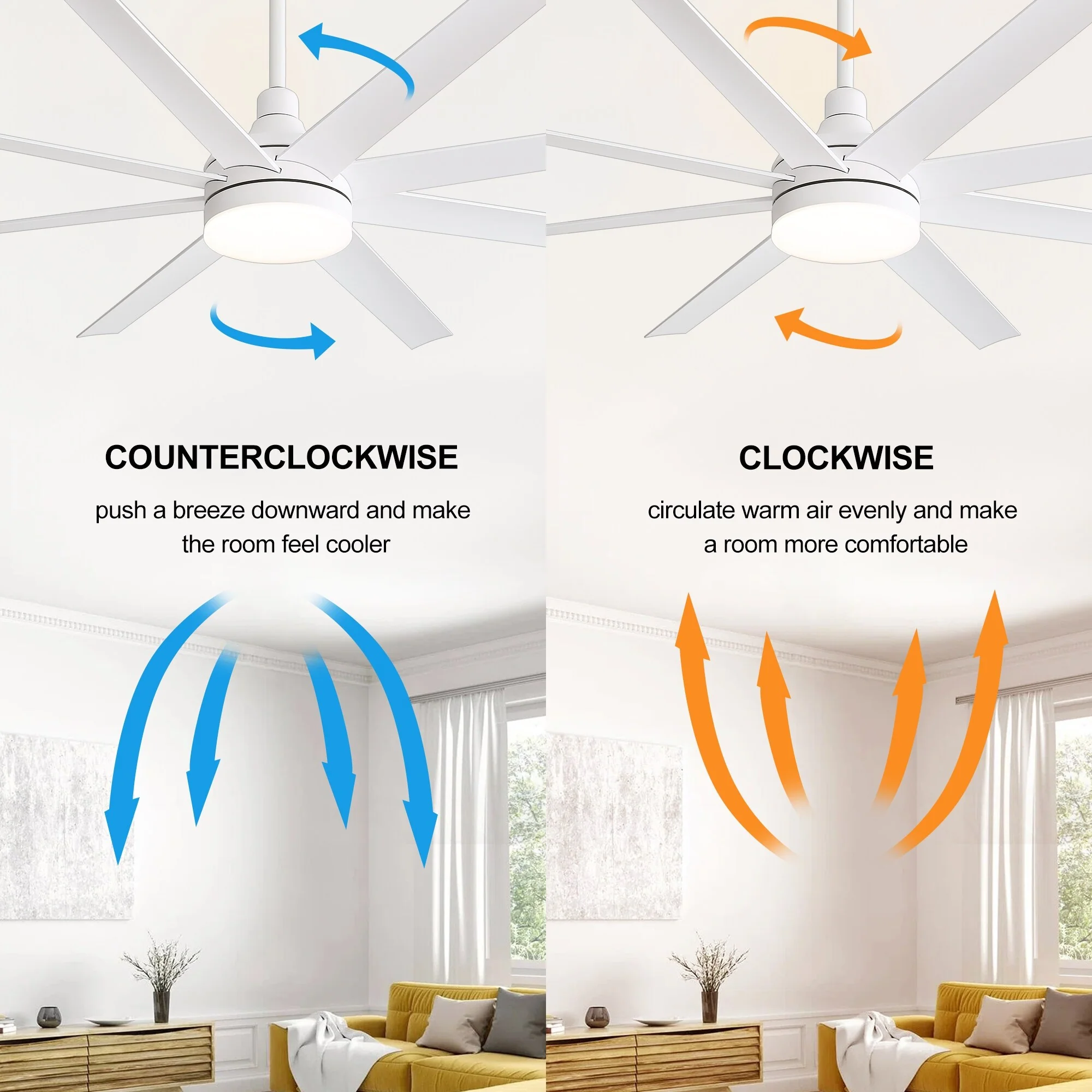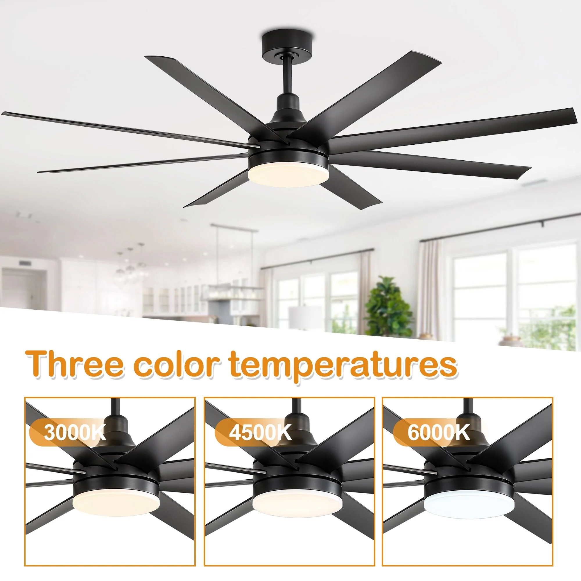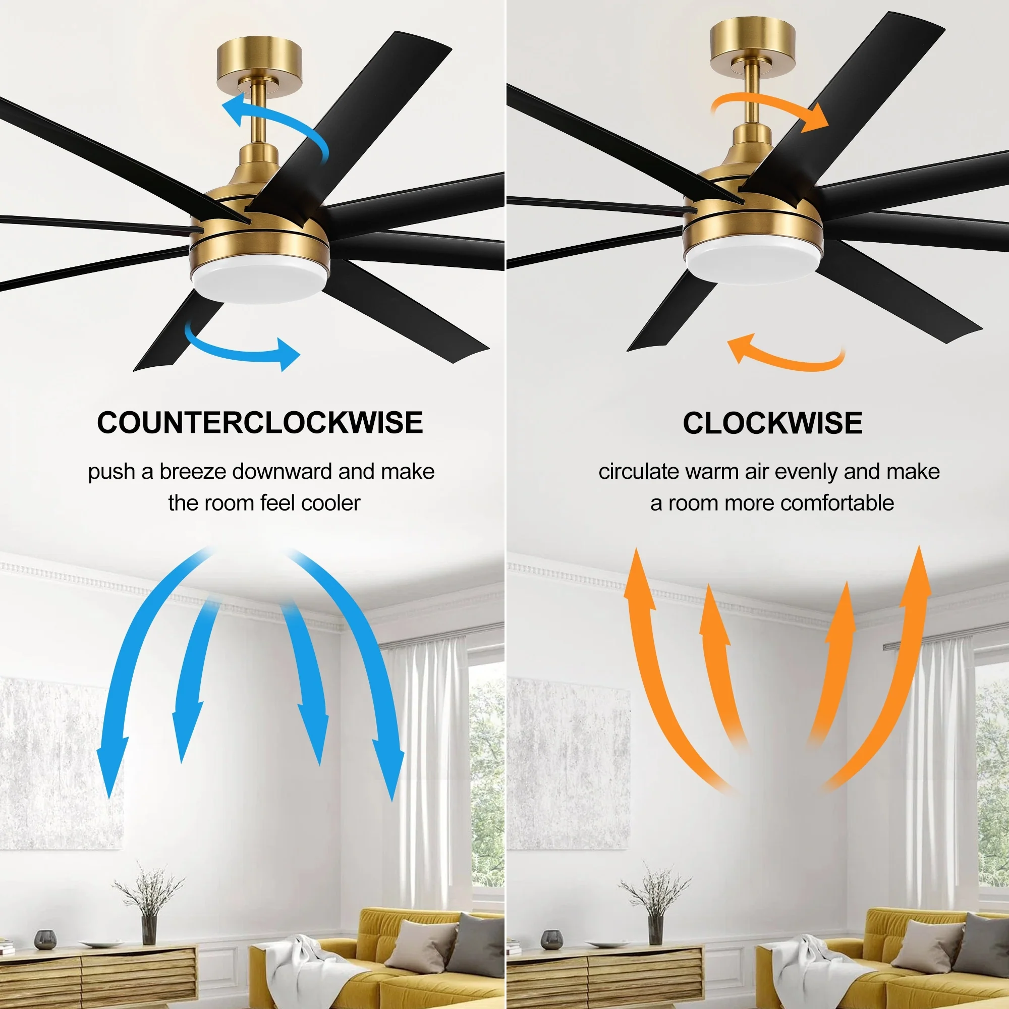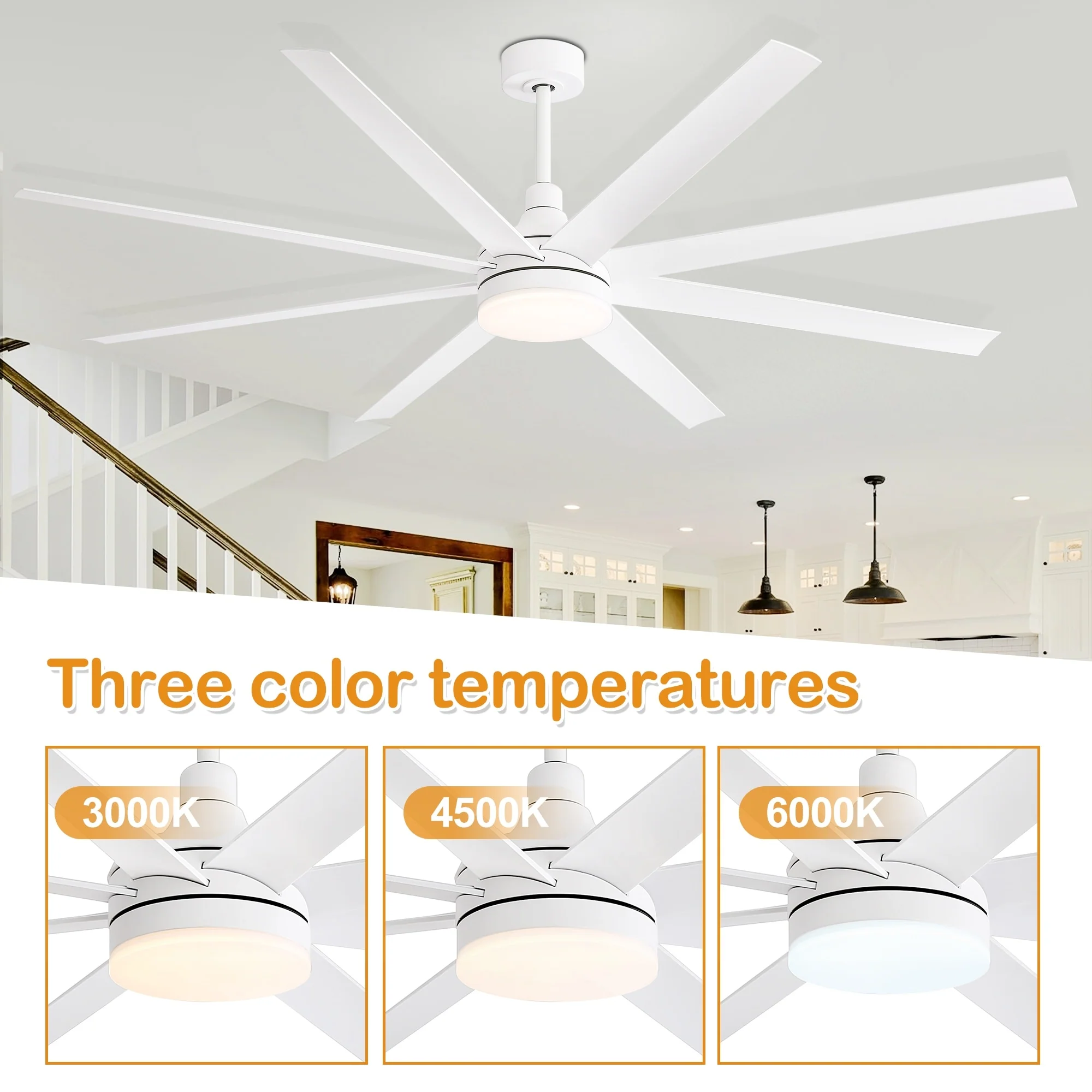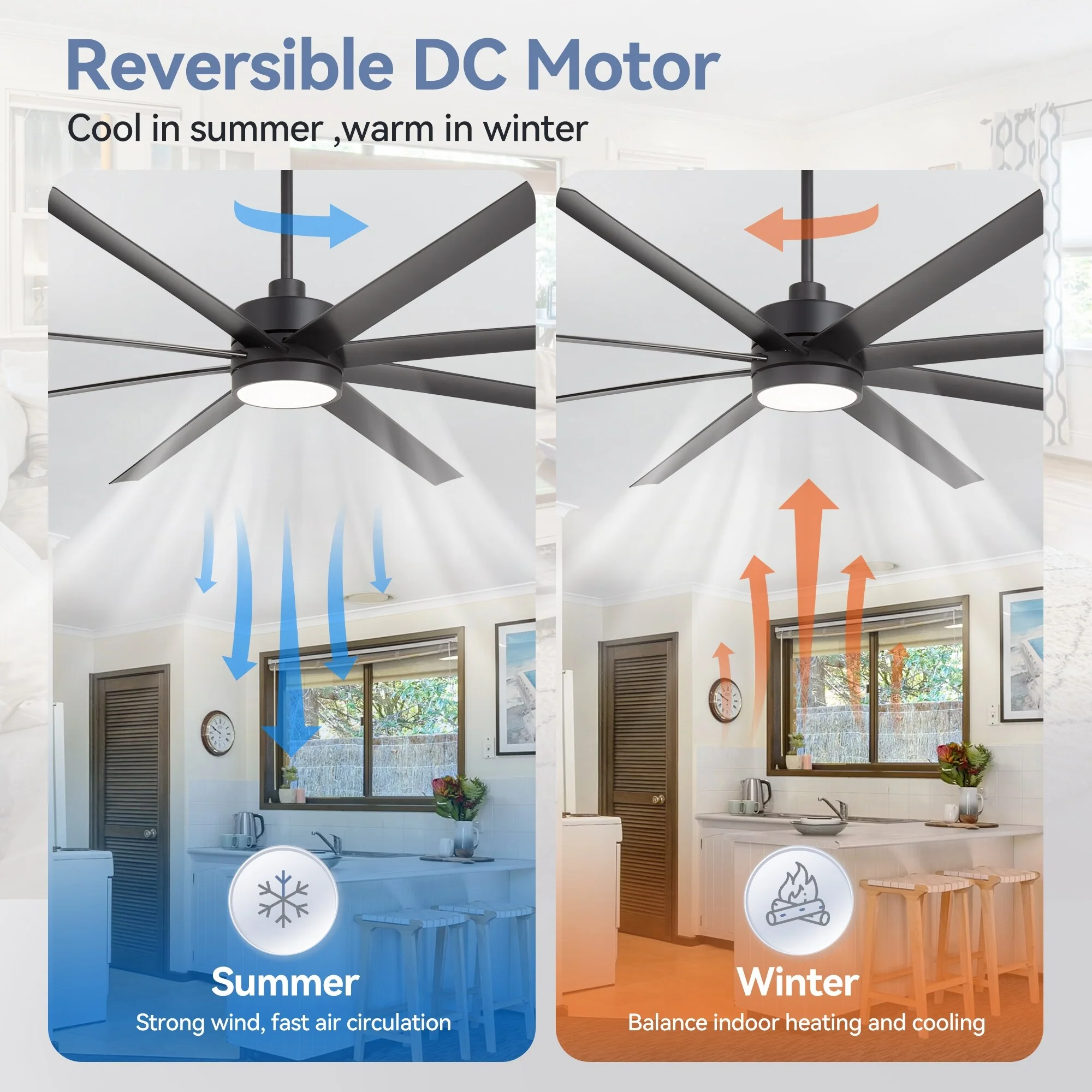 65/72/84 Inches Large LED Ceiling Fan with Light Remote(8-Blade)