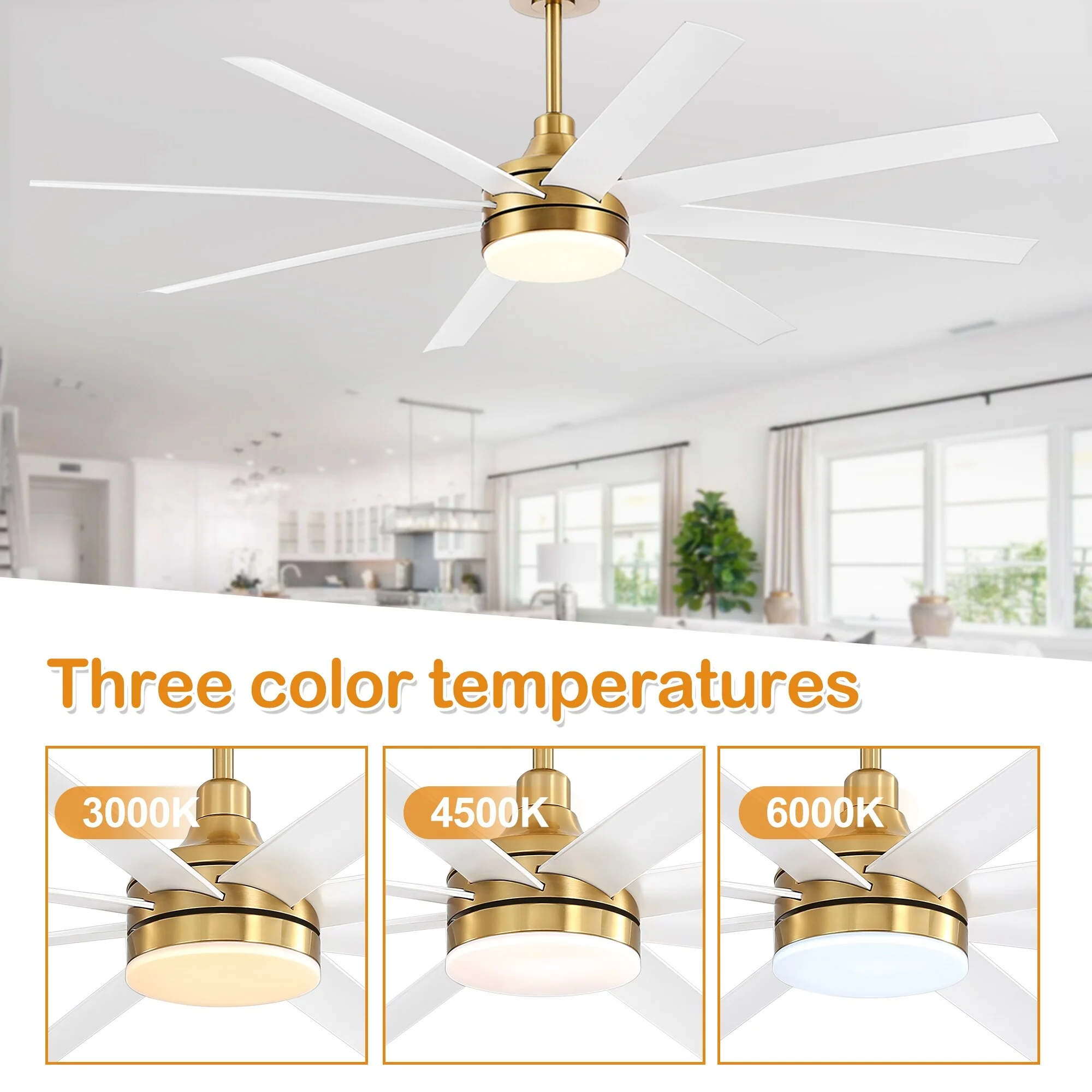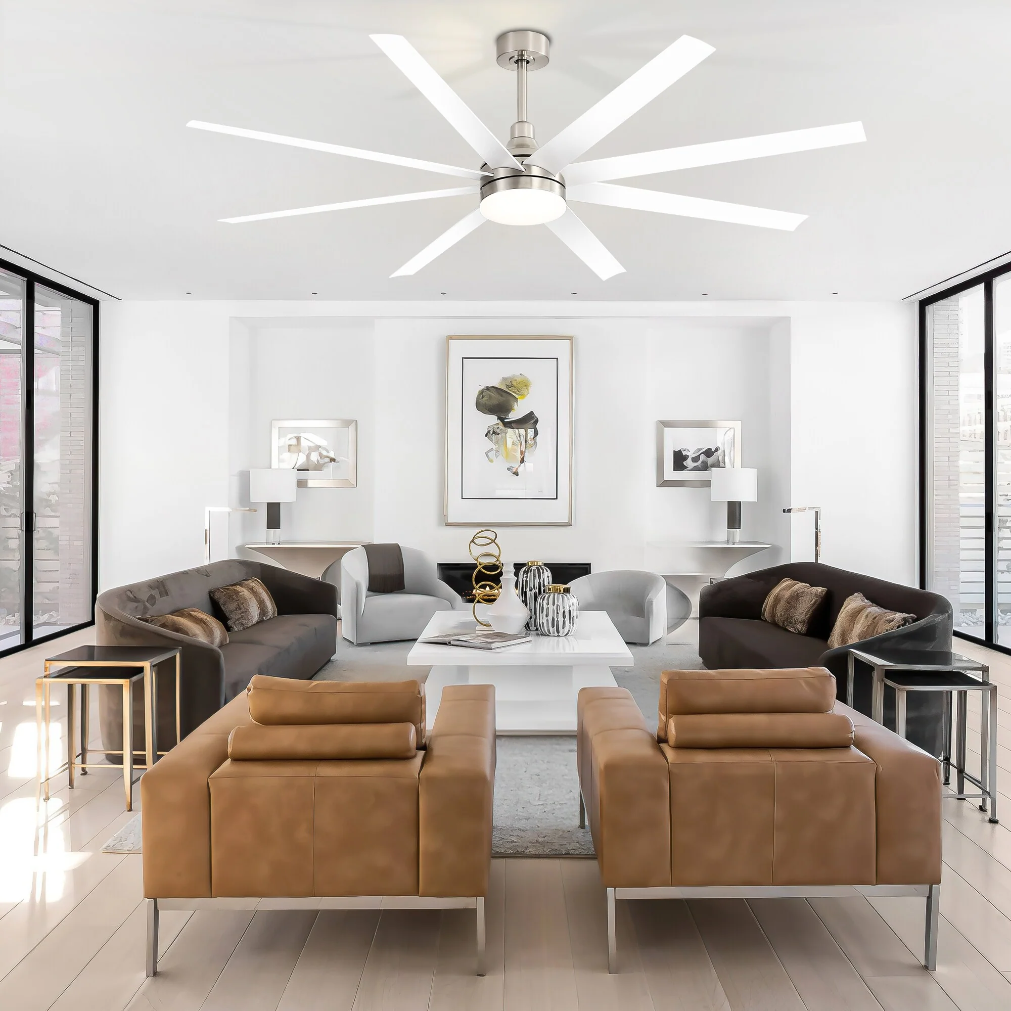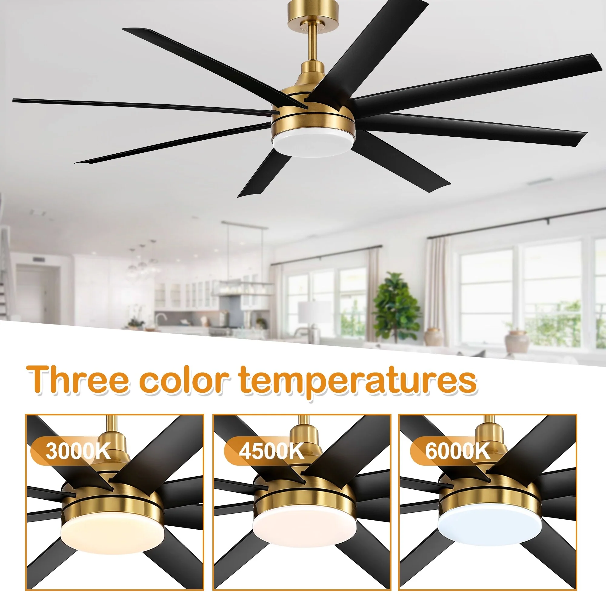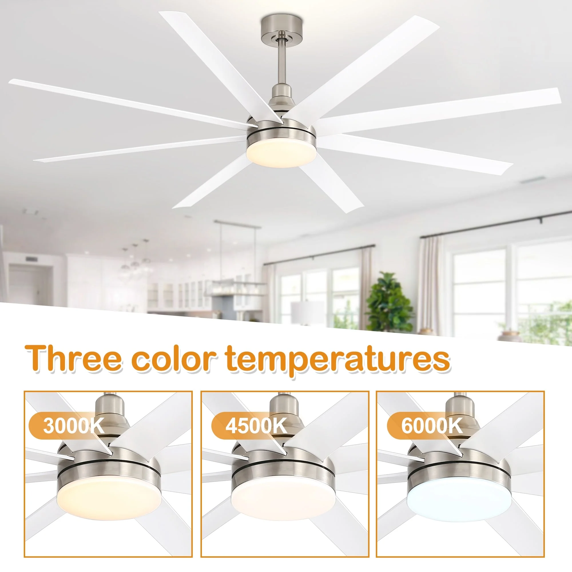 65/72/84 Inches Large LED Ceiling Fan with Light Remote(8-Blade)