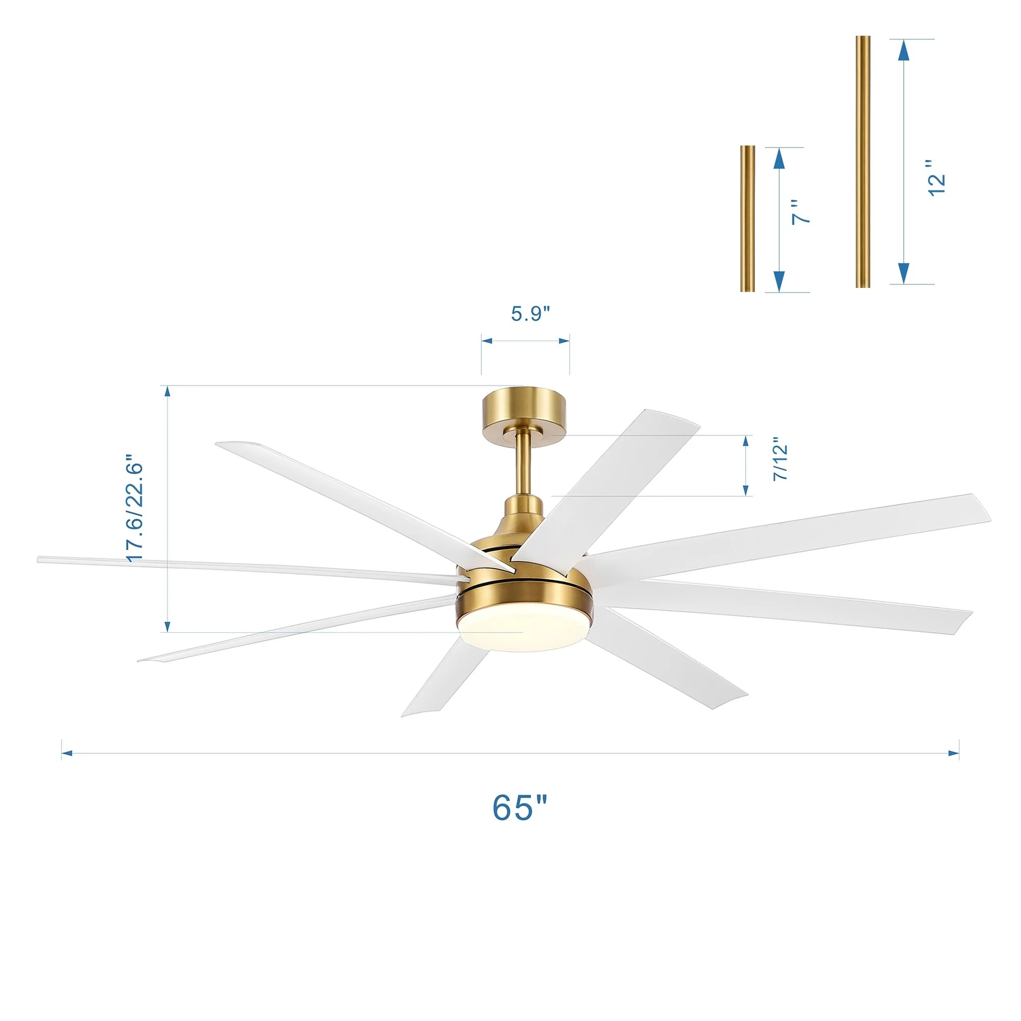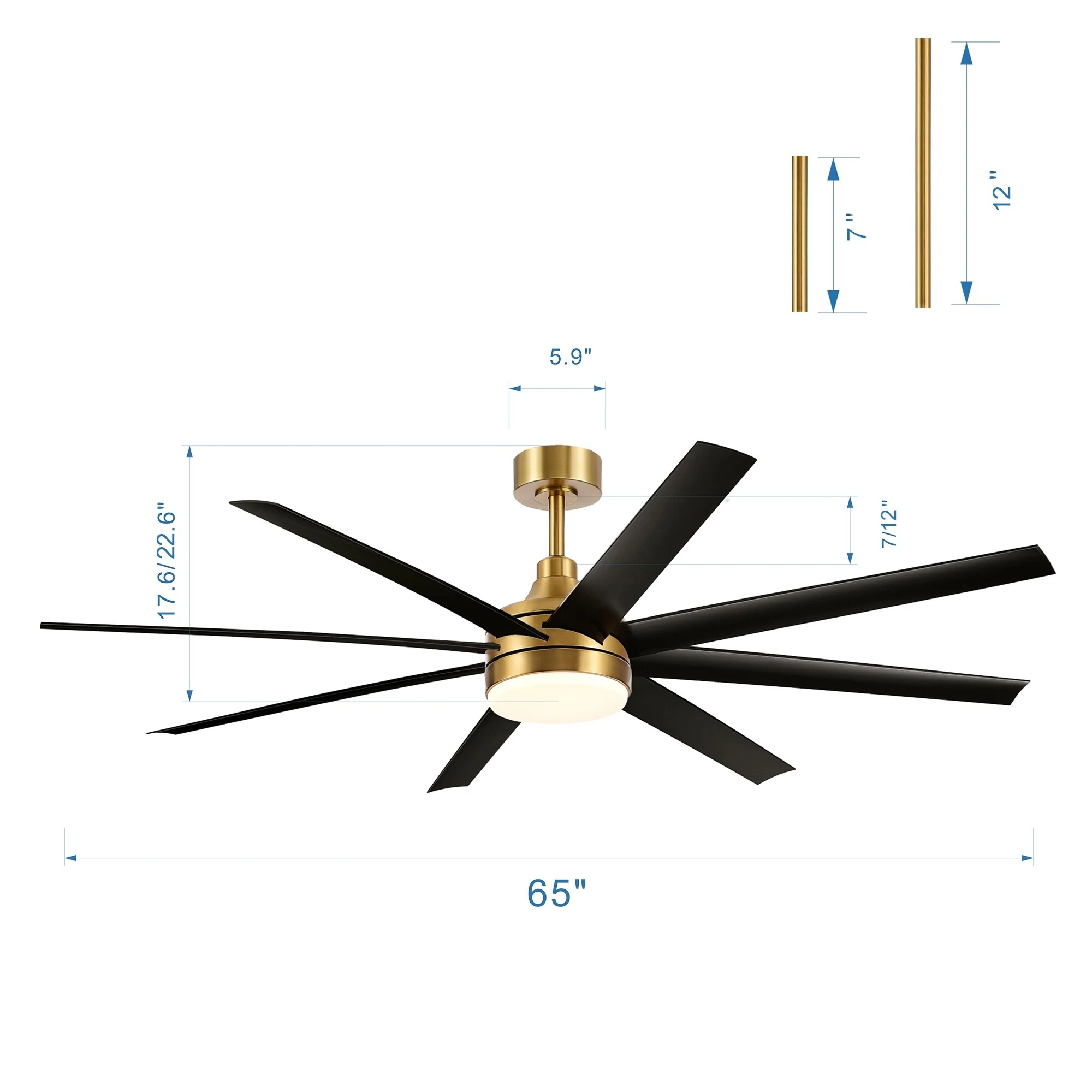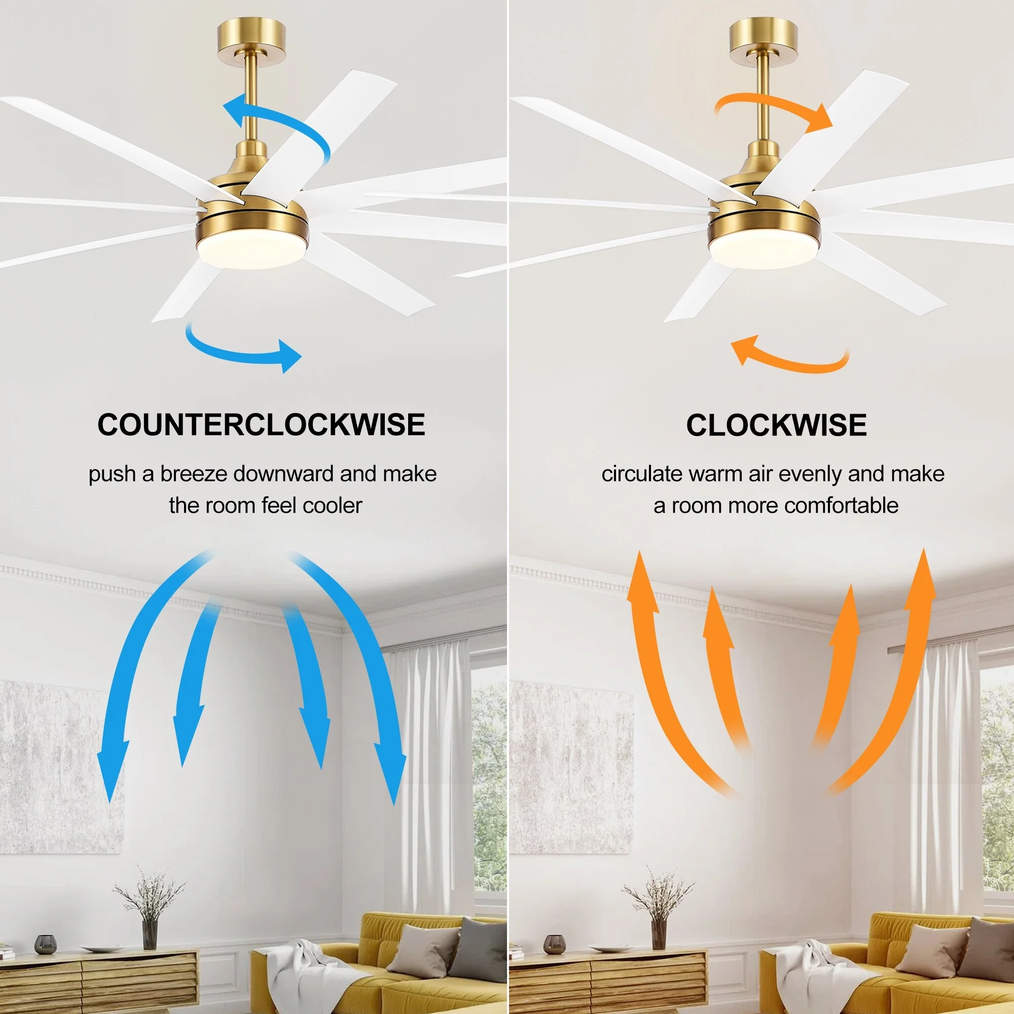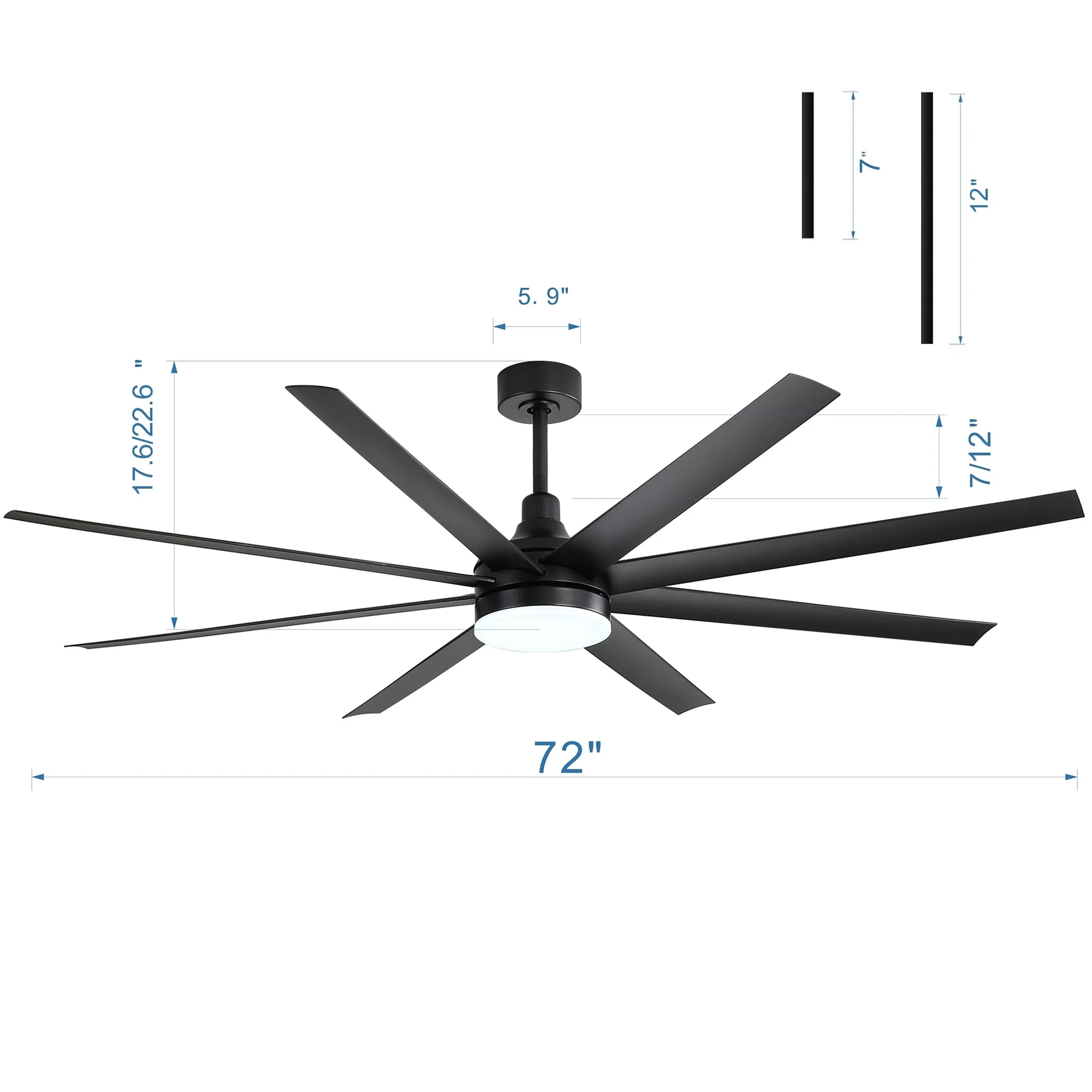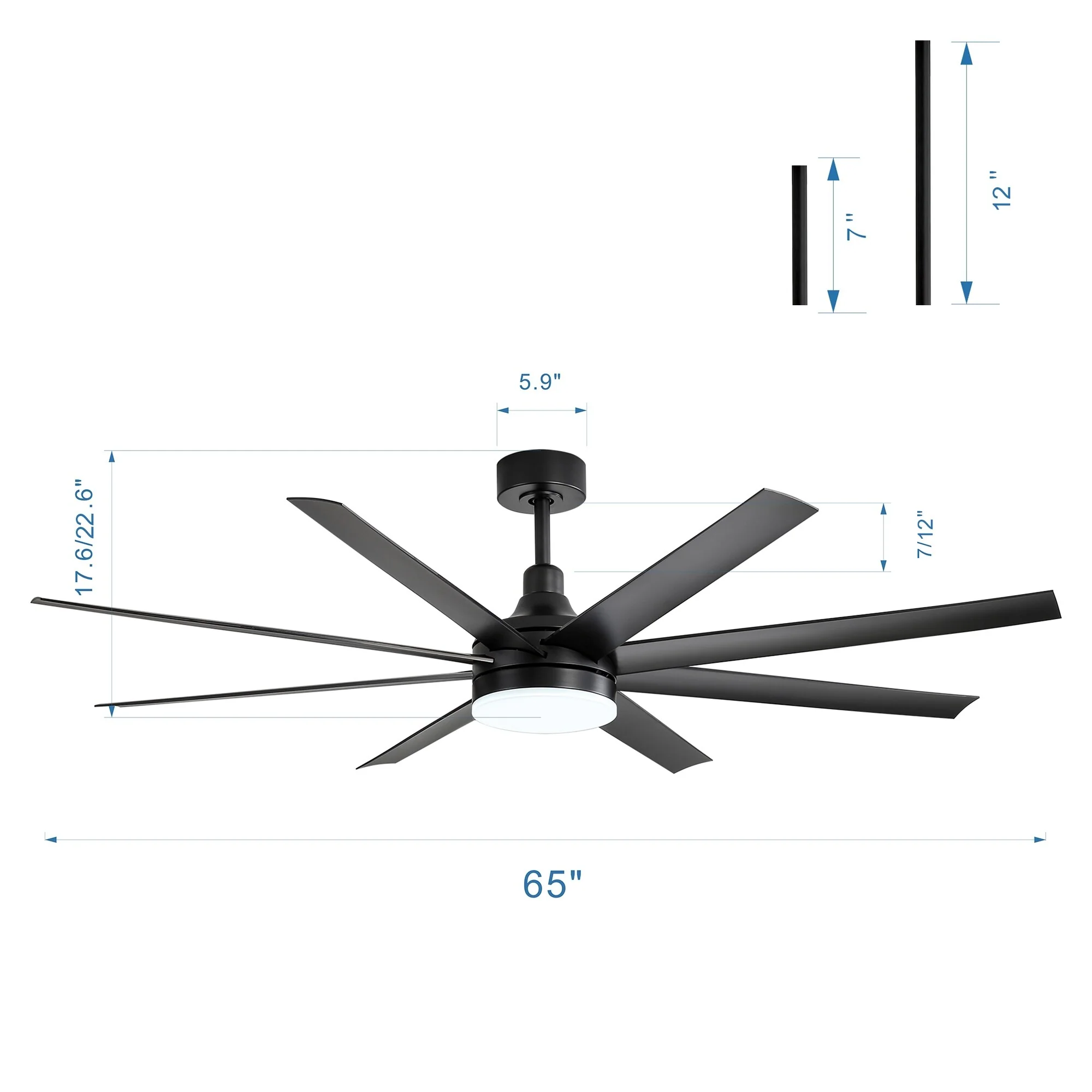 65/72/84 Inches Large LED Ceiling Fan with Light Remote(8-Blade)