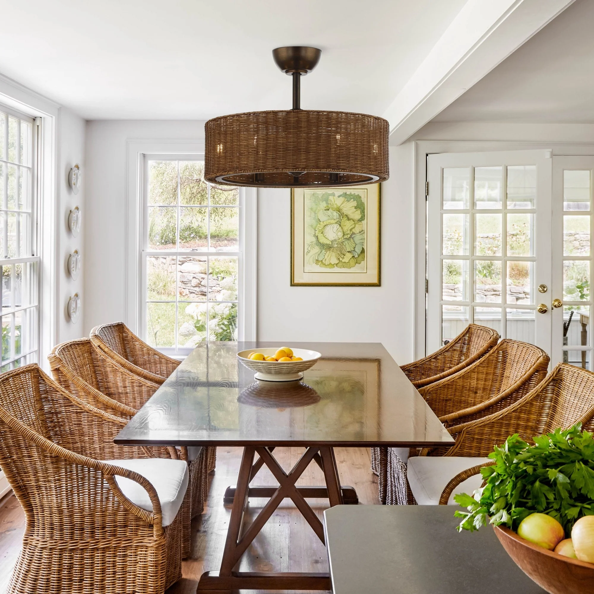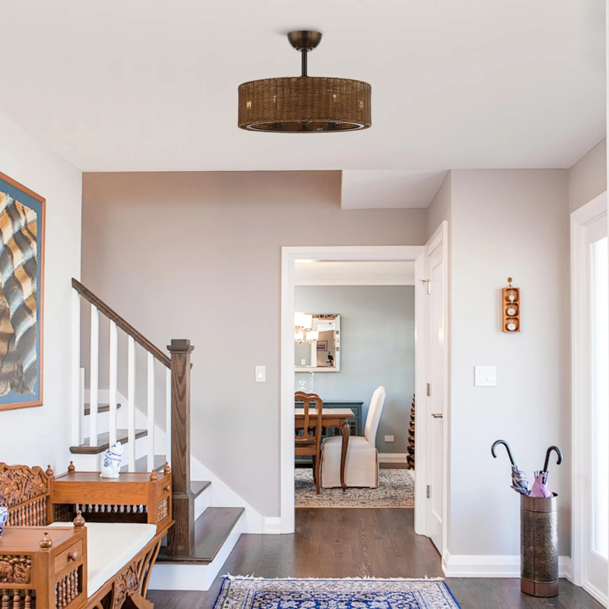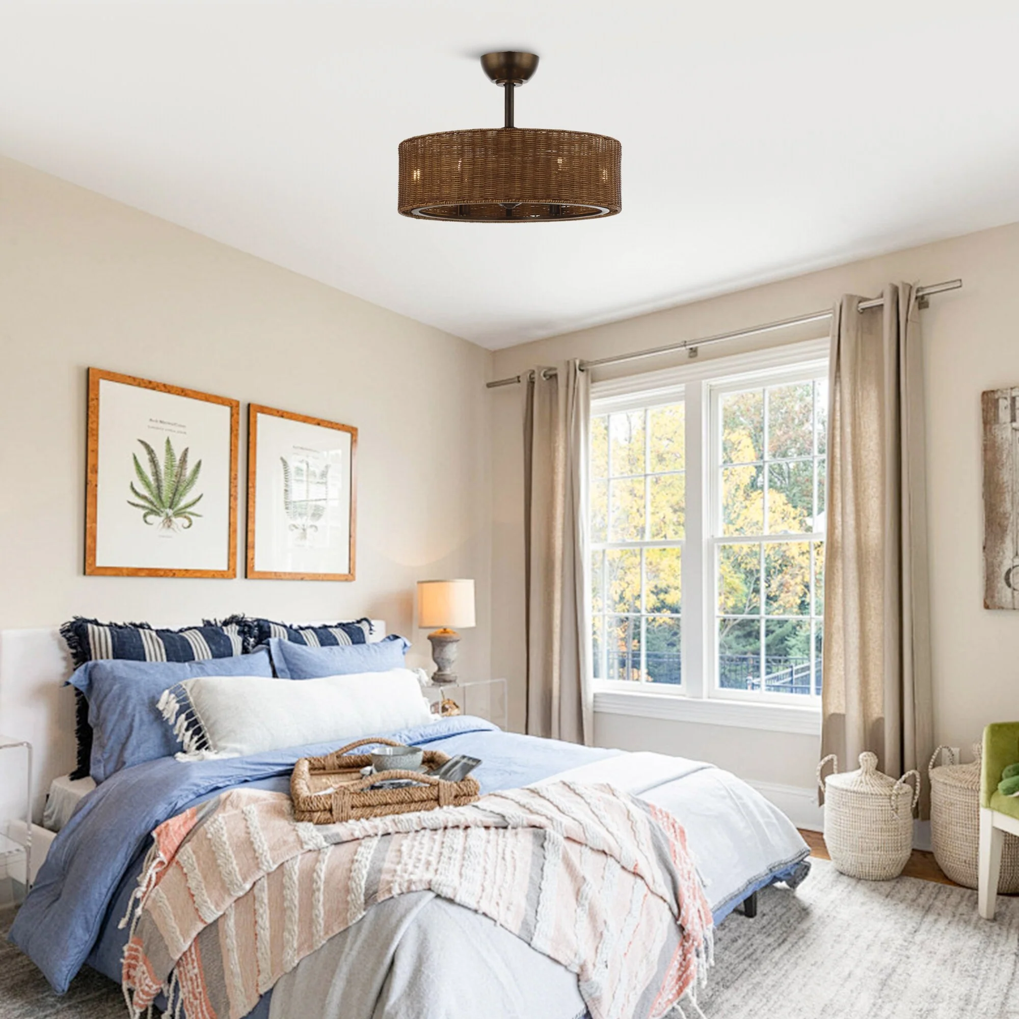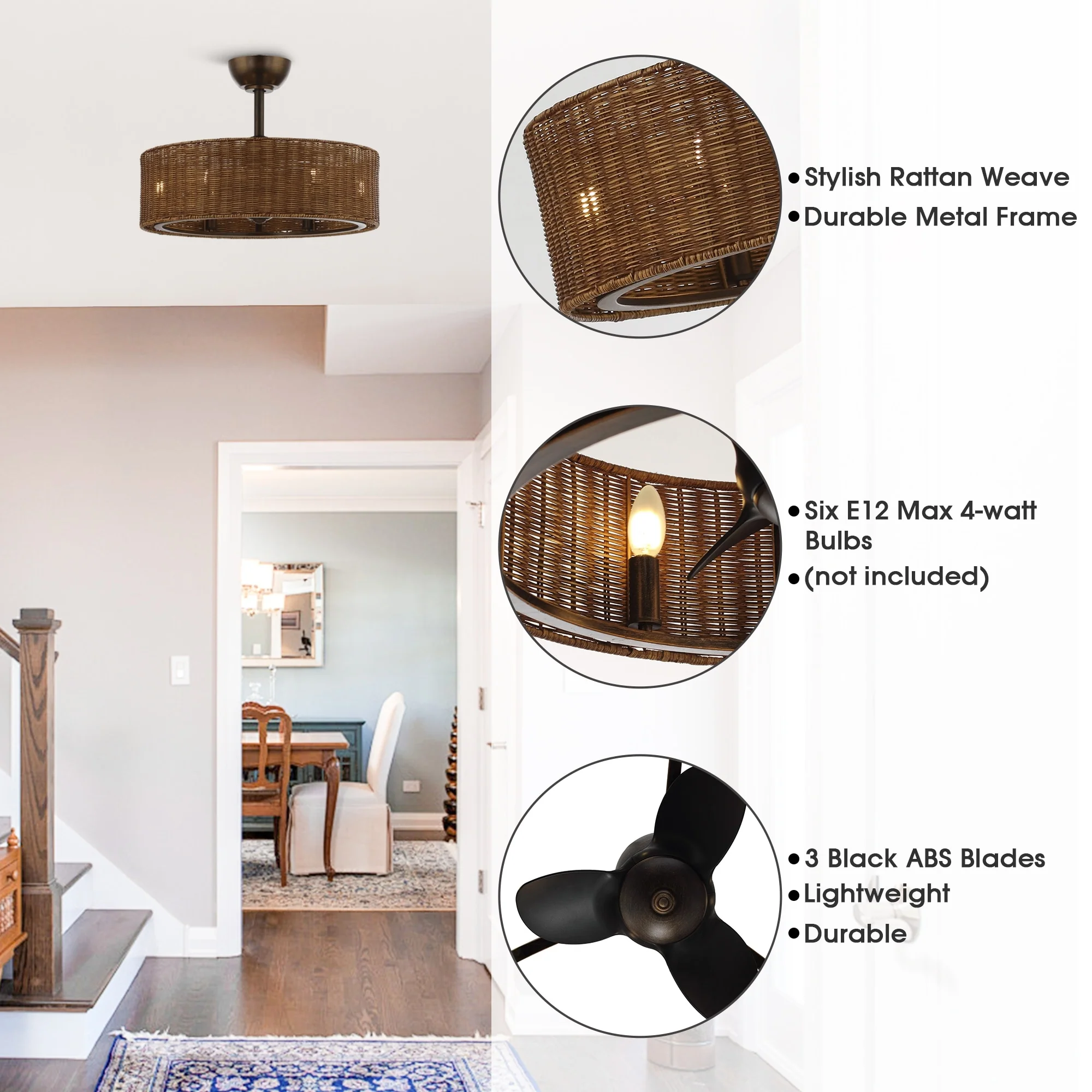 24" Rustic Rattan 6-Speed Caged Ceiling Fan Chandelier with Remote