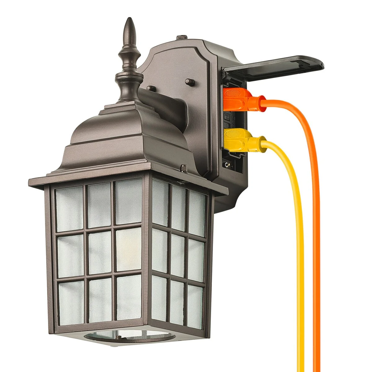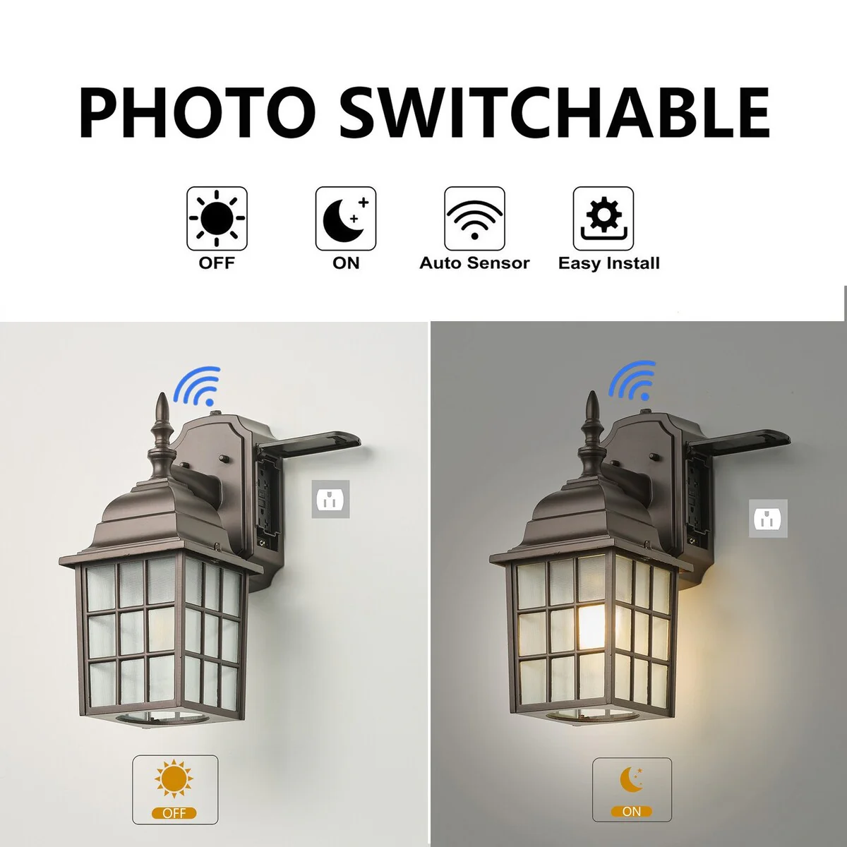 Modern 1-Light Dusk to Dawn Sensor Wall Sconce with 2 GFCI Outlets
