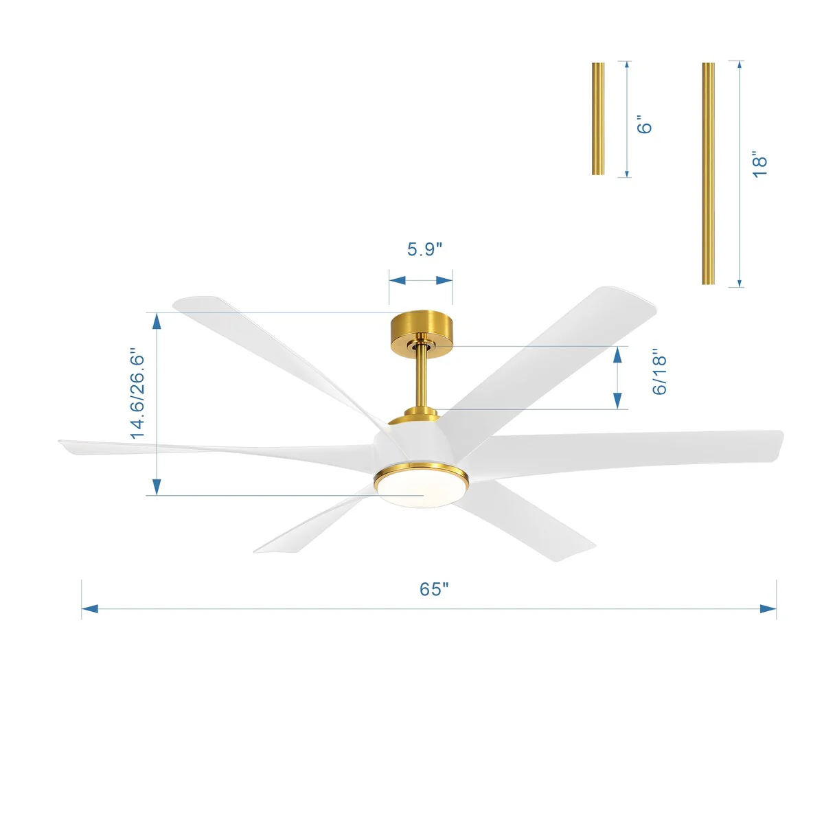 65-in Gold Color-changing Indoor Ceiling Fan with Light and Remote (6-Blade)