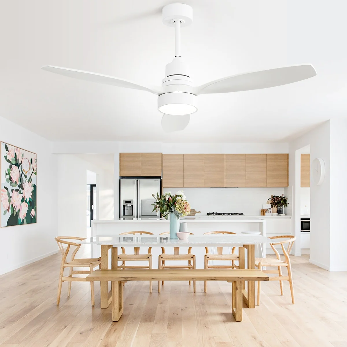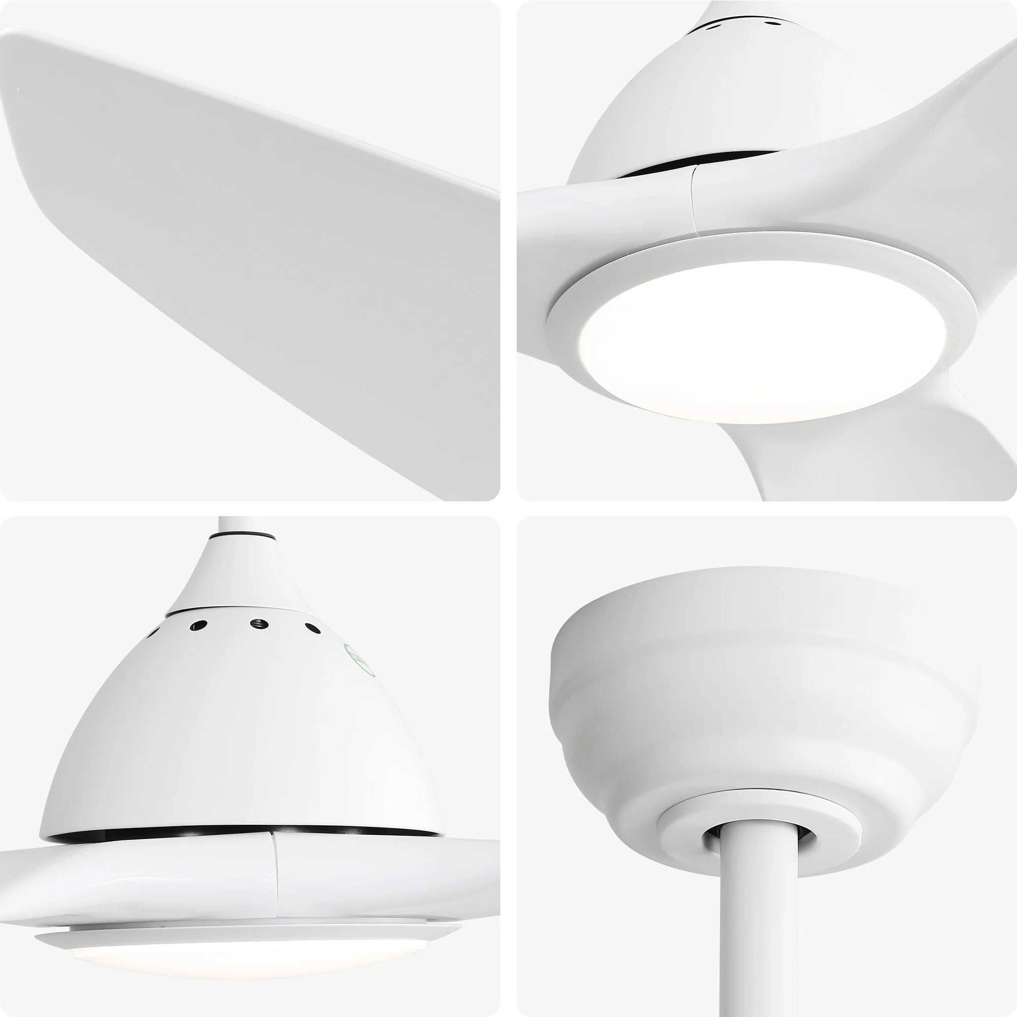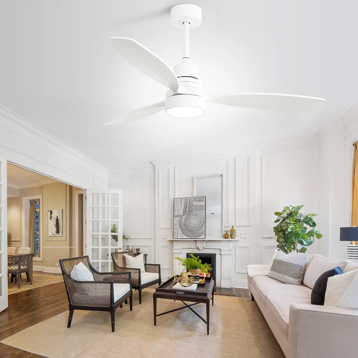 52 Inch White Ceiling Fan with Remote Control, 3 Color LED Change Light Ceiling Fan for Bredoom Patio