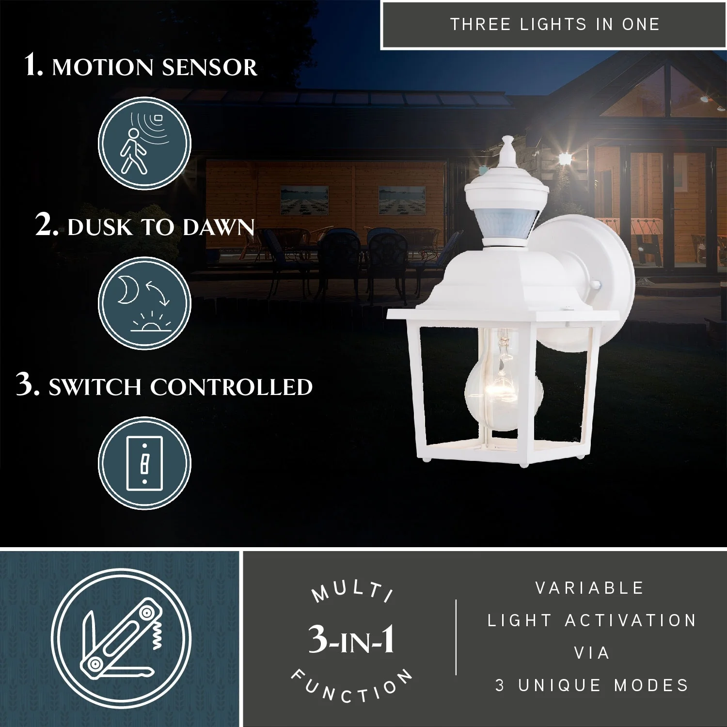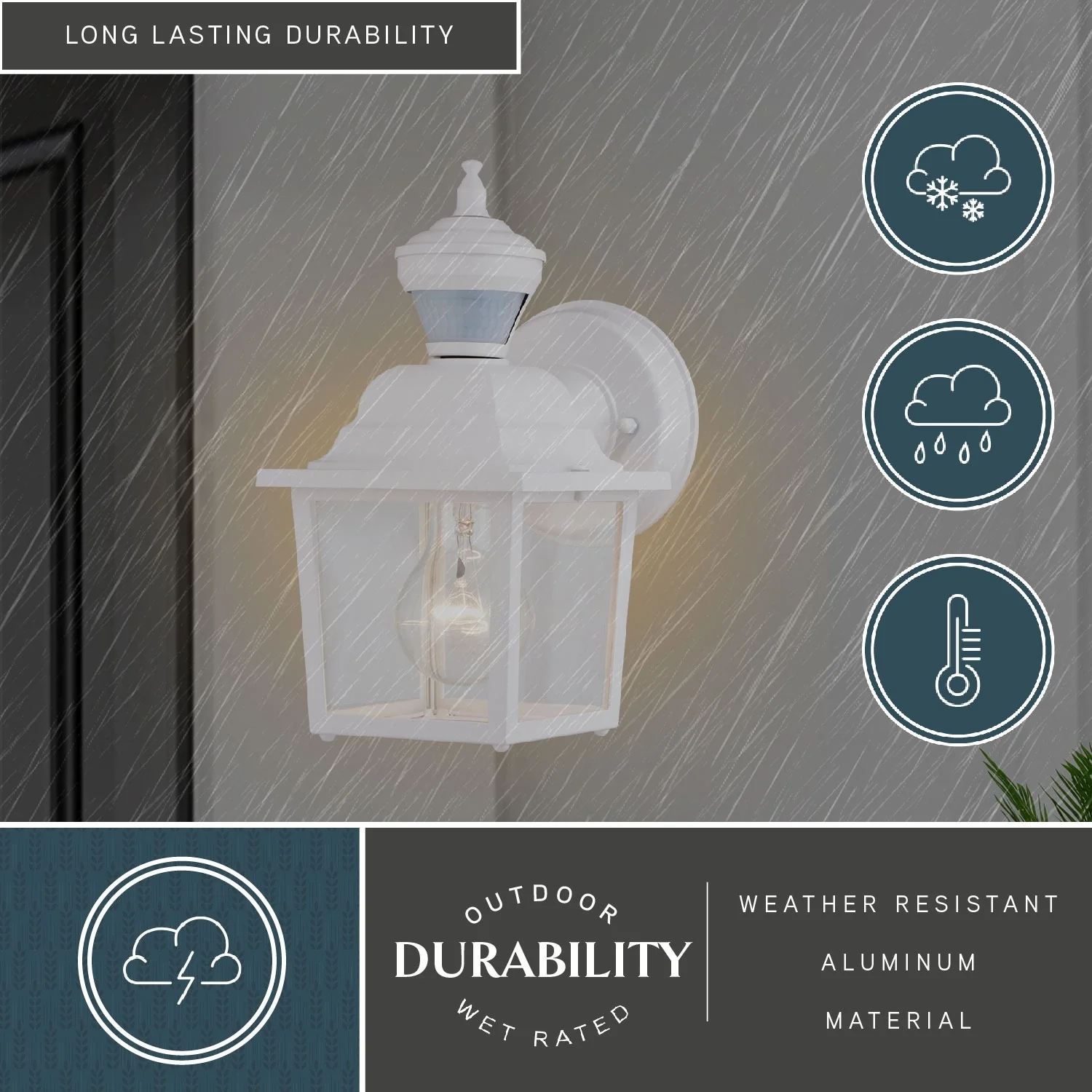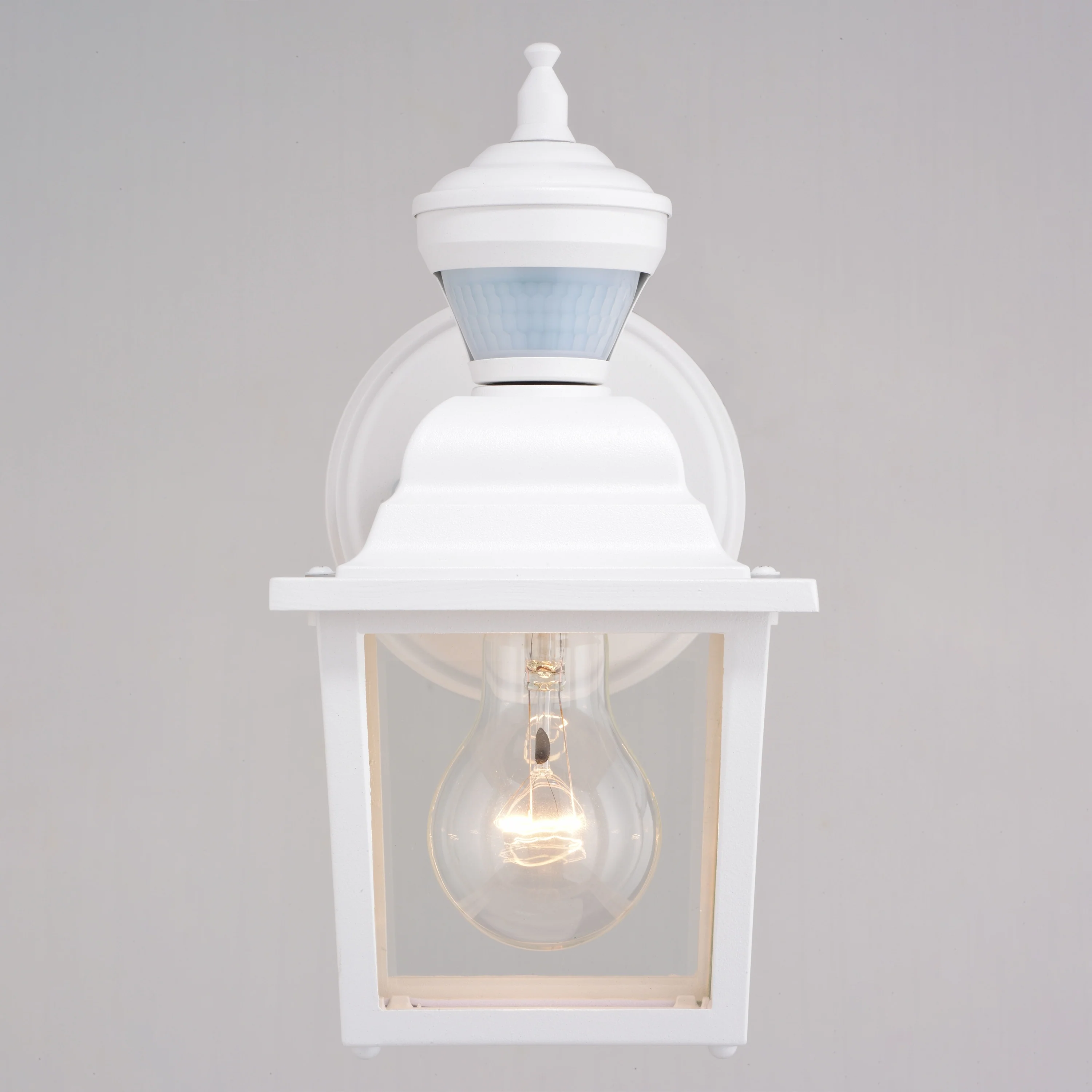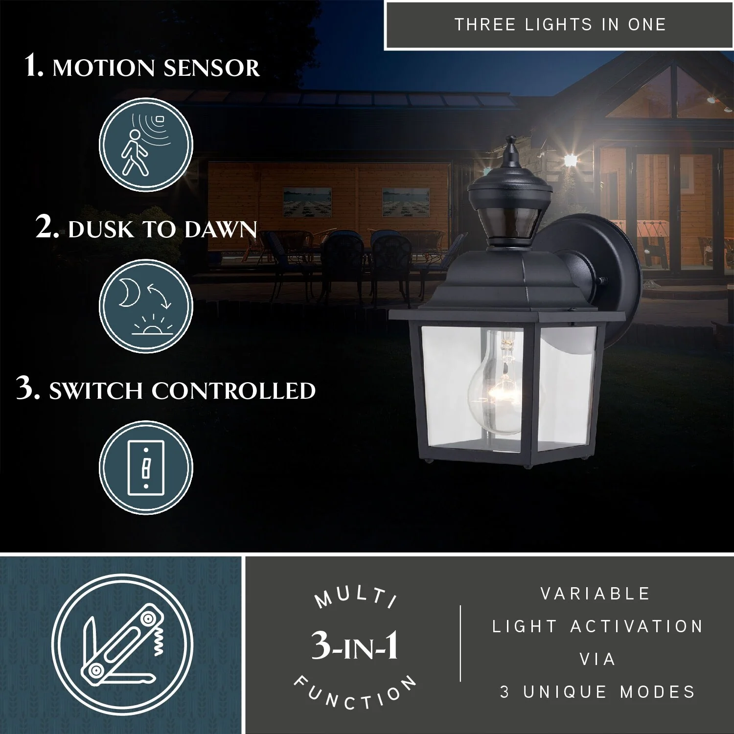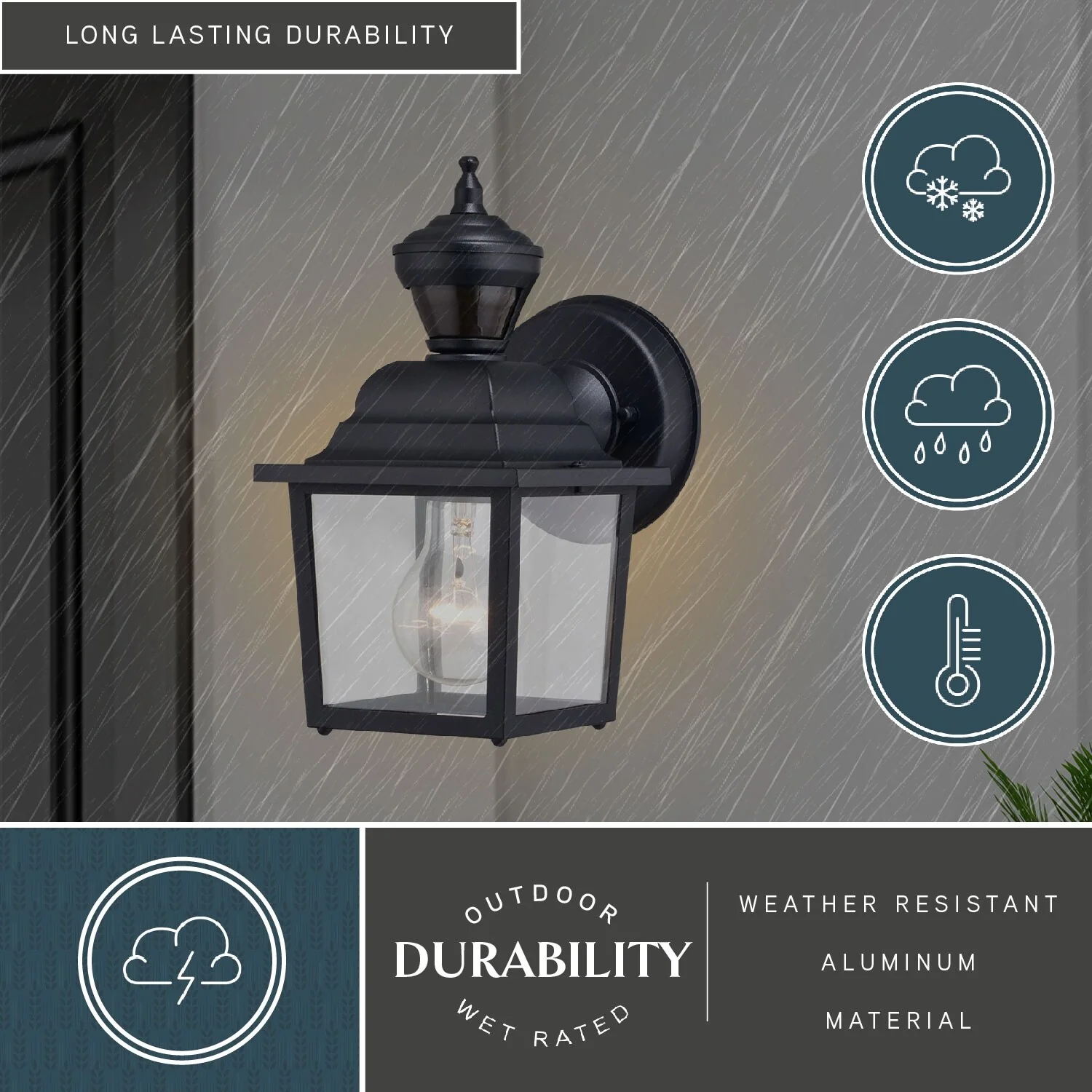 Bedford Aluminum 5.25-in. W 1 Light Motion Sensor Dusk to Dawn Outdoor Wall Lantern Clear Glass