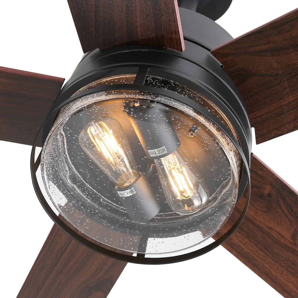 52" Wooden 6-Speed Noiceless Reversible DC Motor Ceiling Fan with Light and Remote - 52 Inch