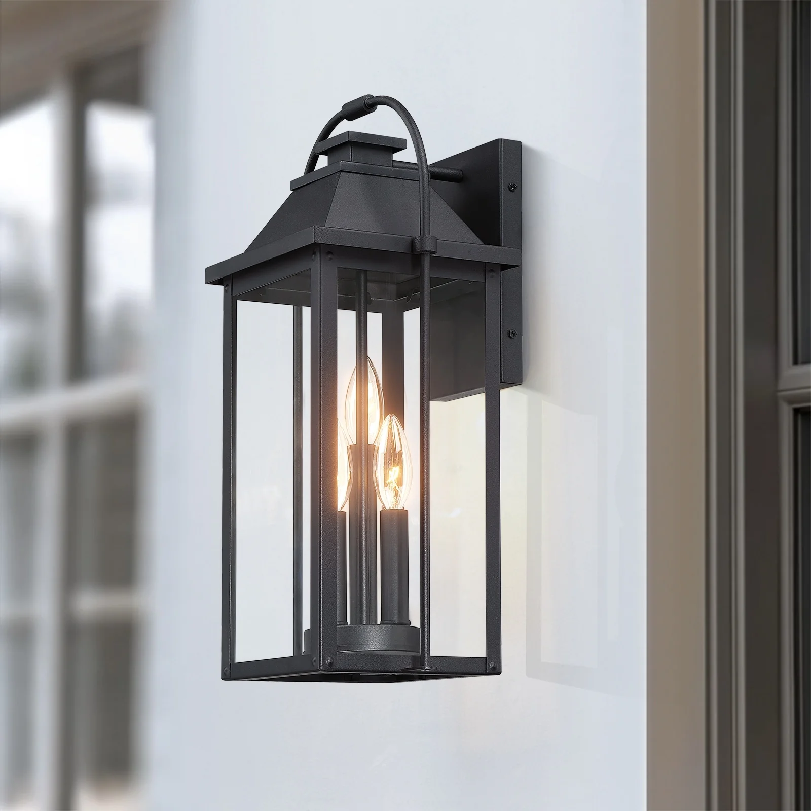 Black Outdoor Wall Lights Dusk to Dawn Outdoor Wall Lantern Set of 2