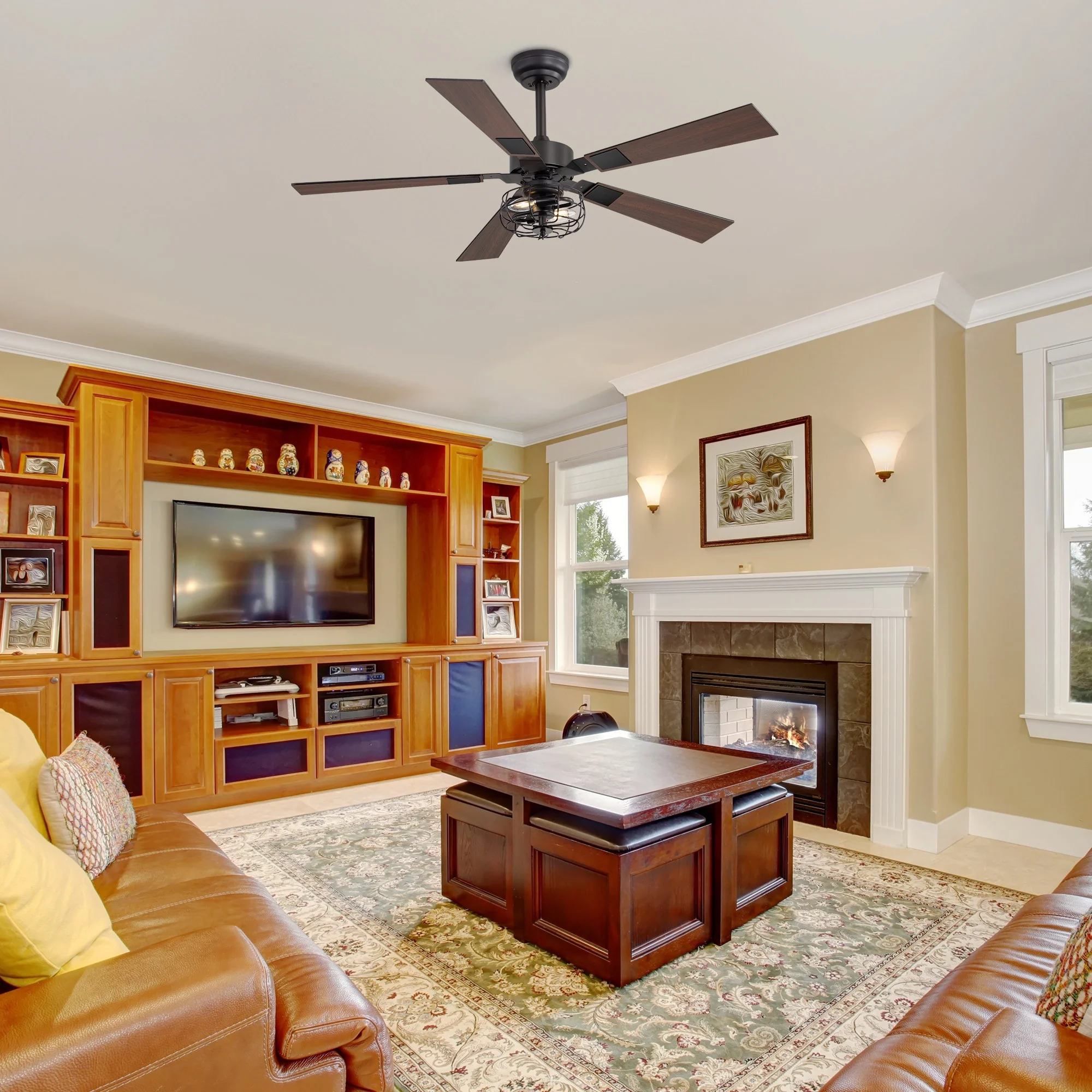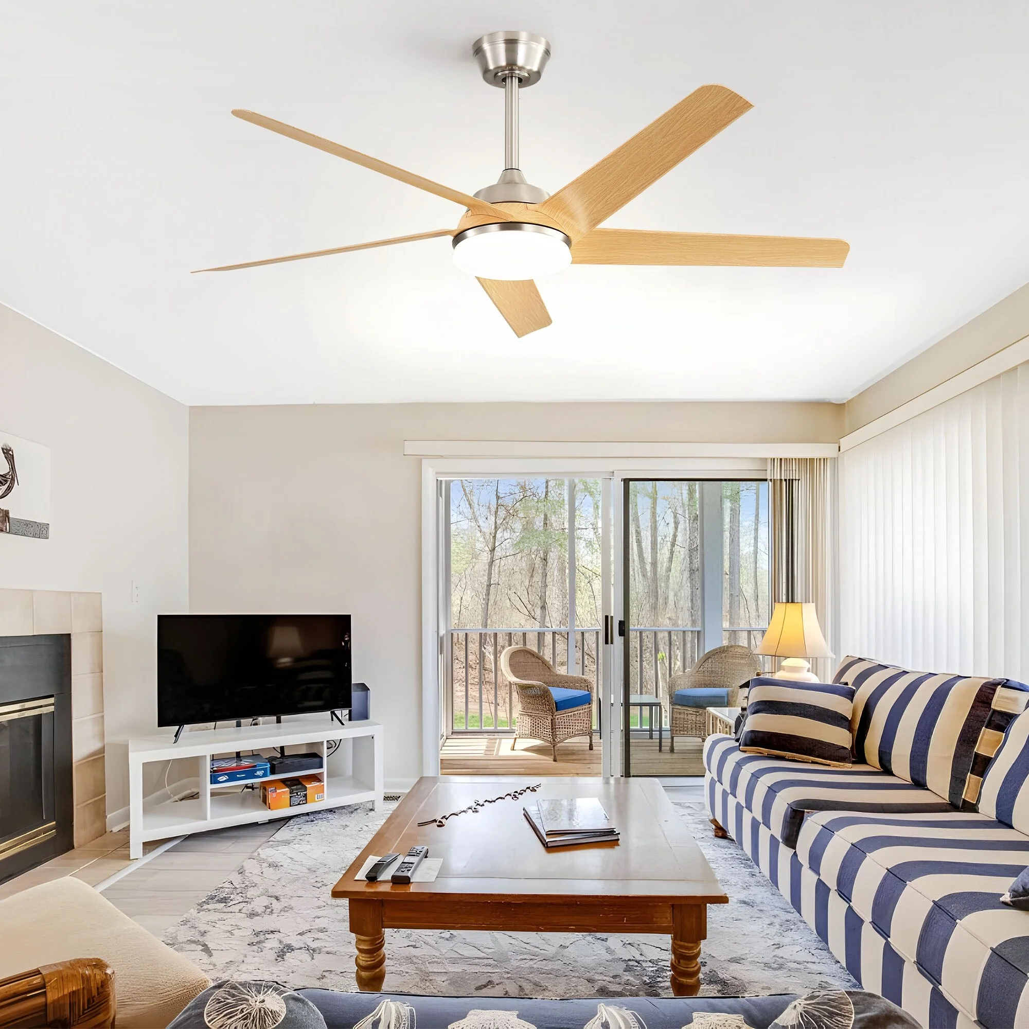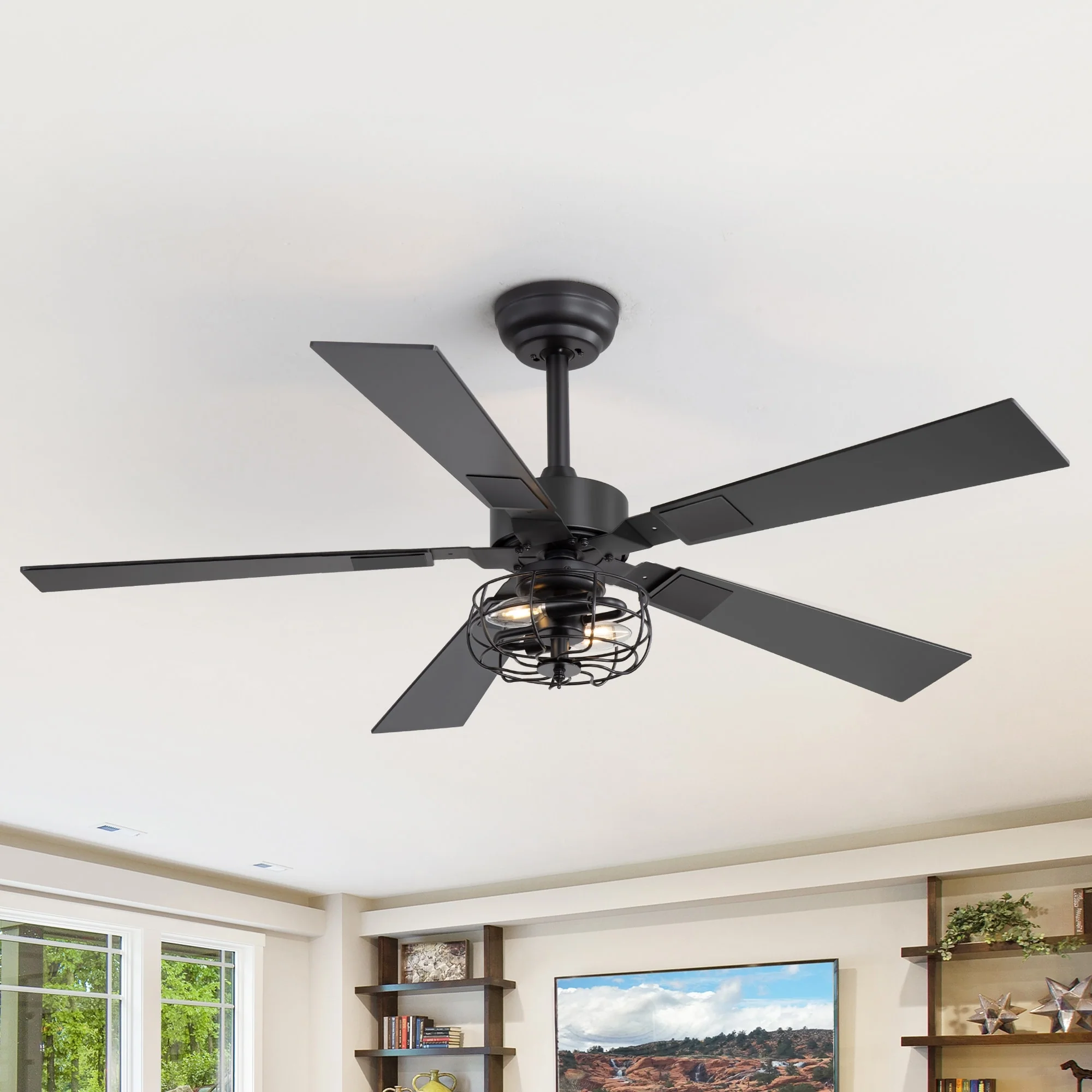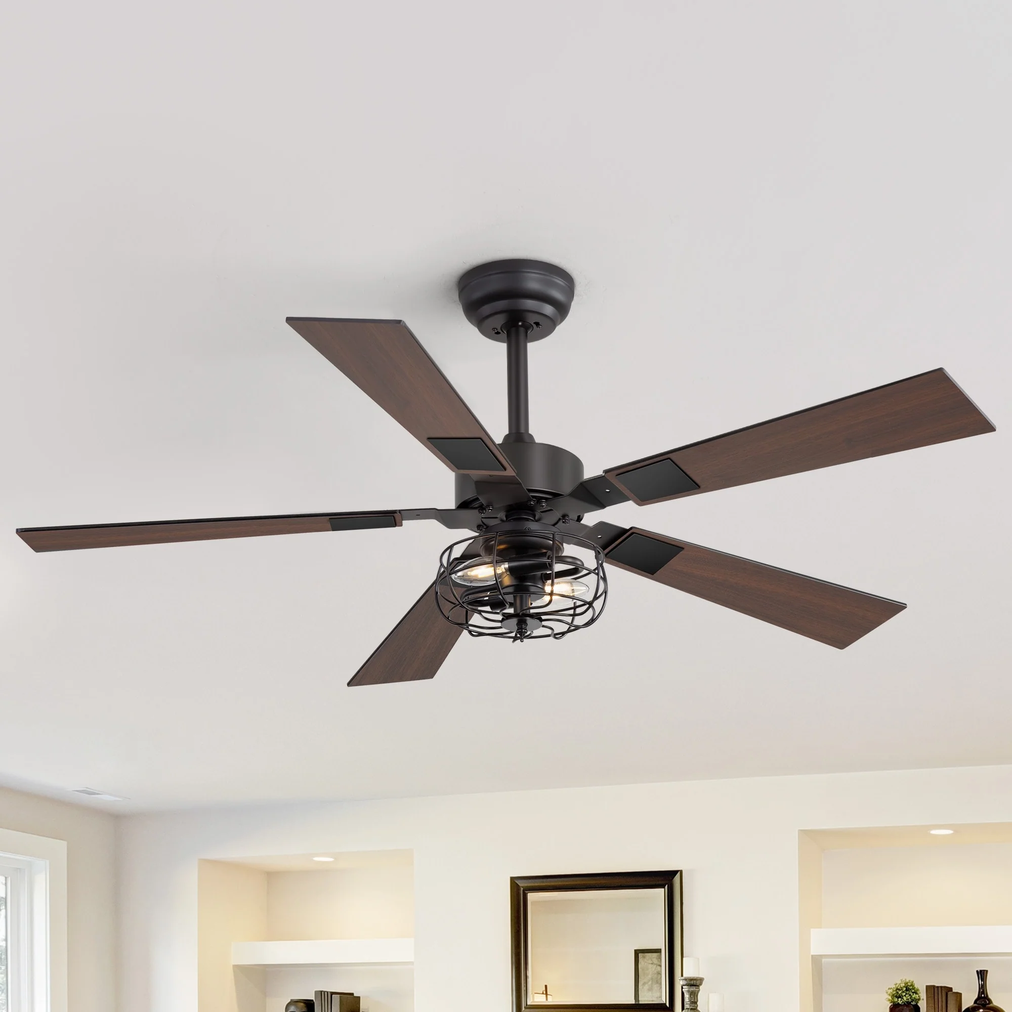 48-inch Reversible Wooden 5-Blades Ceiling Fan with Remote Light