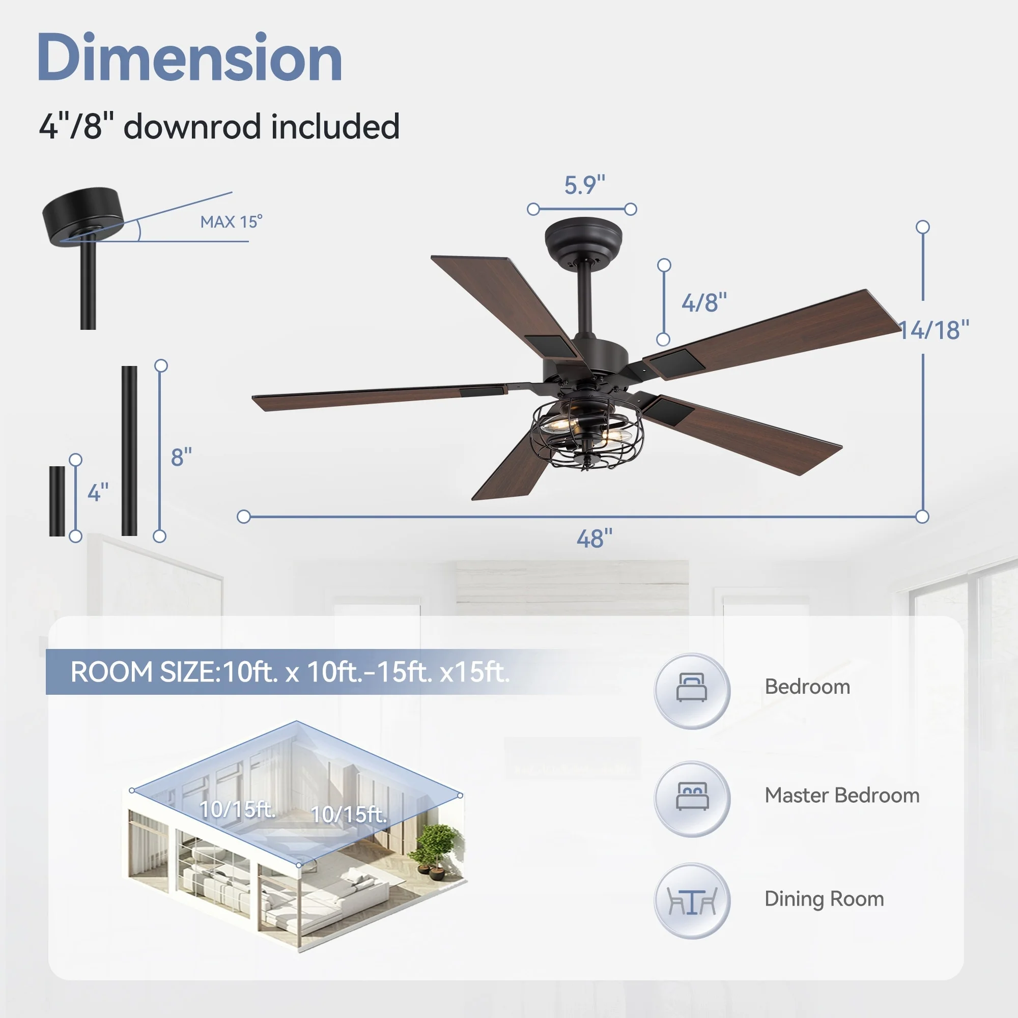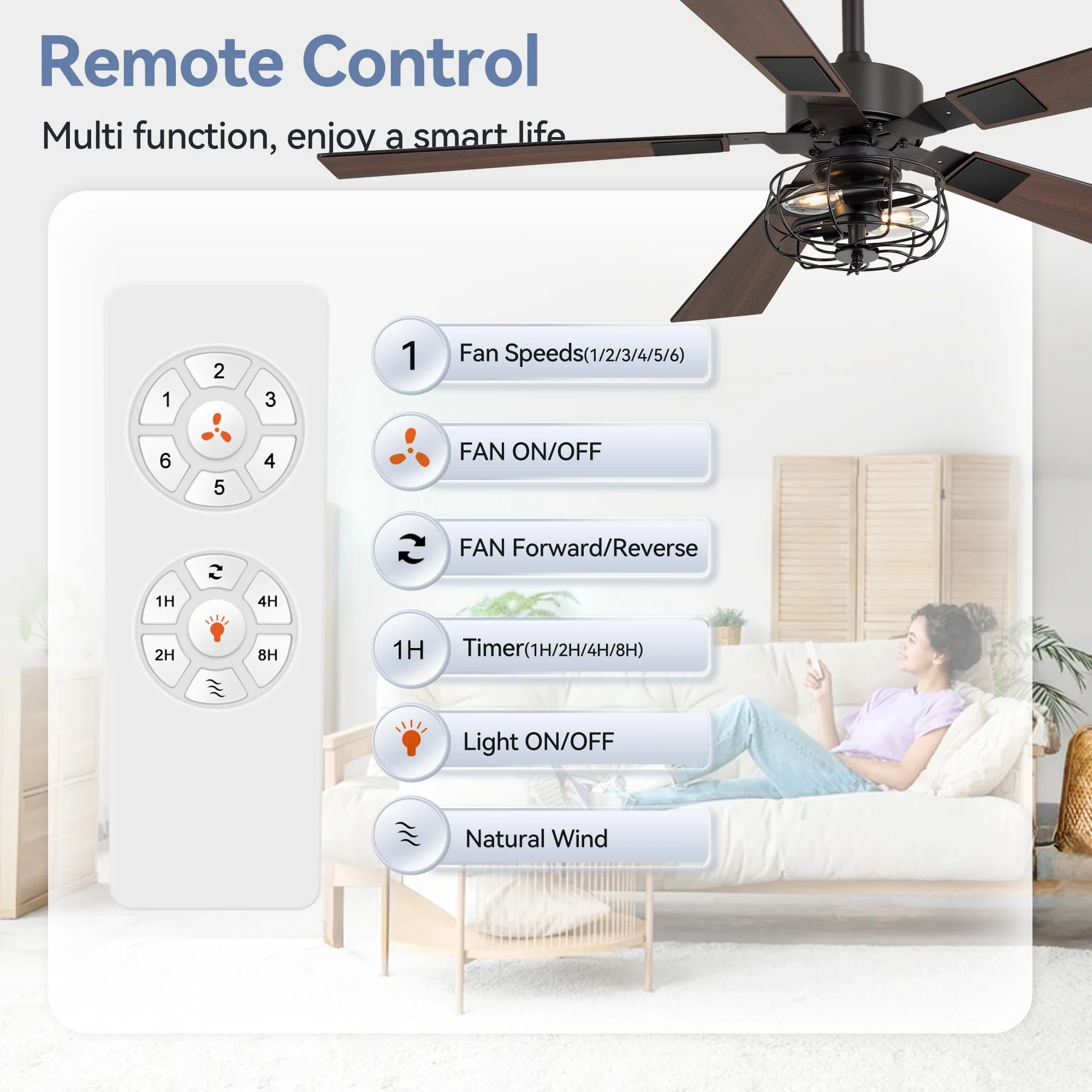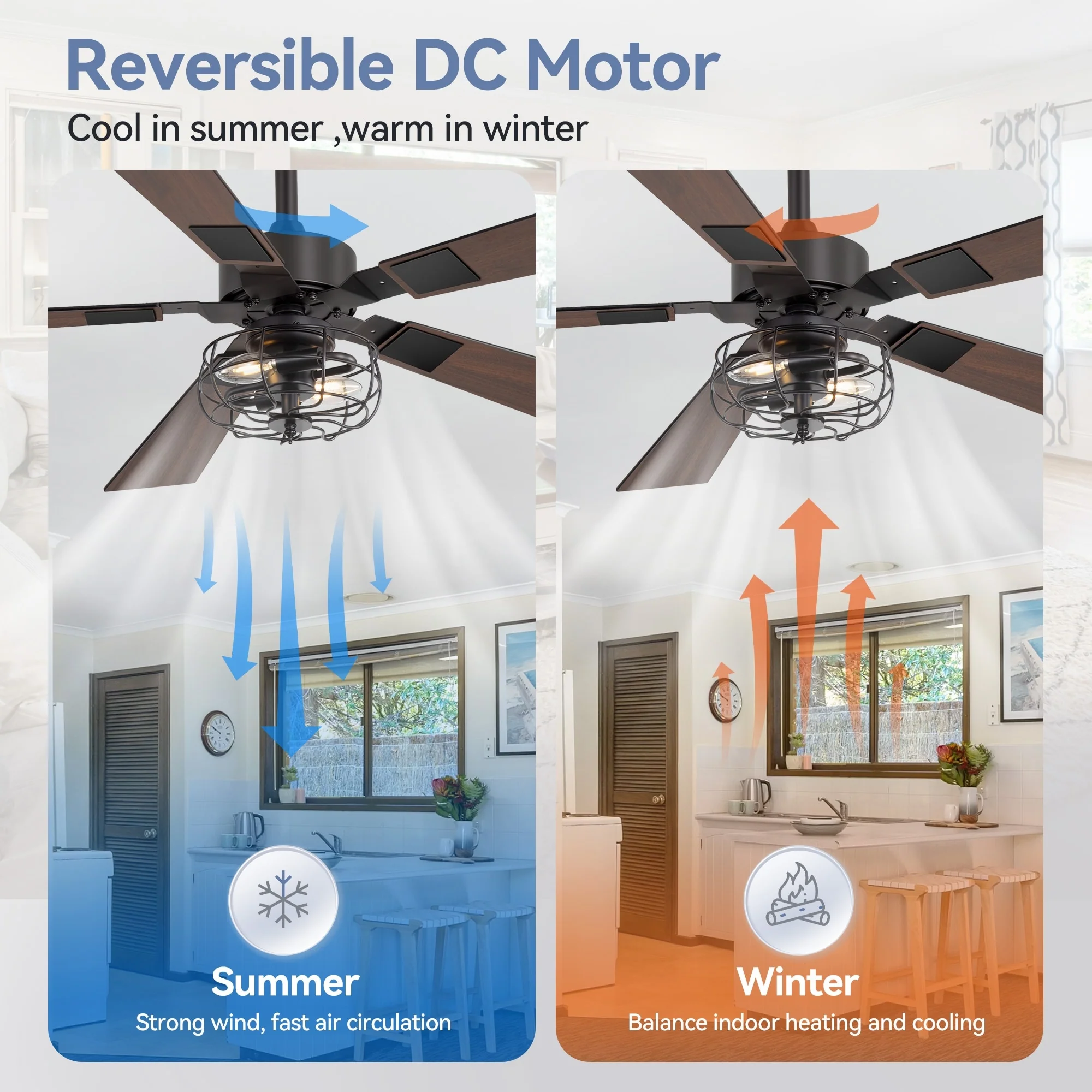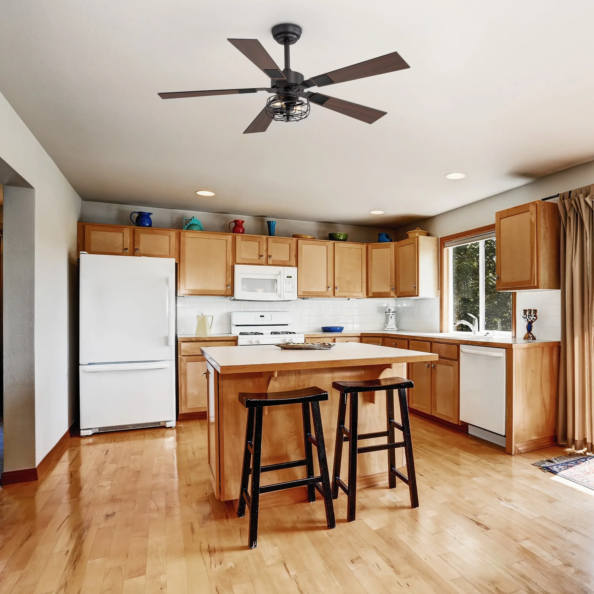 48-inch Reversible Wooden 5-Blades Ceiling Fan with Remote Light