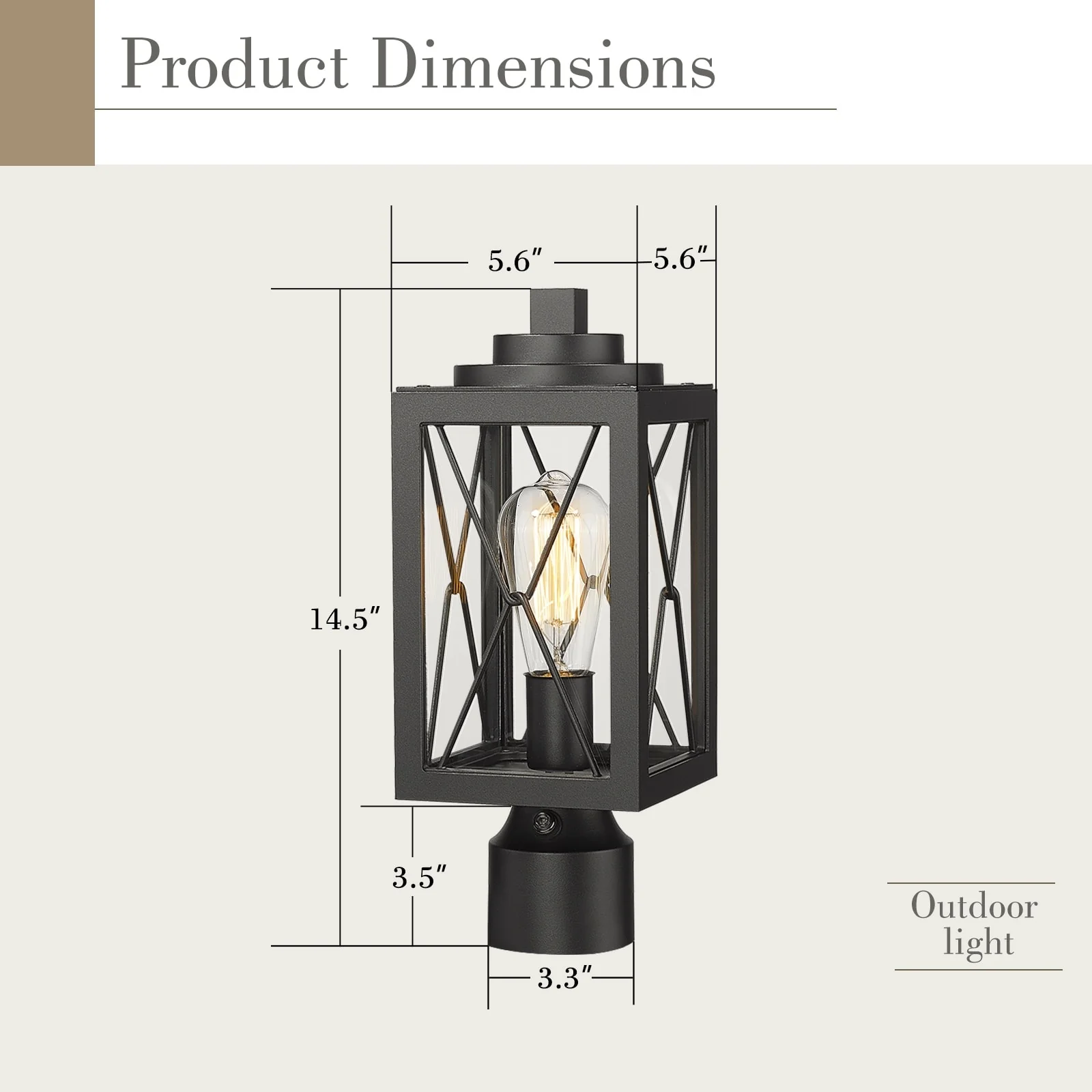 14.5 inch Dusk to Dawn Lamp Post Light with Photocell Sensor - 5.5 x 5.5 x 14.5 inches